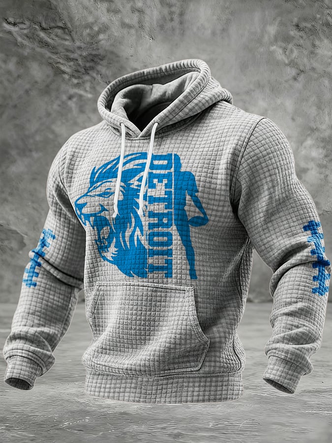 Men's Football Printed Plaid Fabric Hooded Sweatshirt
