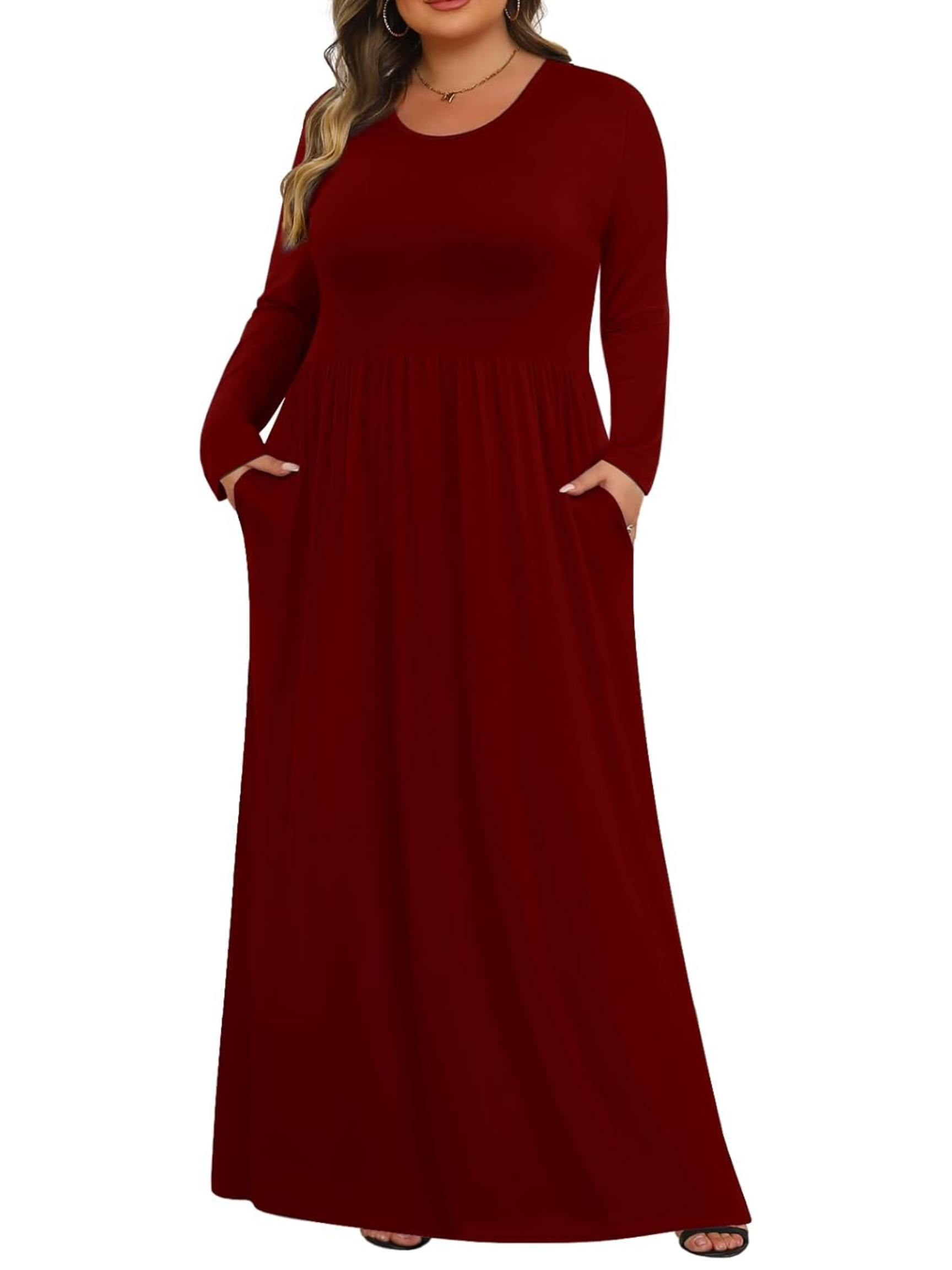 Womens Plus Size Maxi Dresses Long Sleeve with Pockets Casual Long Dress 1X-5X