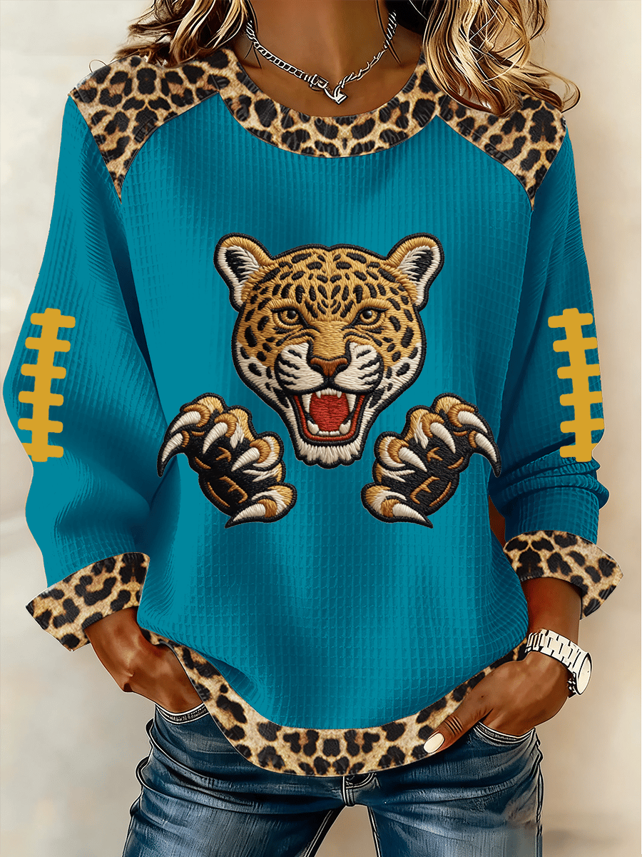 Women's Casual Football Print Long-Sleeve Sweatshirt
