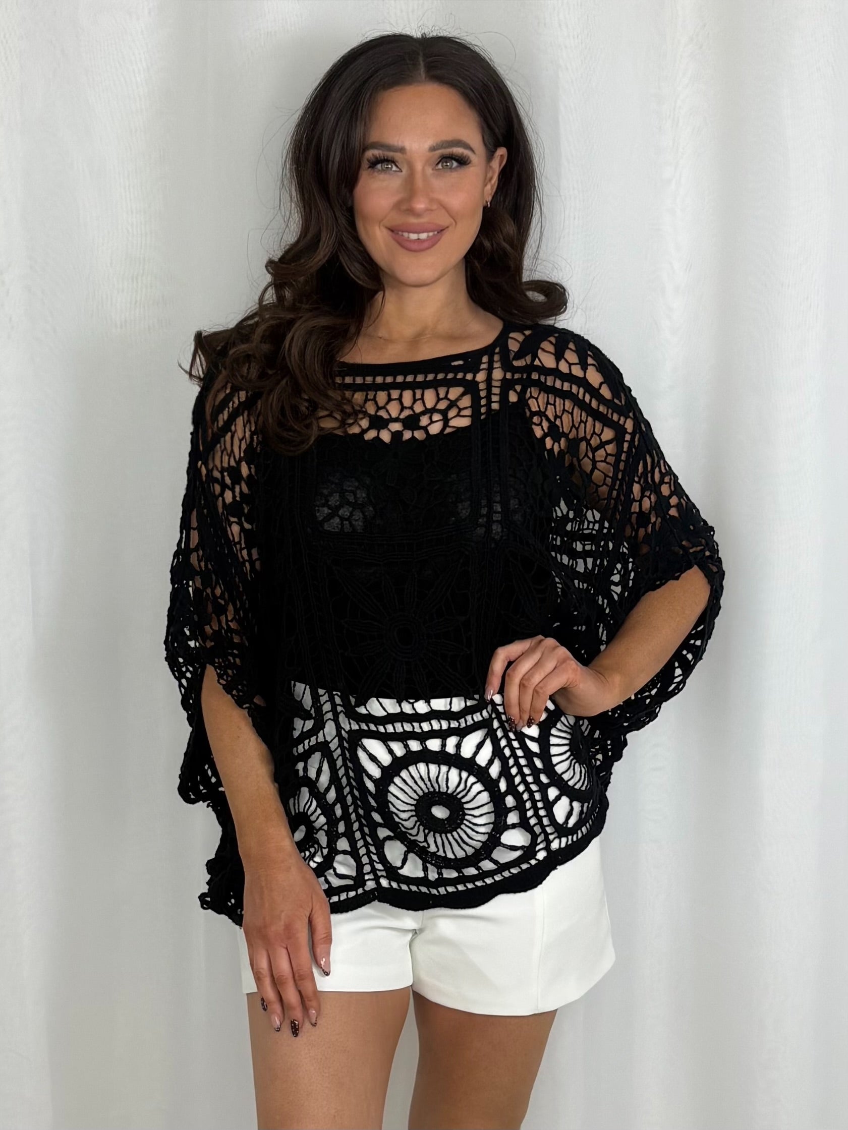 Crochet Square Flower Detail Top & Undervest (8 Colours)