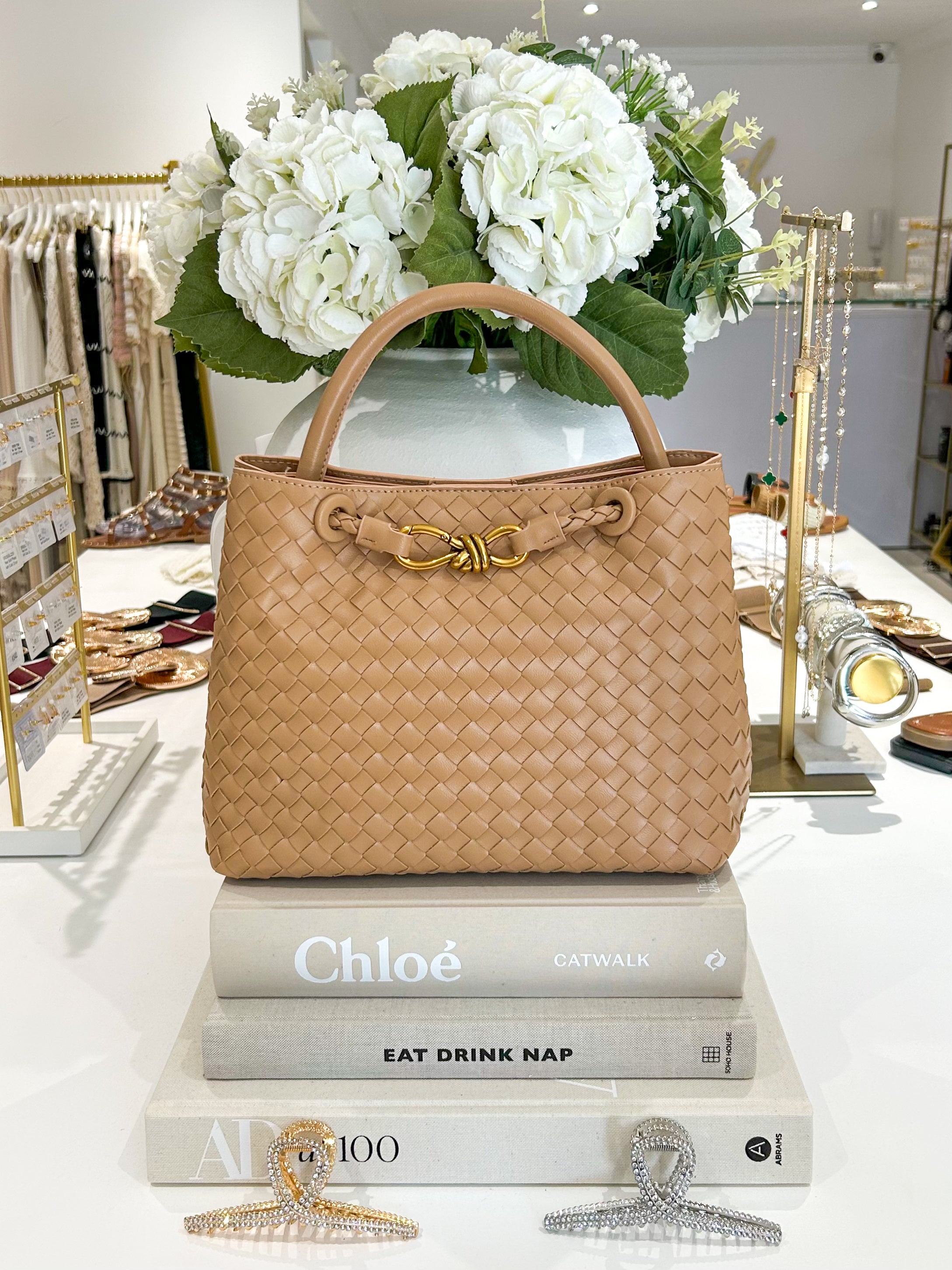 Woven Gold Infinity Detail Designer Style Handbag (10 Colours)