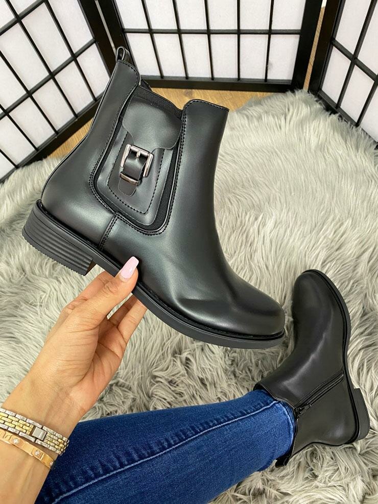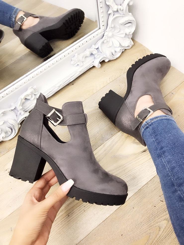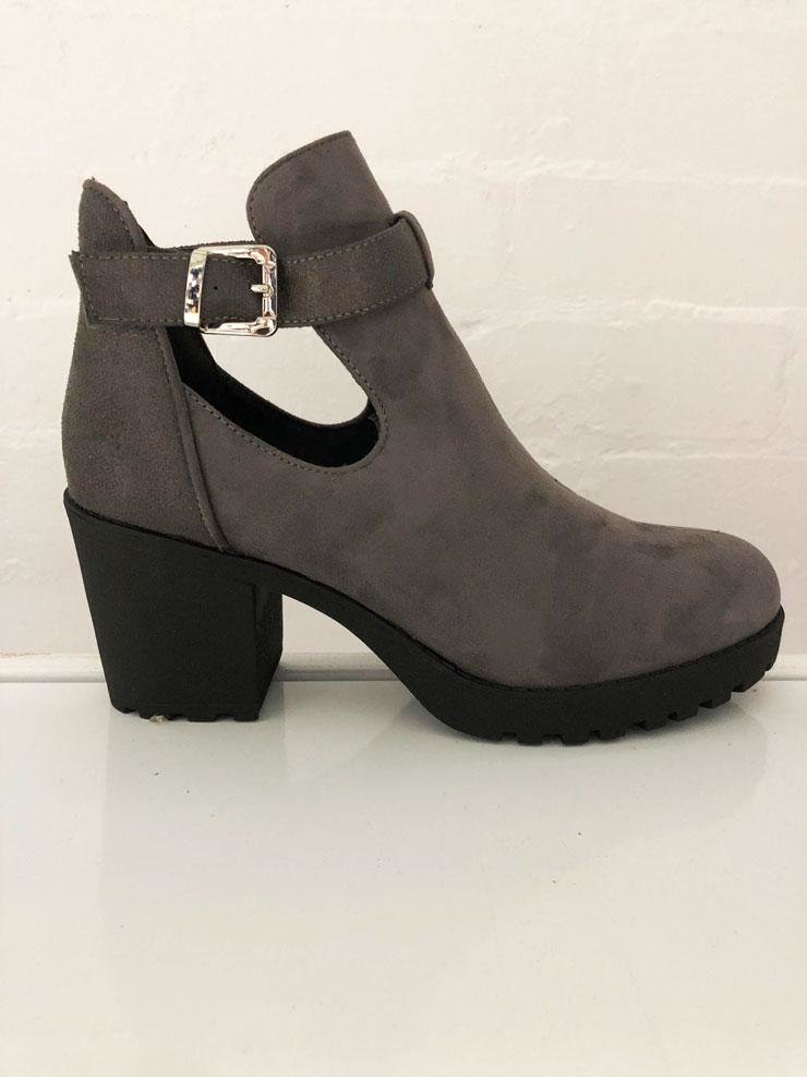 Adora Grey Faux Suedette Buckle Heel Ankle Boots