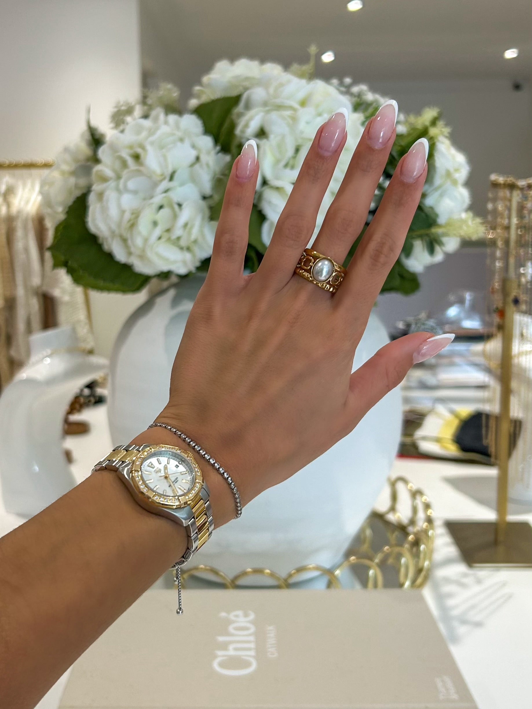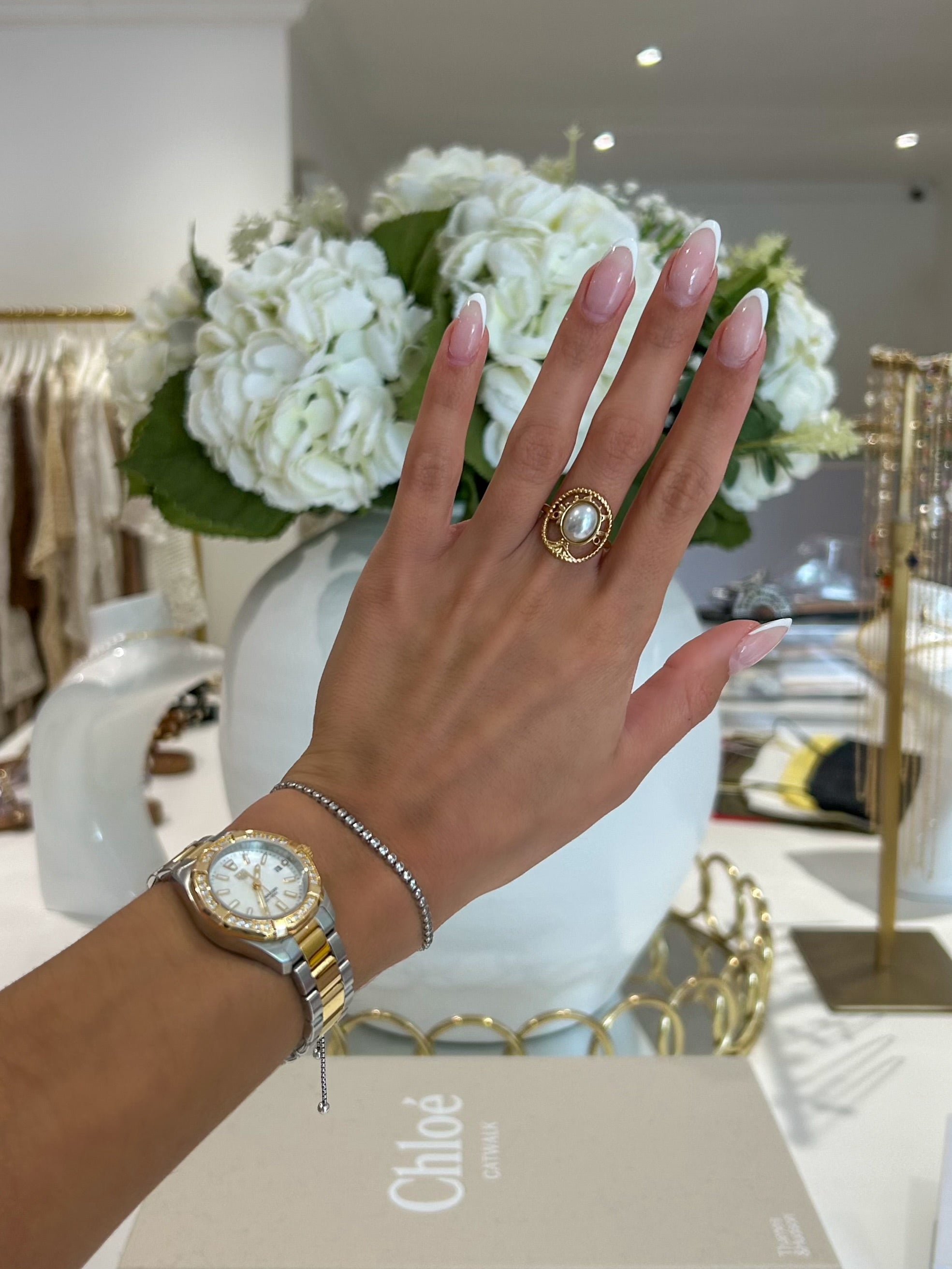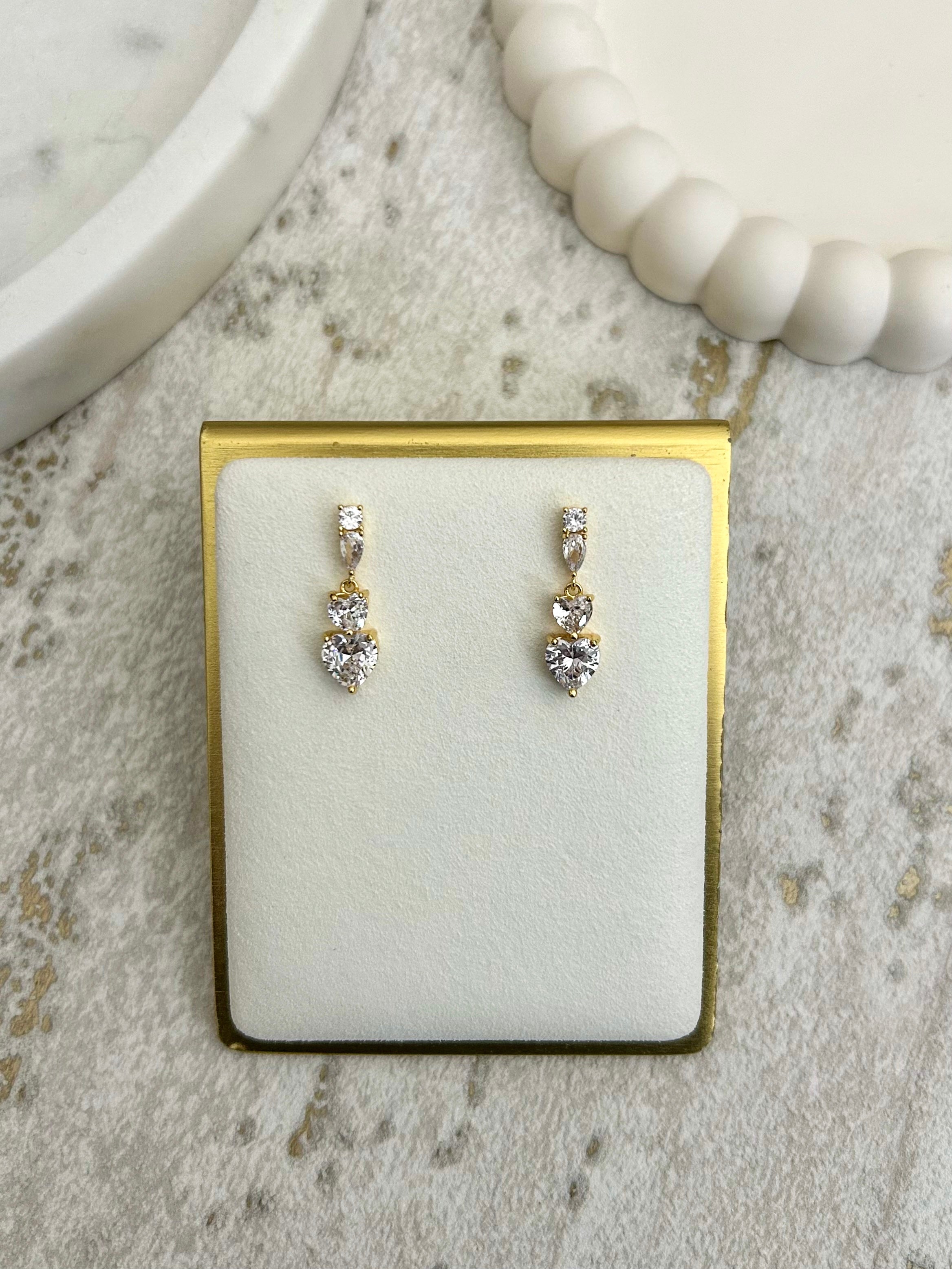 Gold Heart Pearl Diamante Charm Double Layer Blue Bead Anklet