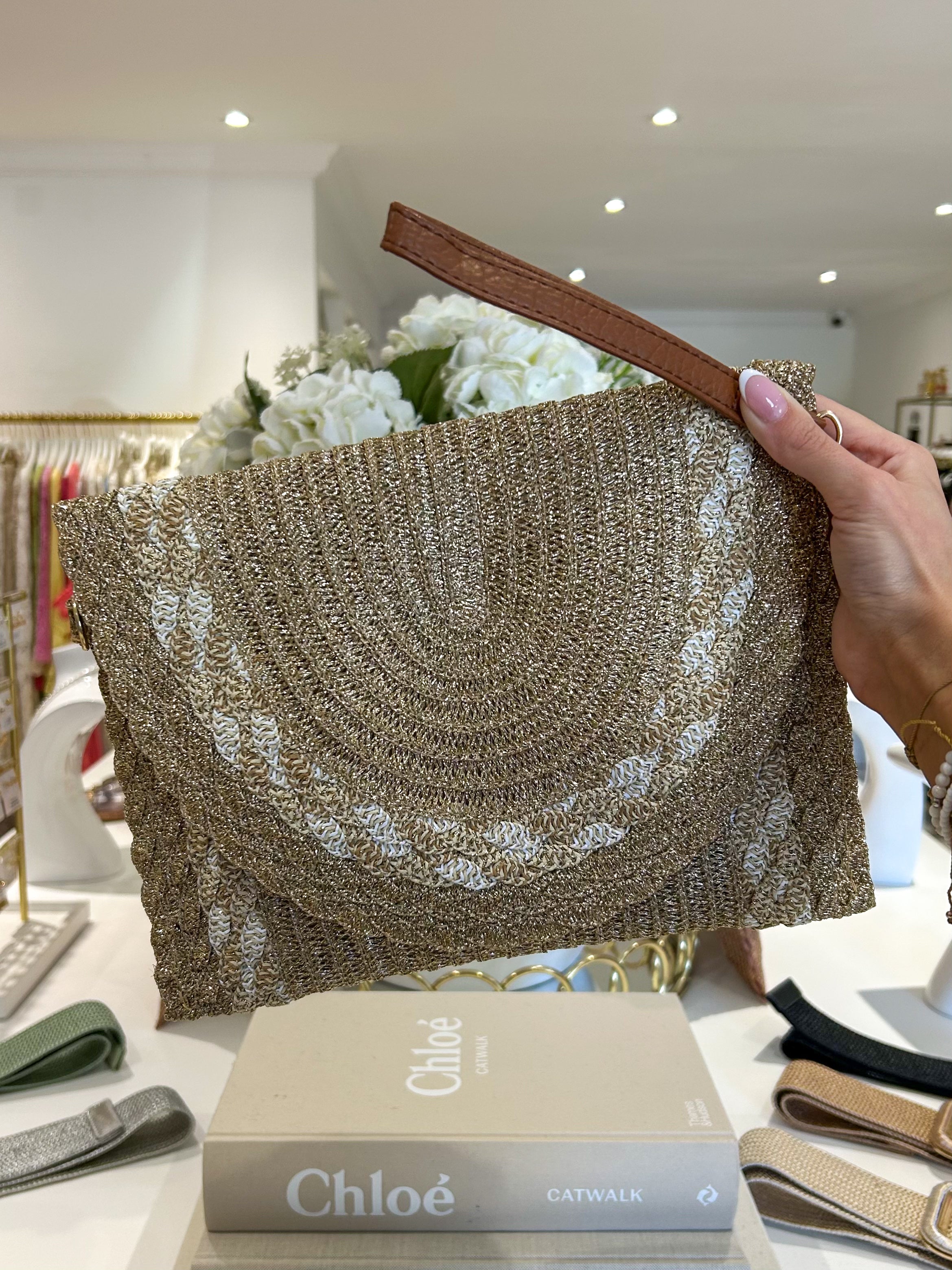 Gold Fleck Woven Plaited Clutch Bag (3 Colours)