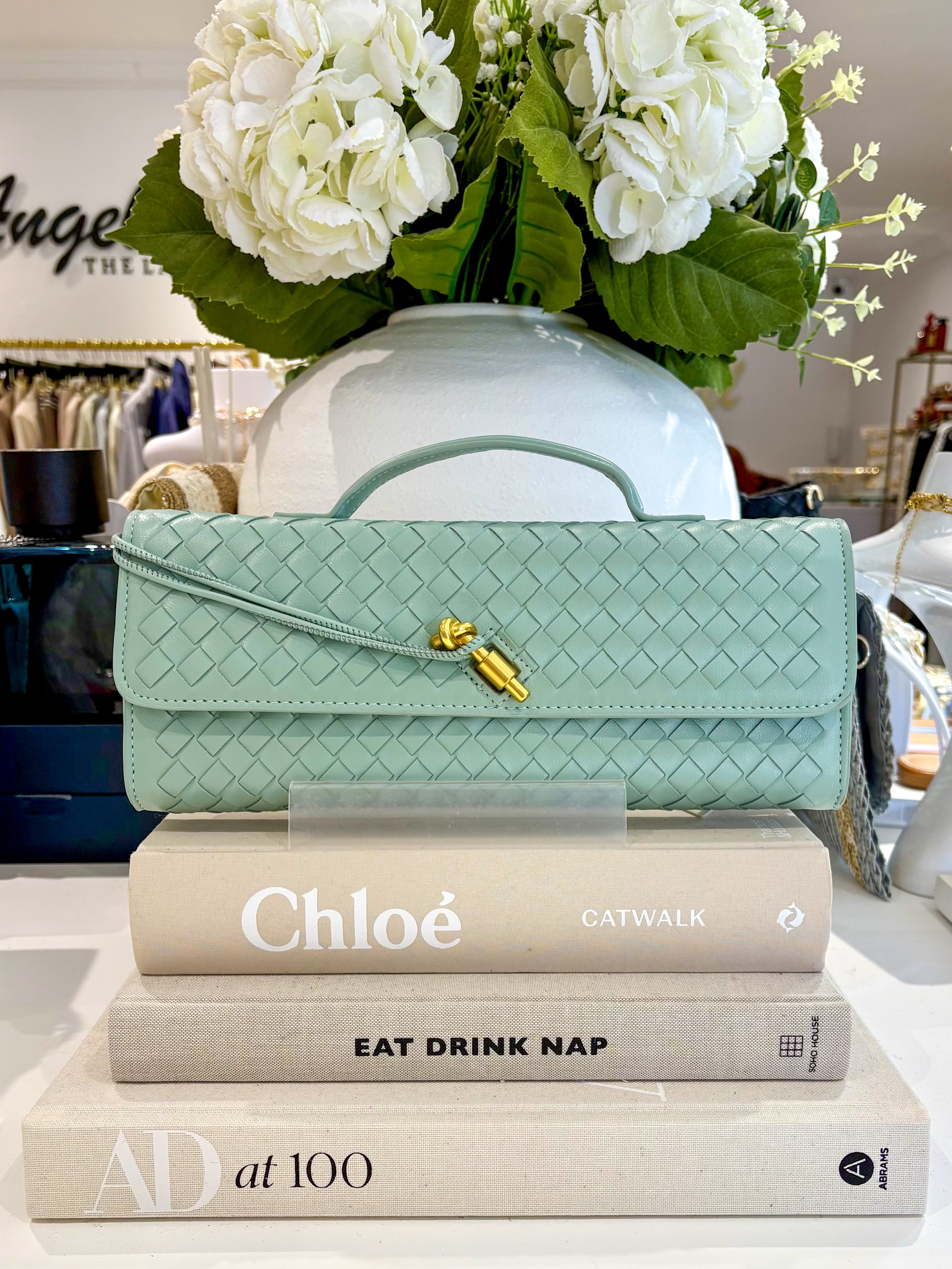 Woven Rectangle Envelope Gold Rod Fasten Clutch Bag (15 Colours)