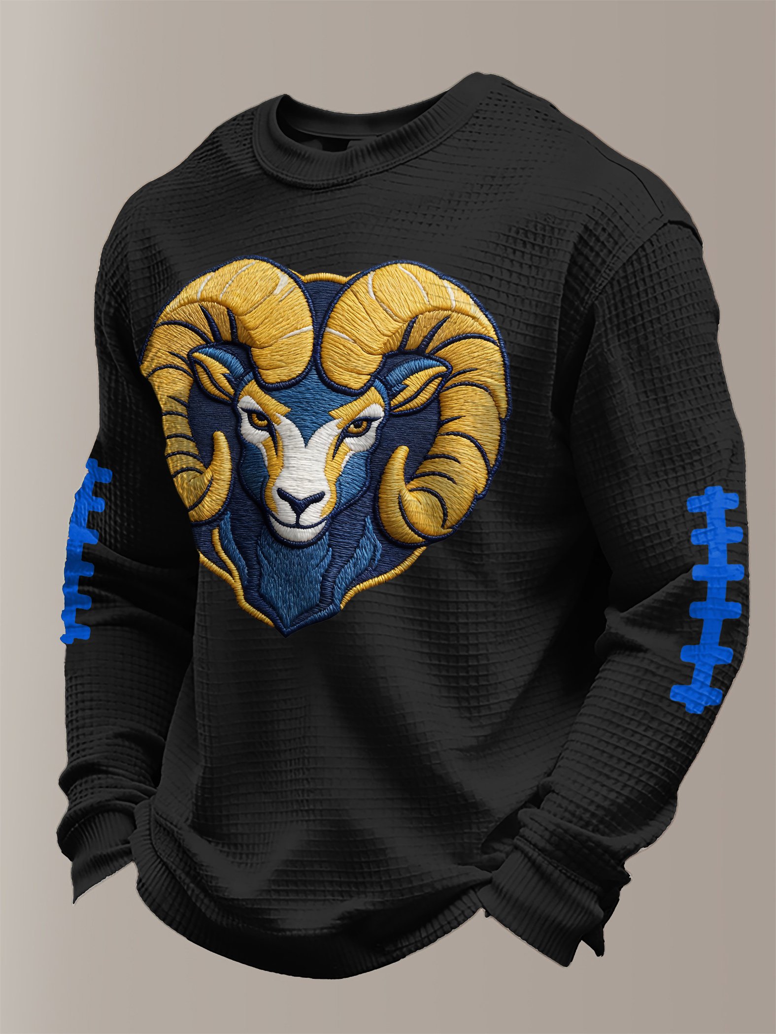 Men's Football Waffle Fabric Long-Sleeved T-Shirt