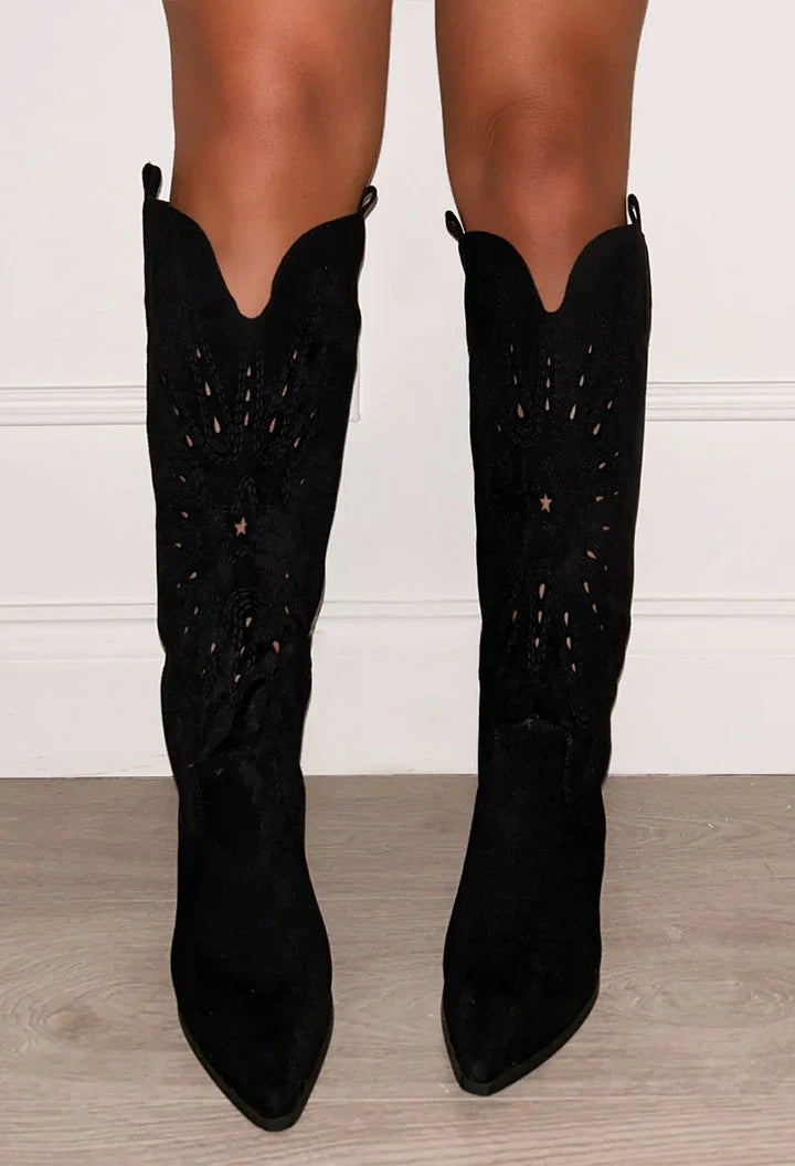 Cheryl Faux Suede Chunky Heel Boots