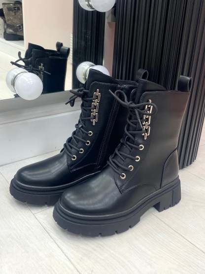 Agnes Lace Up Chain Detail Biker Boots