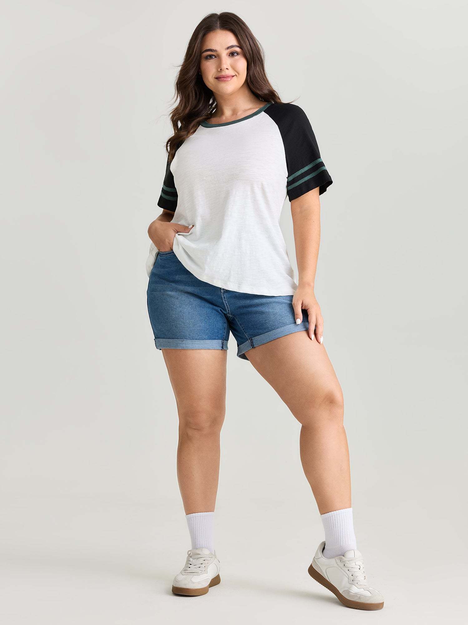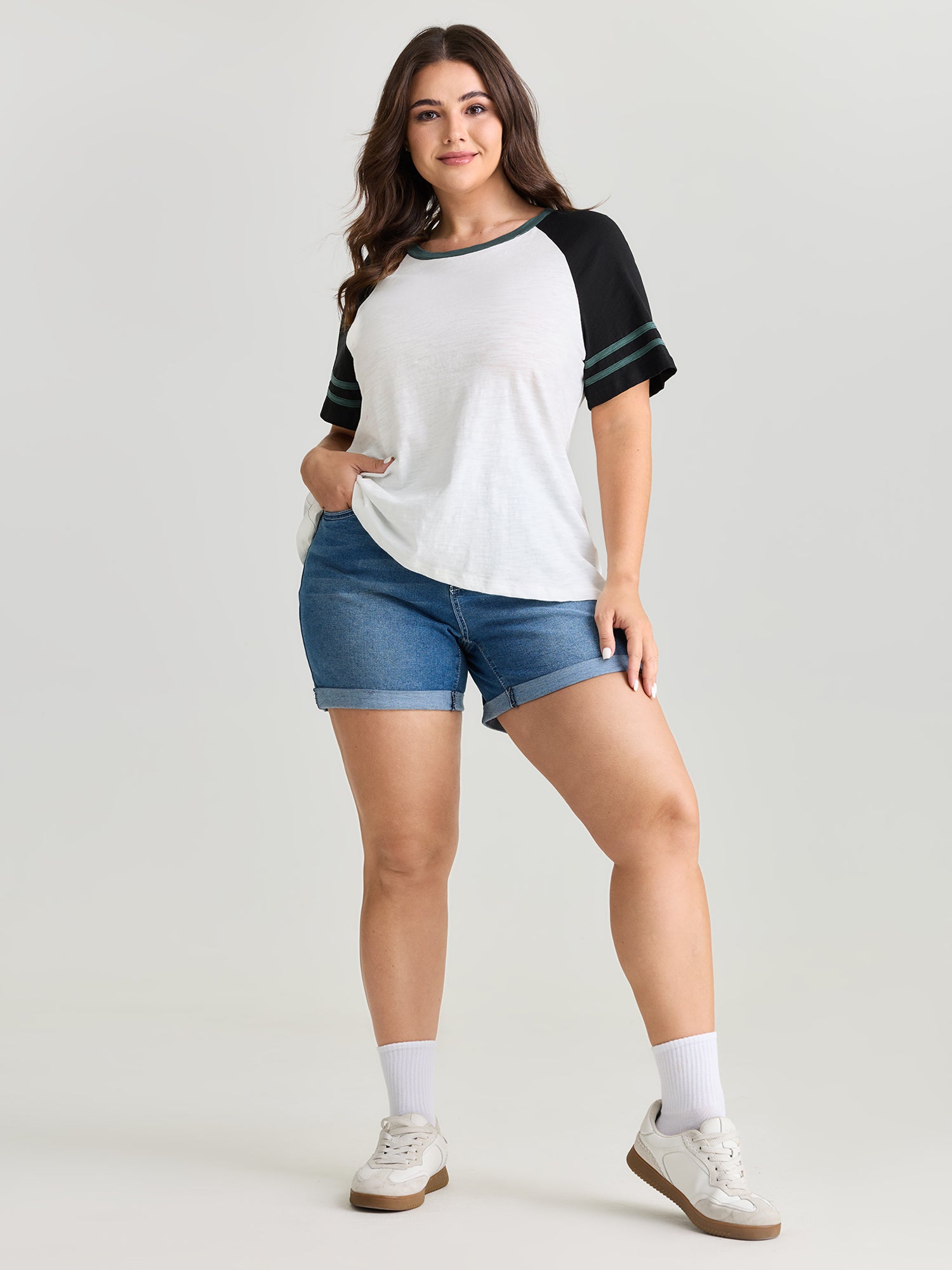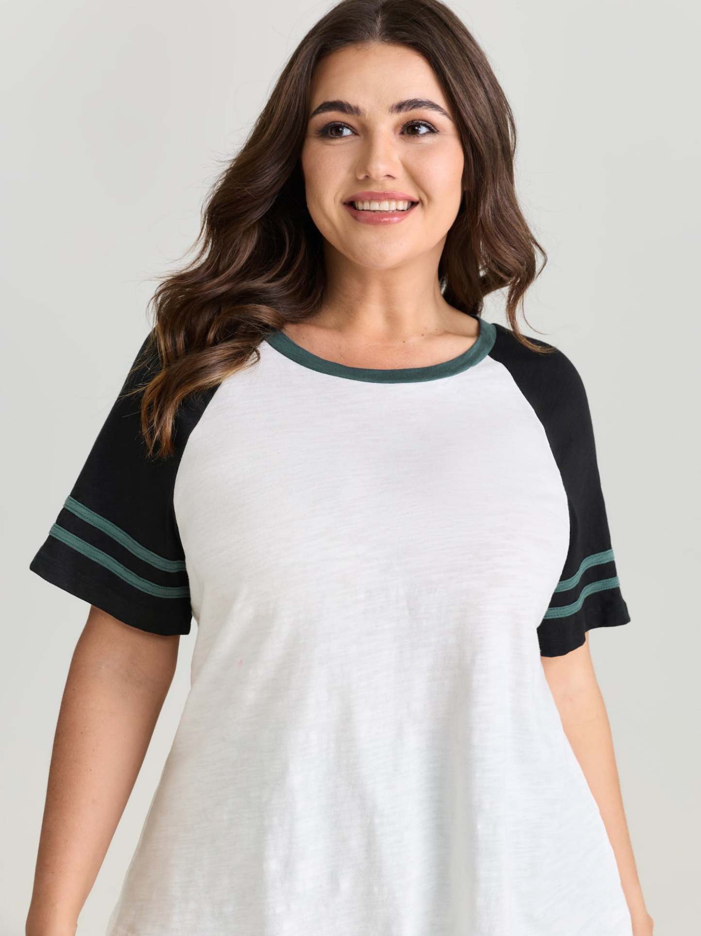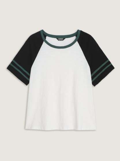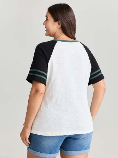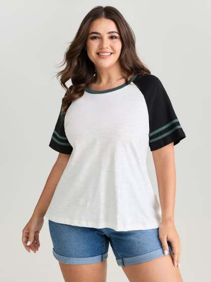 Cotton Stretchy Raglan Color Contrast Sleeve T-Shirt