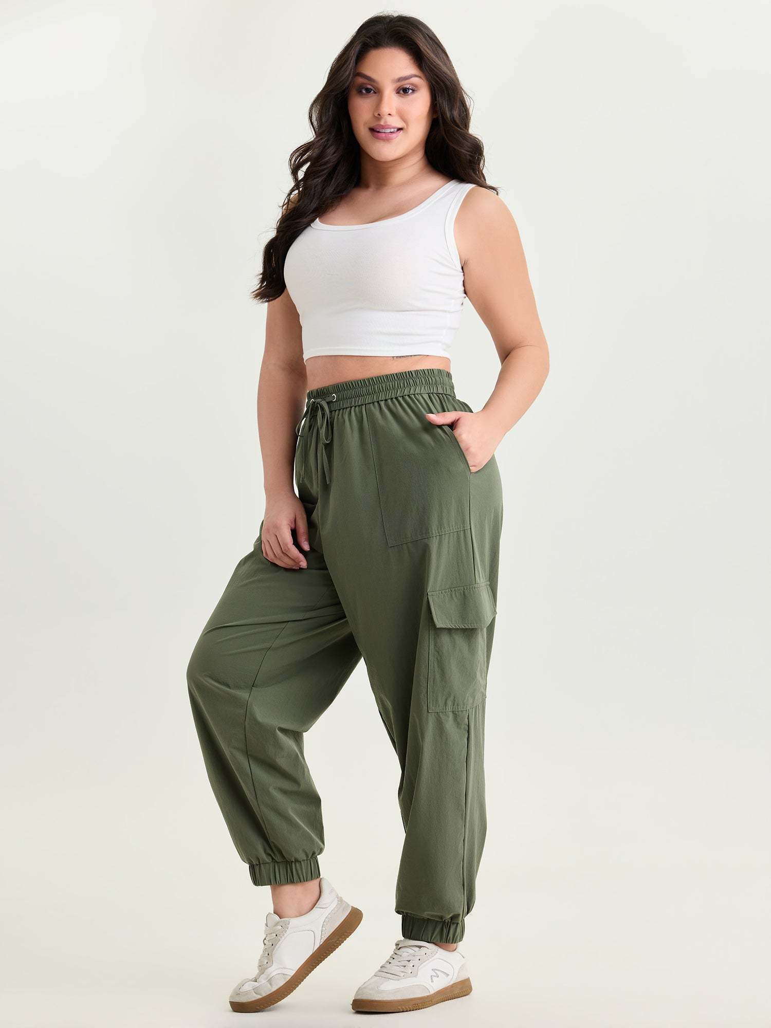 Shop Elastic Waist Pocket Sweatpants now and redefine your style with confidence at BloomChic. Tailored for mid and plus-size women. This trendy Bottoms Women, sizes 10-30. Color:Army Green;Style_2:Leisure;Waist Design:Mid Rise;Pattern Type:not graphics;Pattern:Solid;Details:Grommets, Lace-Up;Pocket:Patch pocket;Belt:No-belt