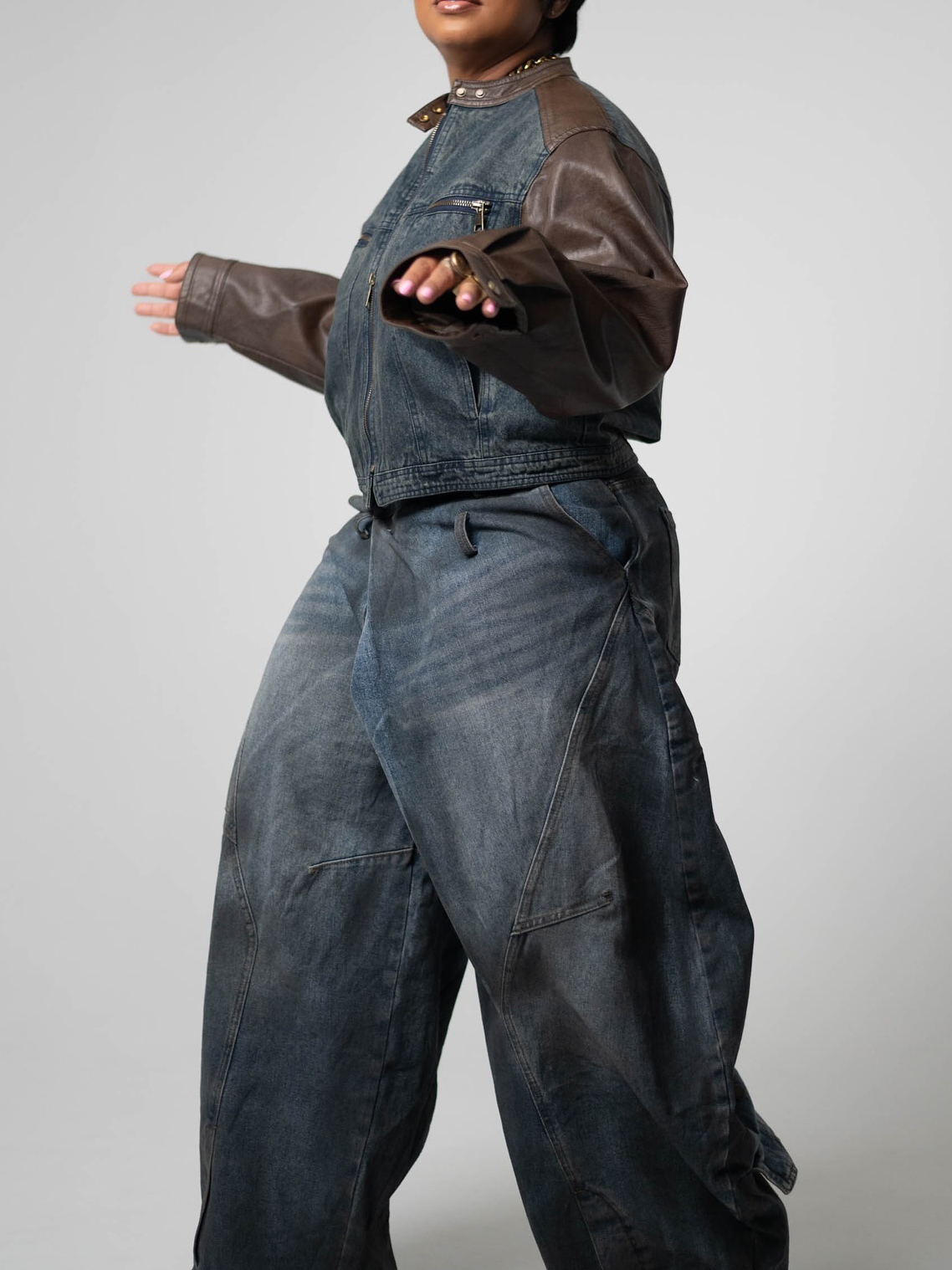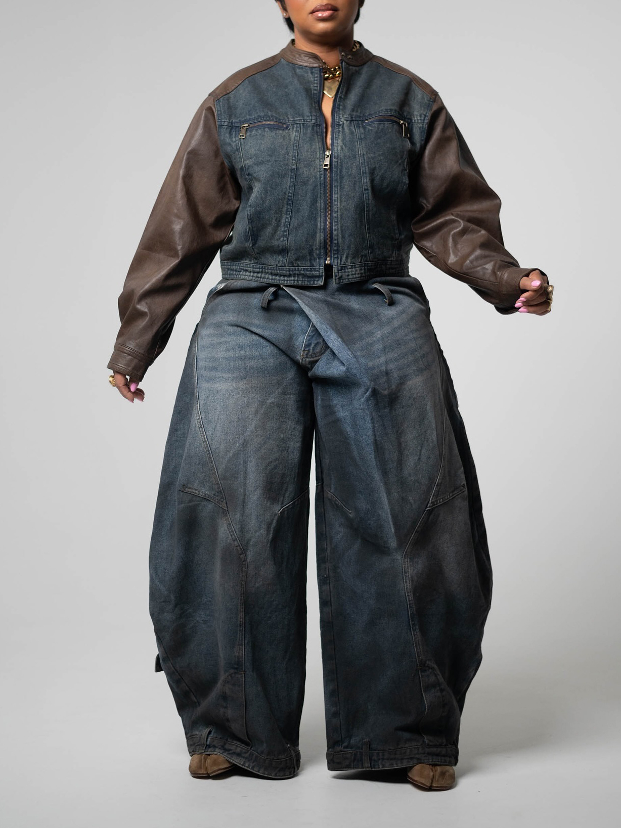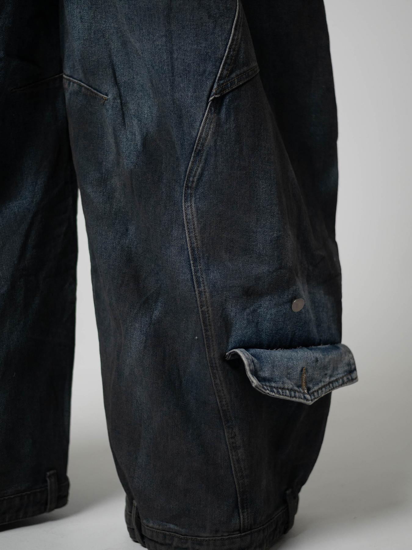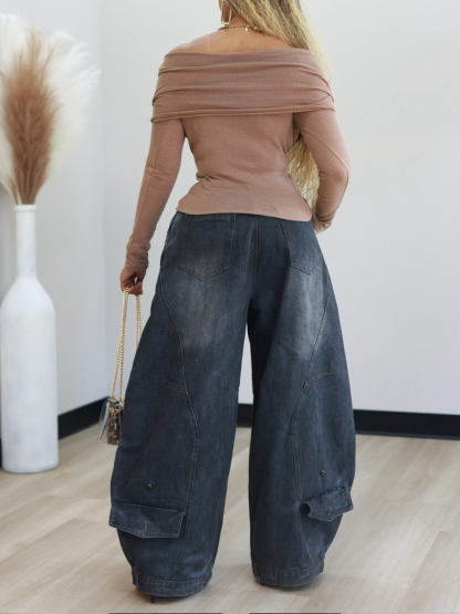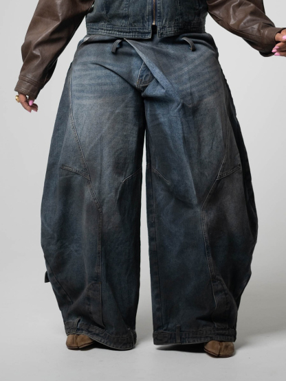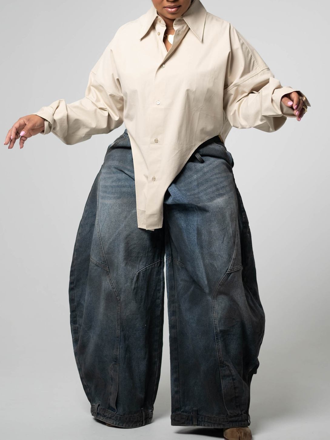 Fashion Asymmetric Placket Cocoon Silhouette Washed Jeans