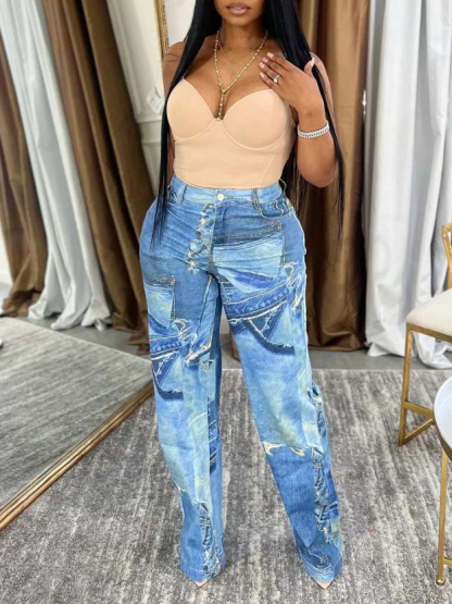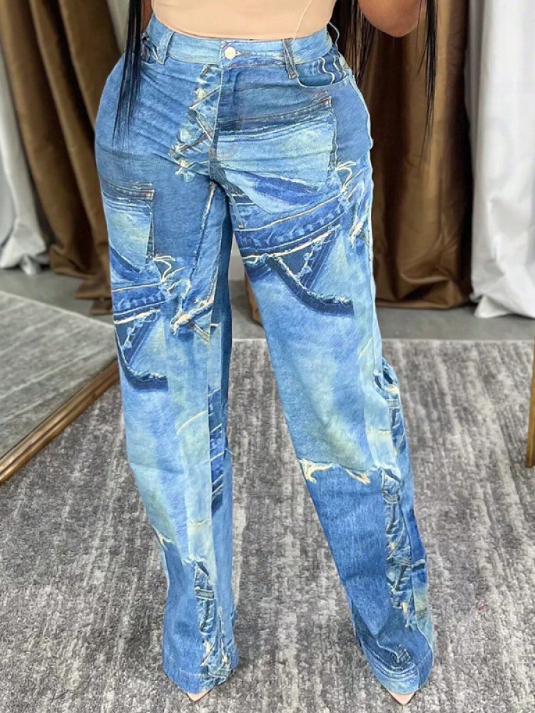Fashion Textured Print Wide Leg Pants