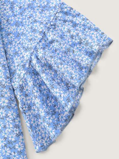 Floral Print Flared Ruffled Sleeve Blouse
