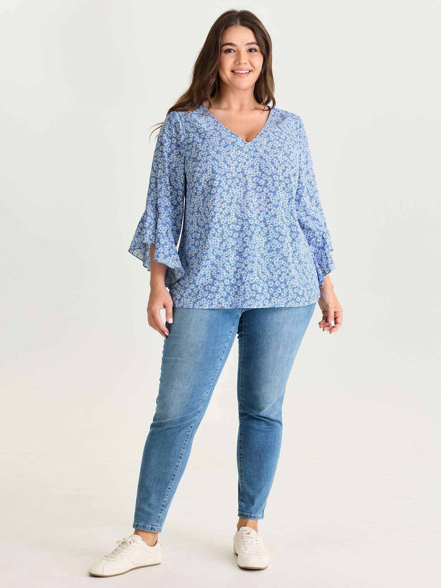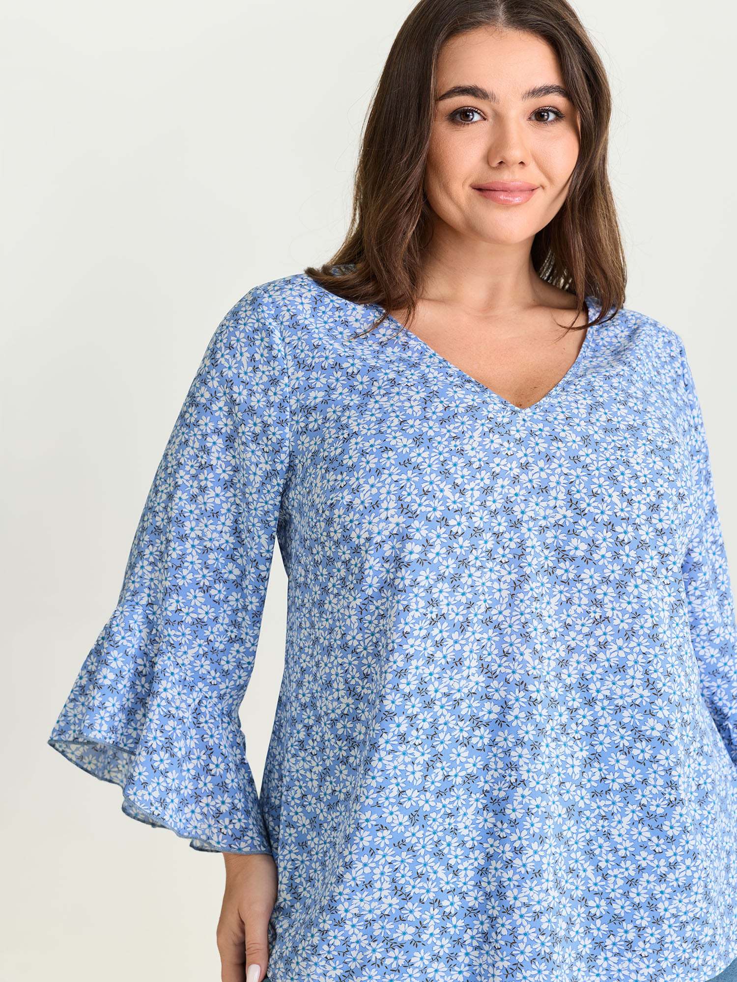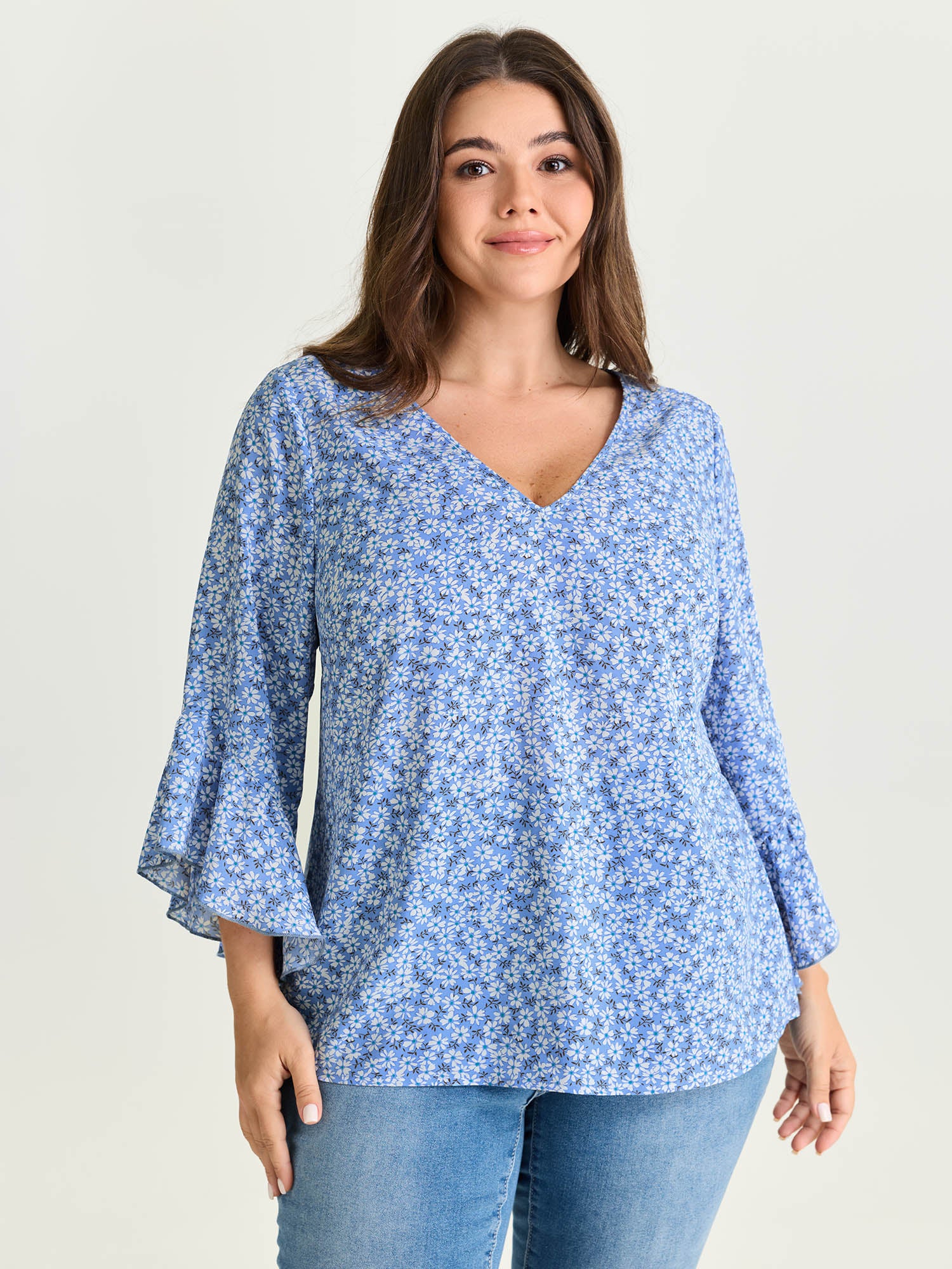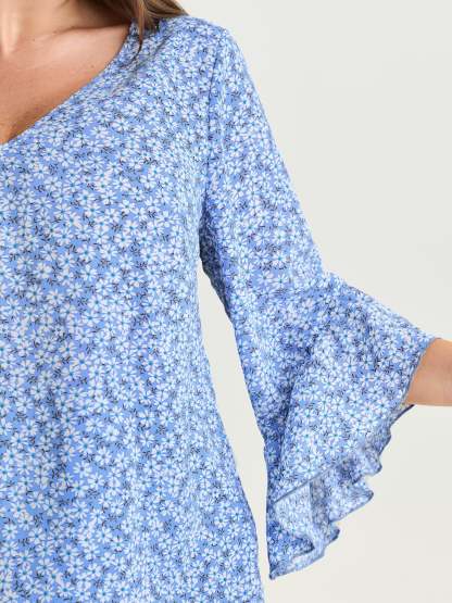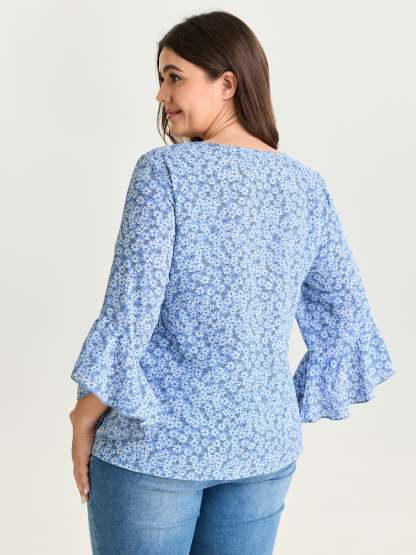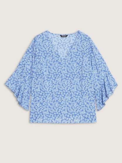 Shop Floral Print Flared Ruffled Sleeve Blouse now and redefine your style with confidence at BloomChic. Tailored for mid and plus-size women. This trendy Tops Women, sizes 10-30. Color:Sky Blue;Style_2:Leisure;Pattern Type:not graphics;Pattern:Ditsy Floral;Sleeve Type:Ruffle Sleeve
