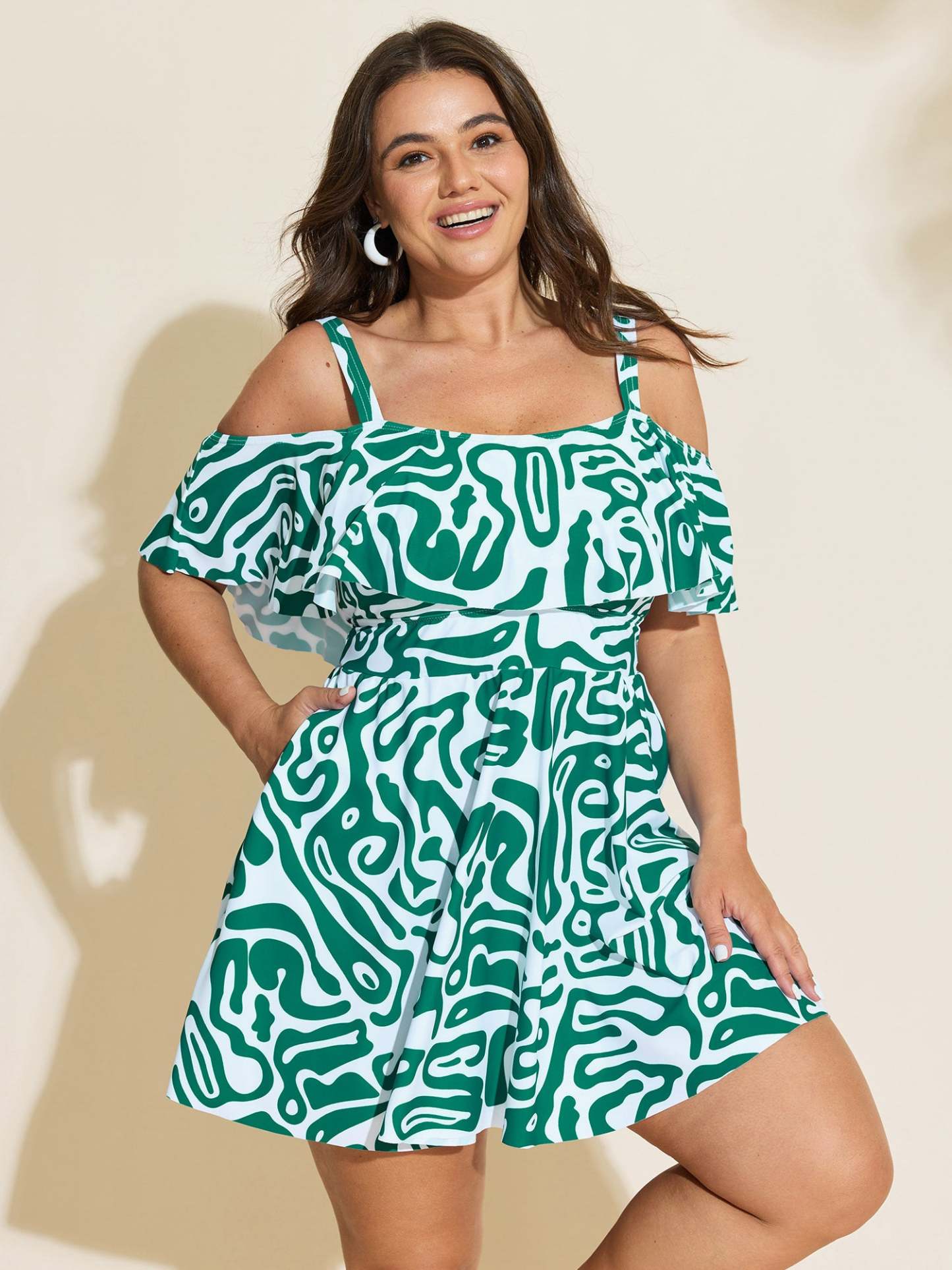 Shop Geometric Print Cold-Shoulder Swim Dress now and redefine your style with confidence at BloomChic. Tailored for mid and plus-size women. This trendy Swimwear Women, sizes 10-30. Color:Cyan;Style_2:Resort;Waist Design:Mid Rise;Neckline:One-shoulder neck;Sleeve Type:Raglan sleeve;Pattern:Floral;Belt:No-belt;Chest pad:Chest pad;Lining:Lining;Closure Type:Pull-On;Structural function:Full Coverage;Swimsuit types:Bikini Shorts Swim Dress