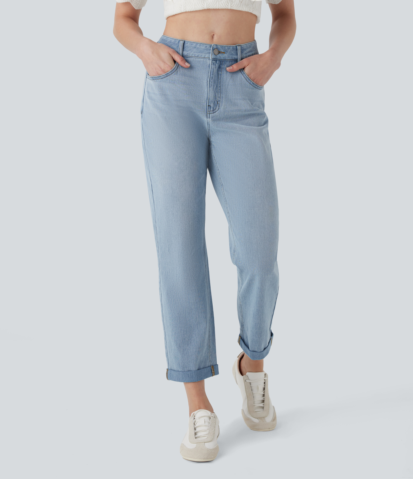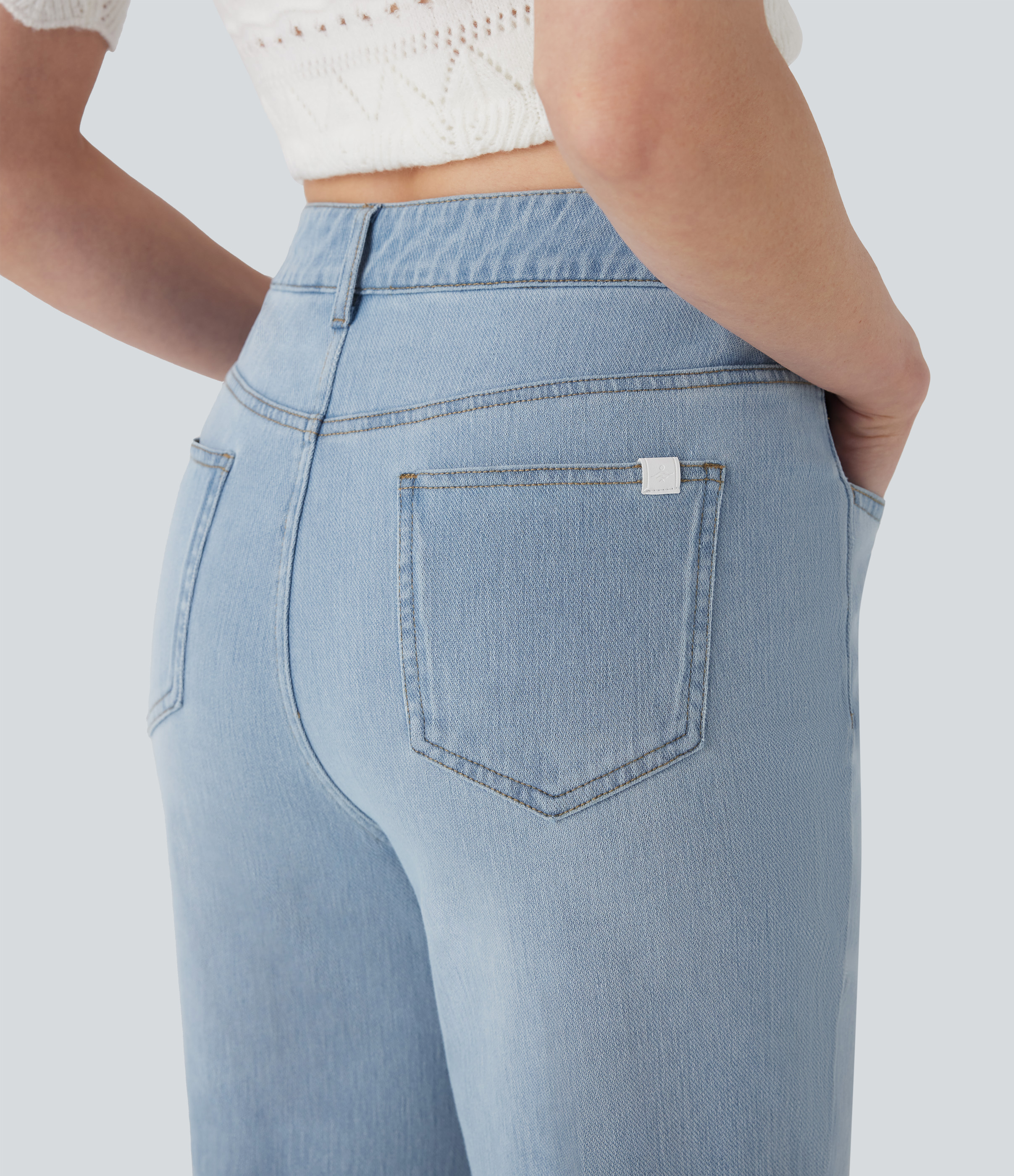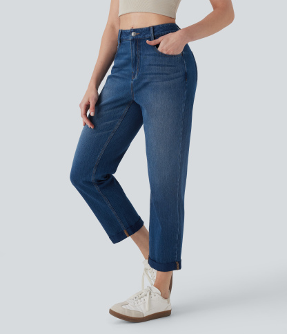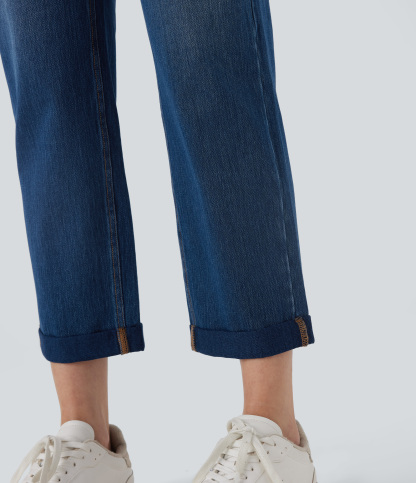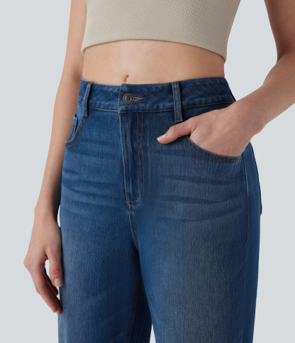 Halara FlexTM Mid Rise Straight Leg Washed Casual Jeans with Pockets