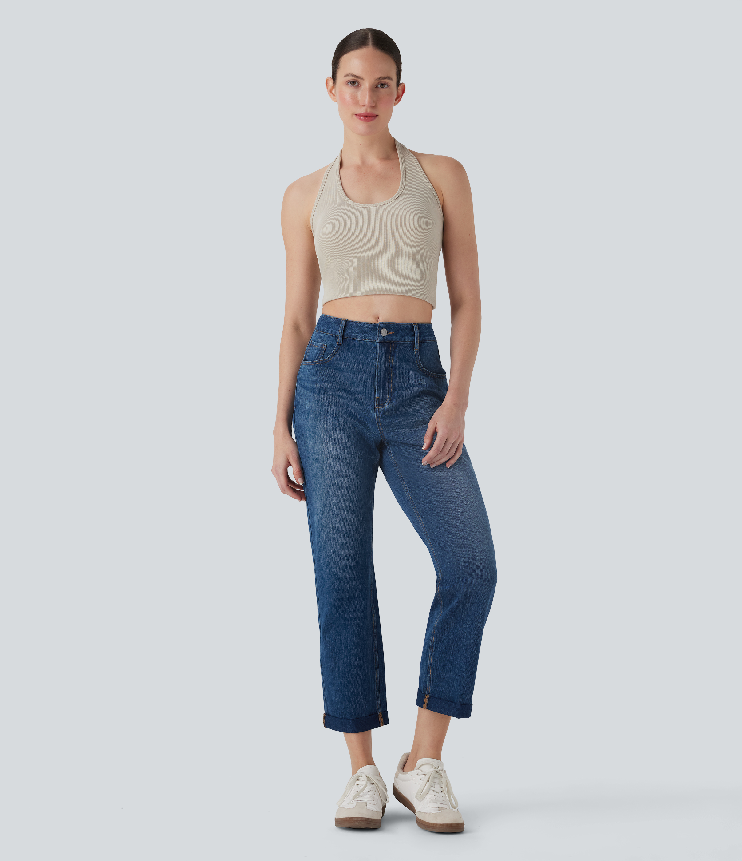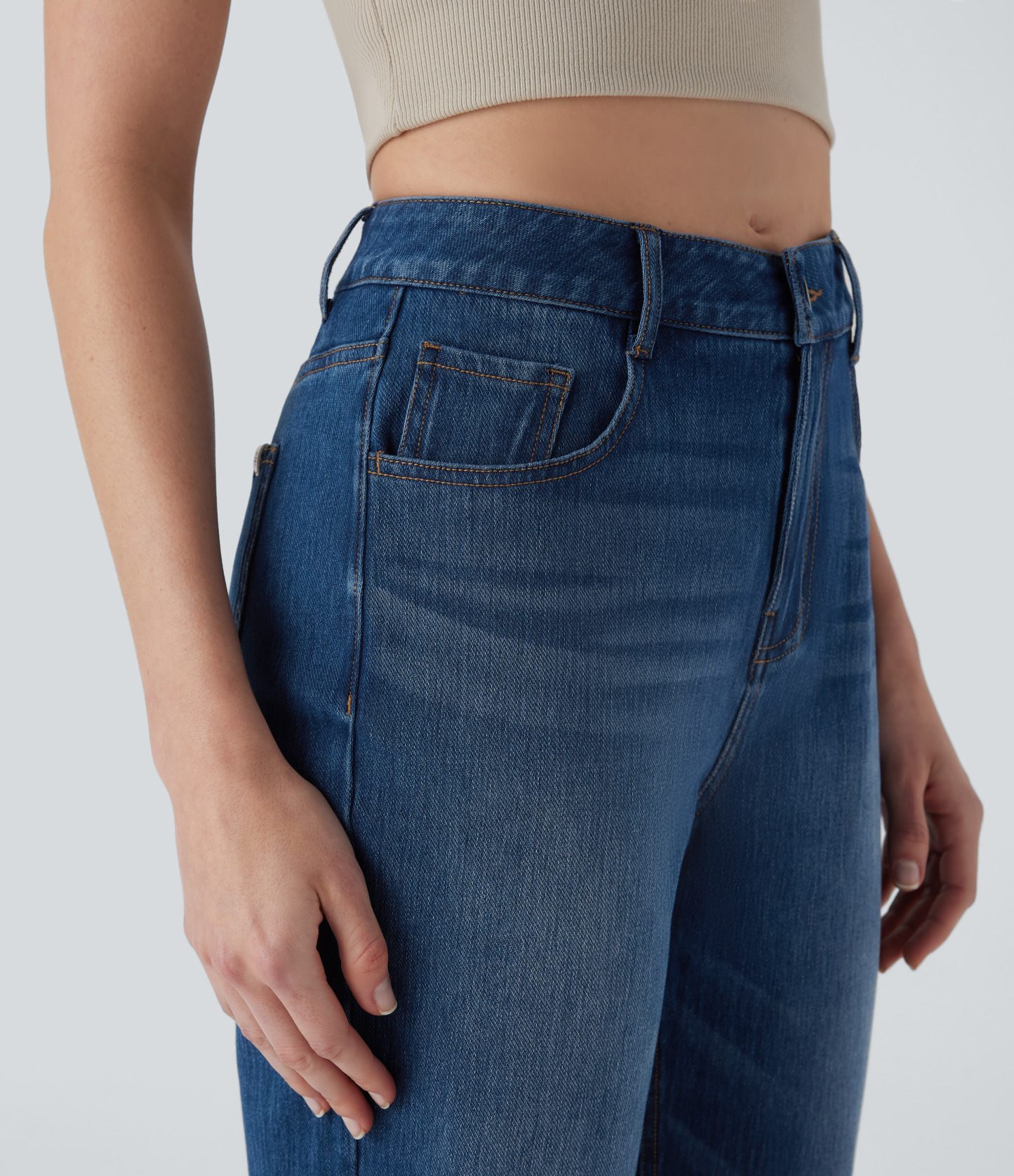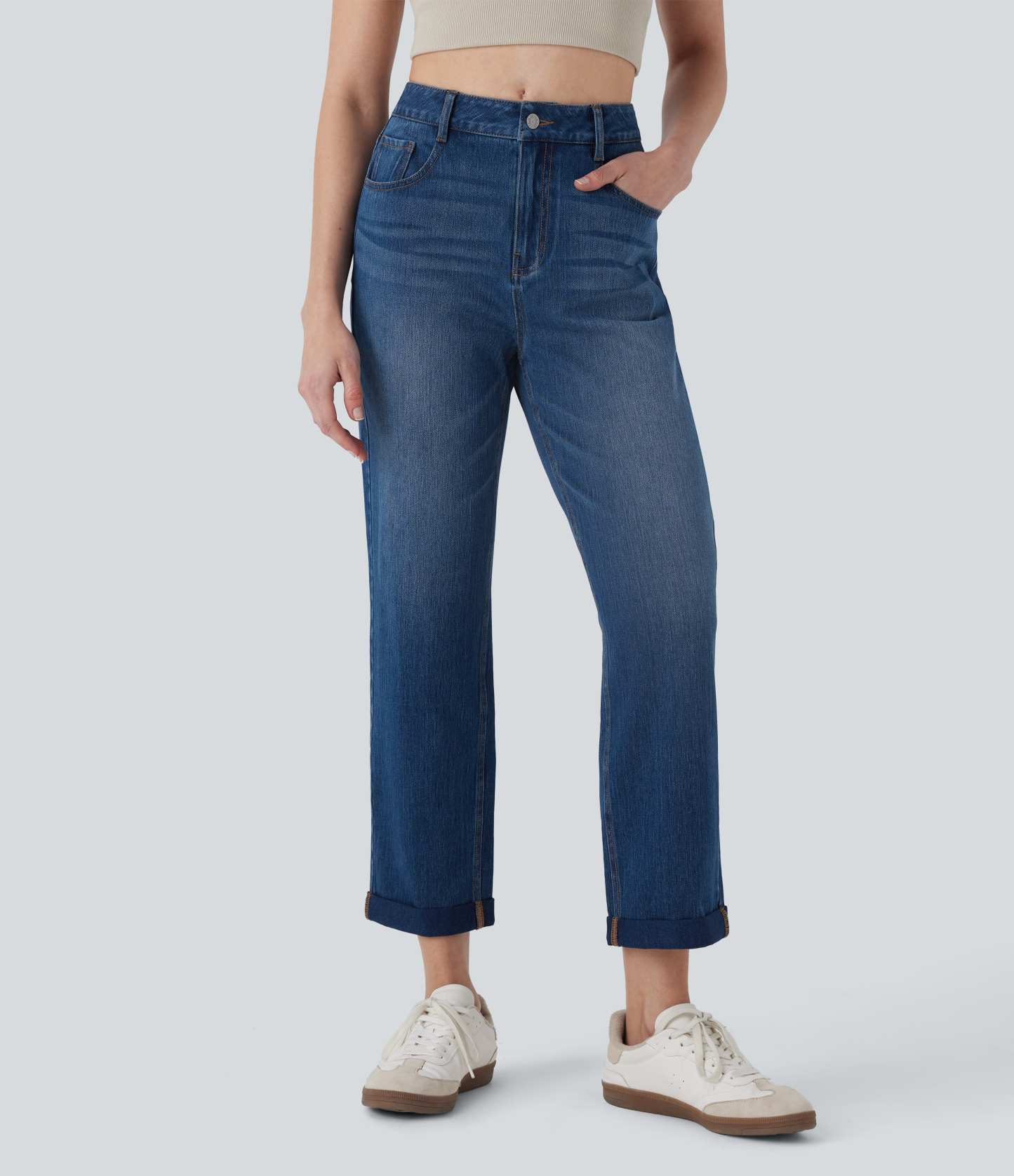 Halara FlexTM Mid Rise Straight Leg Washed Casual Jeans with Pockets