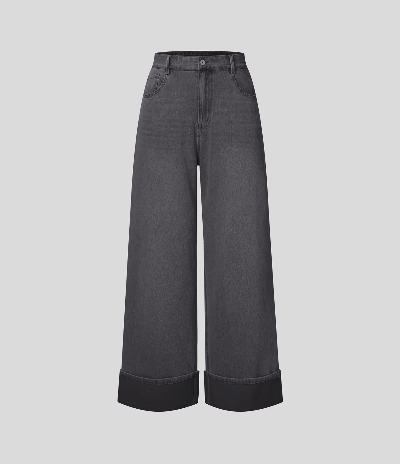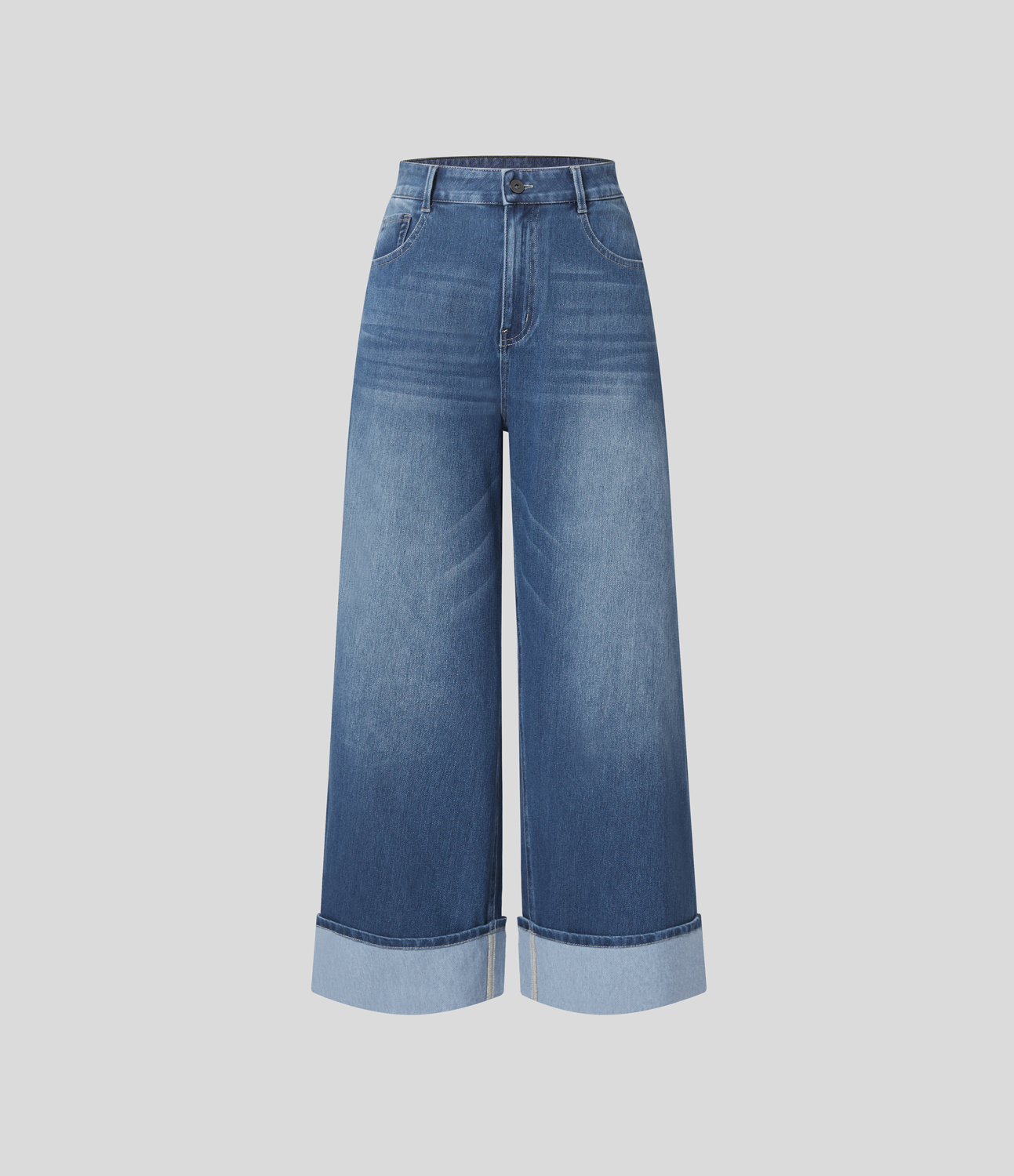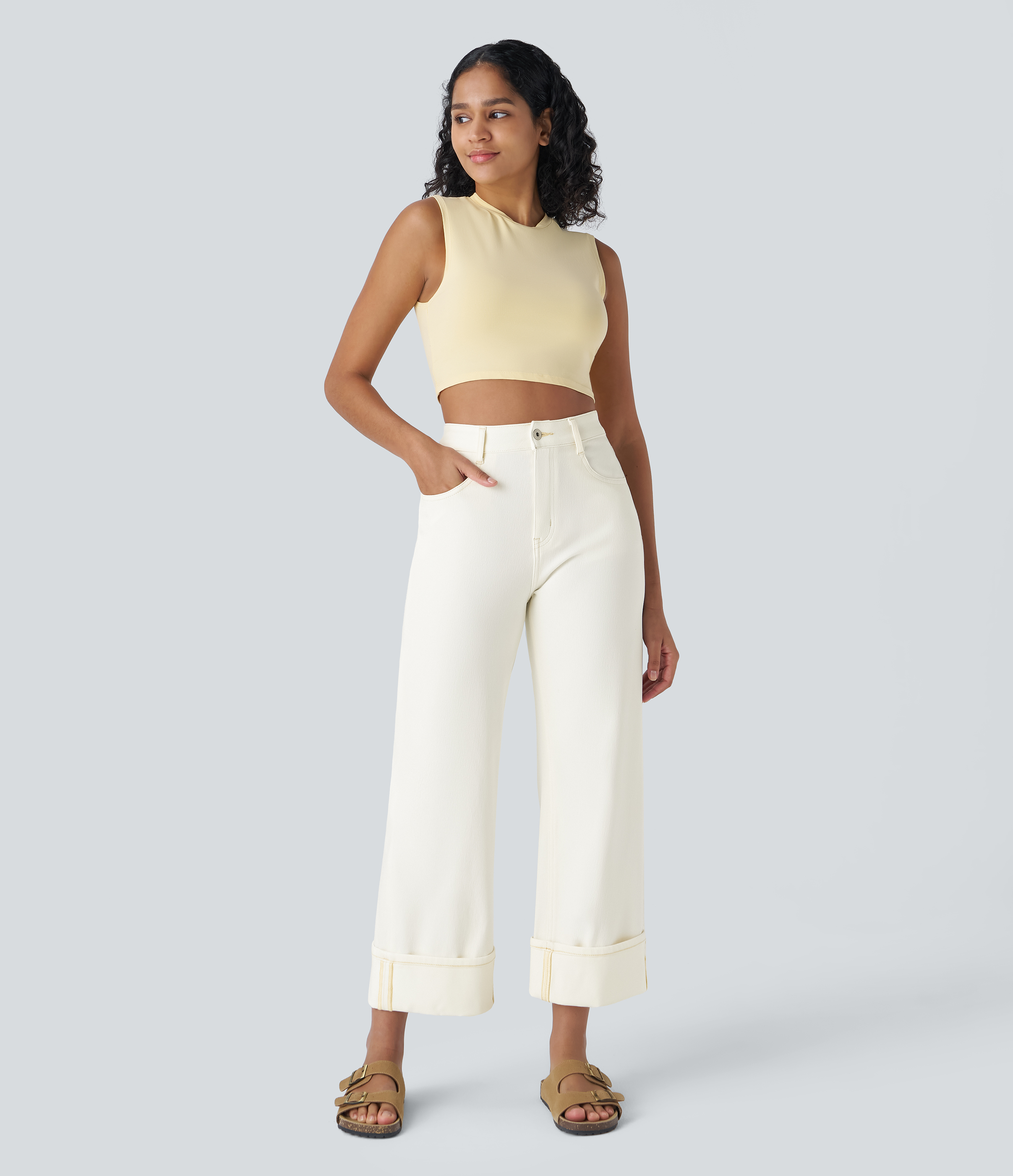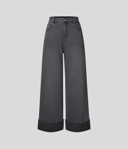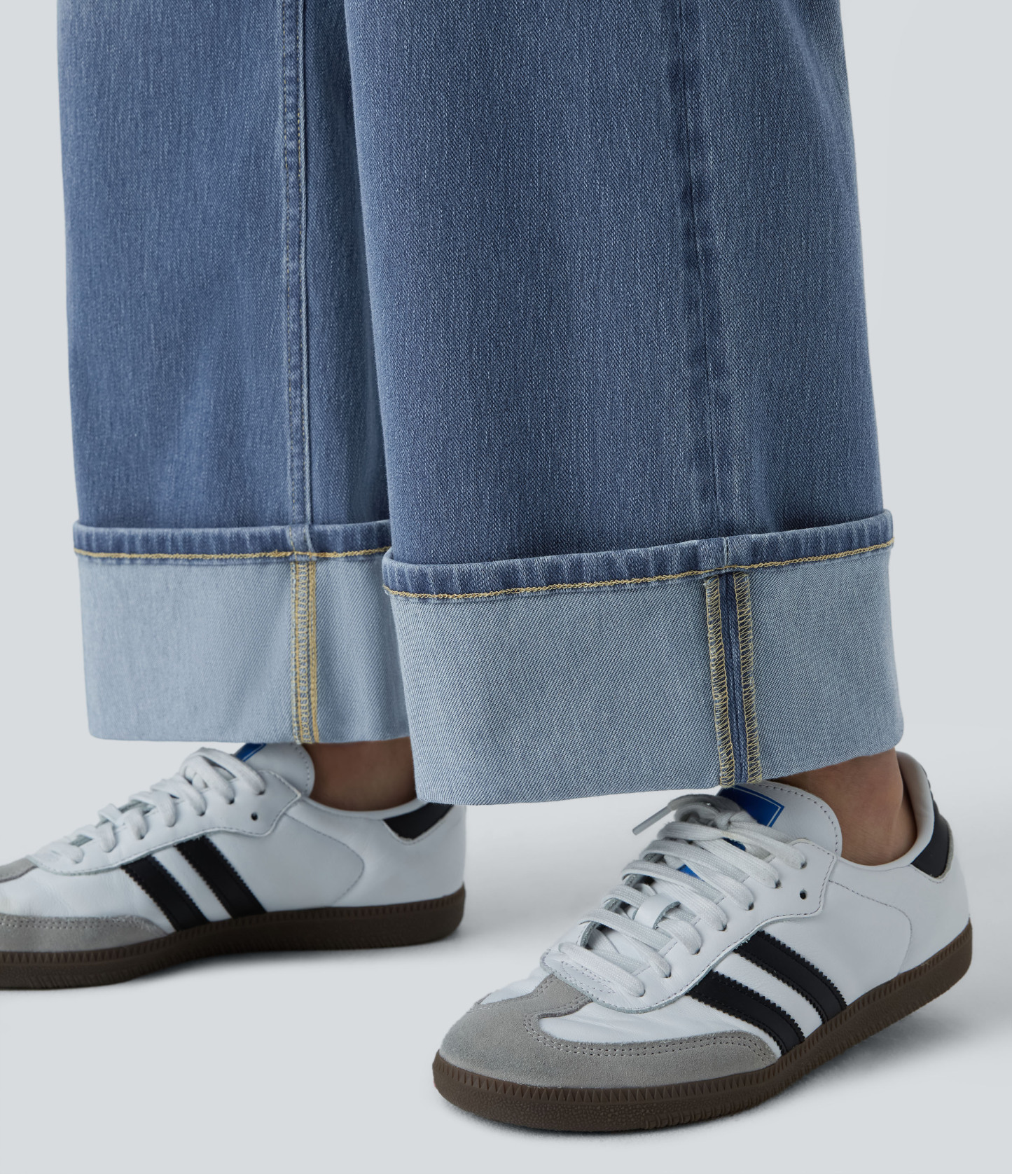 Halara FlexTM High Waisted Multiple Pockets Rolled Hem Wide Leg Washed Stretchy Knit Casual Jeans