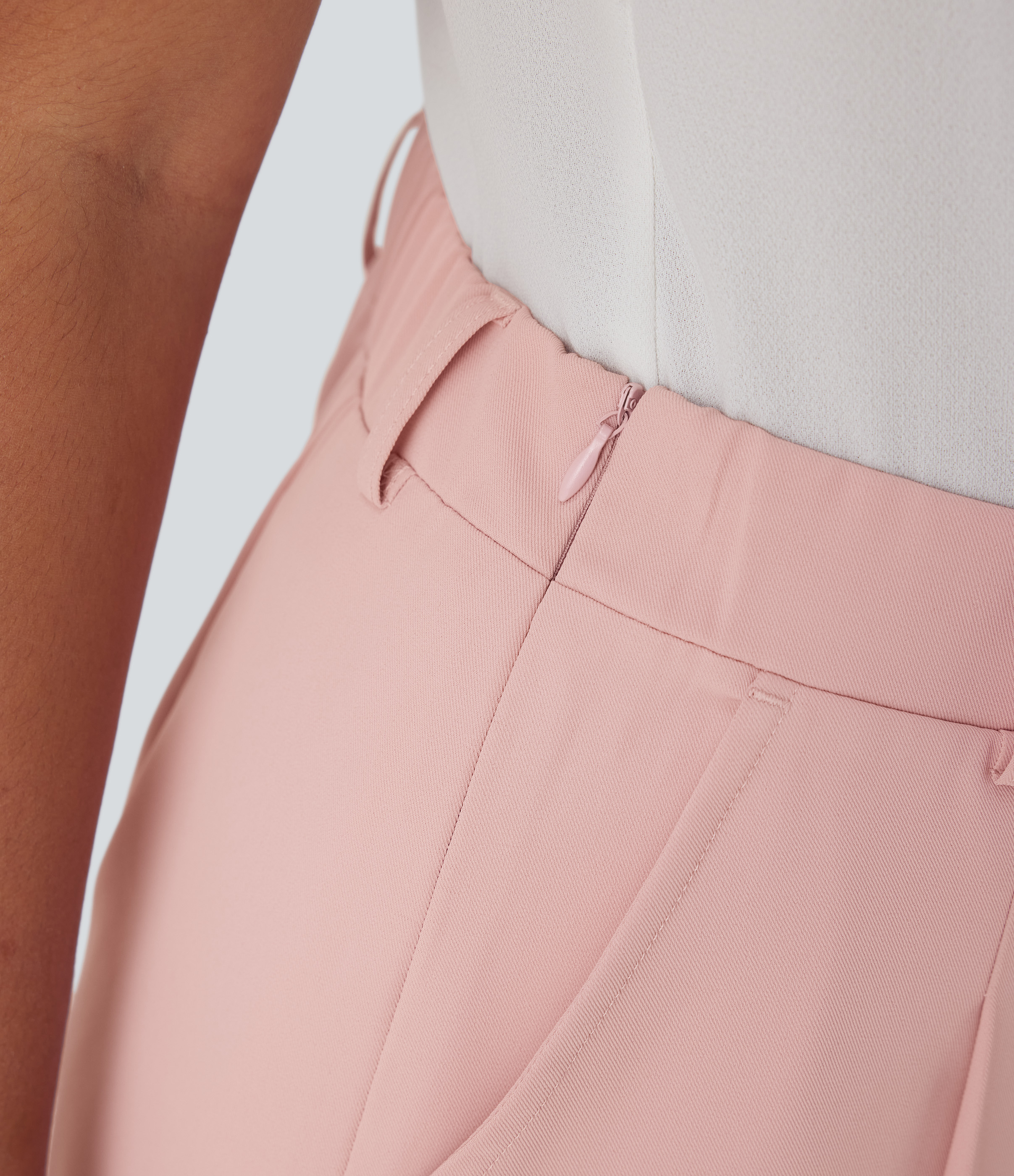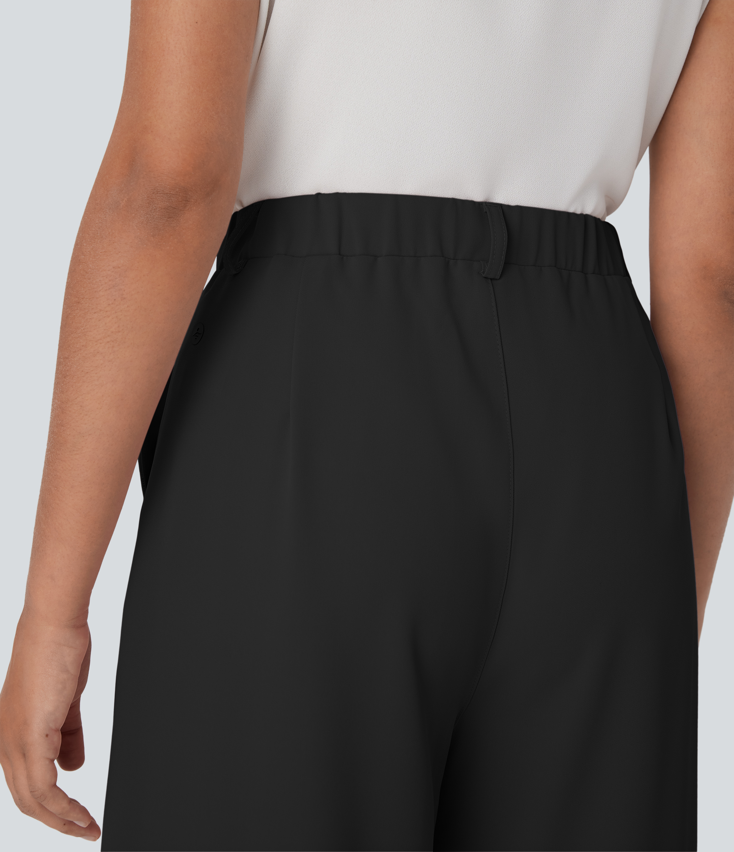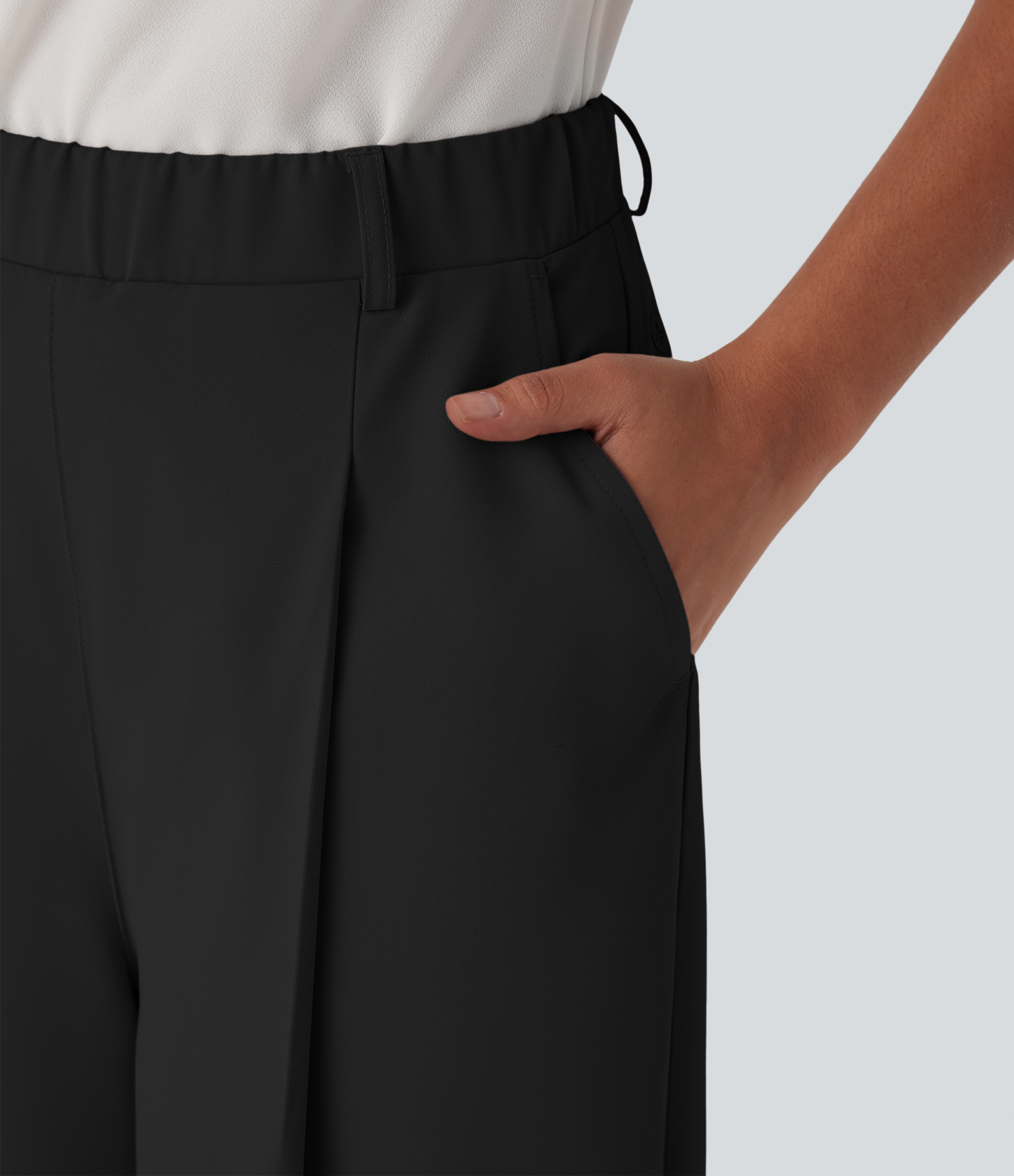 High Waisted Belted Wide Leg Cropped Work Pants with Pockets