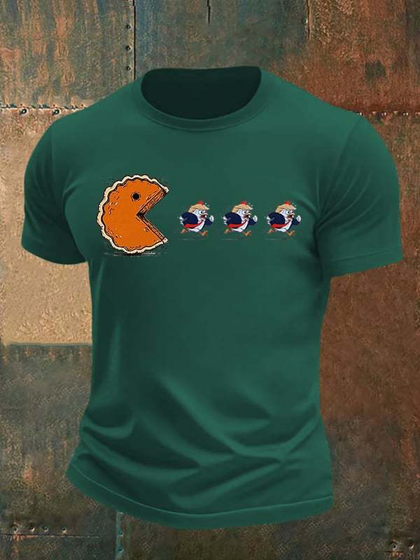 Men's Funny Turkey Chasing Pie Sublimation FDT Thanksgiving T-Shirt
