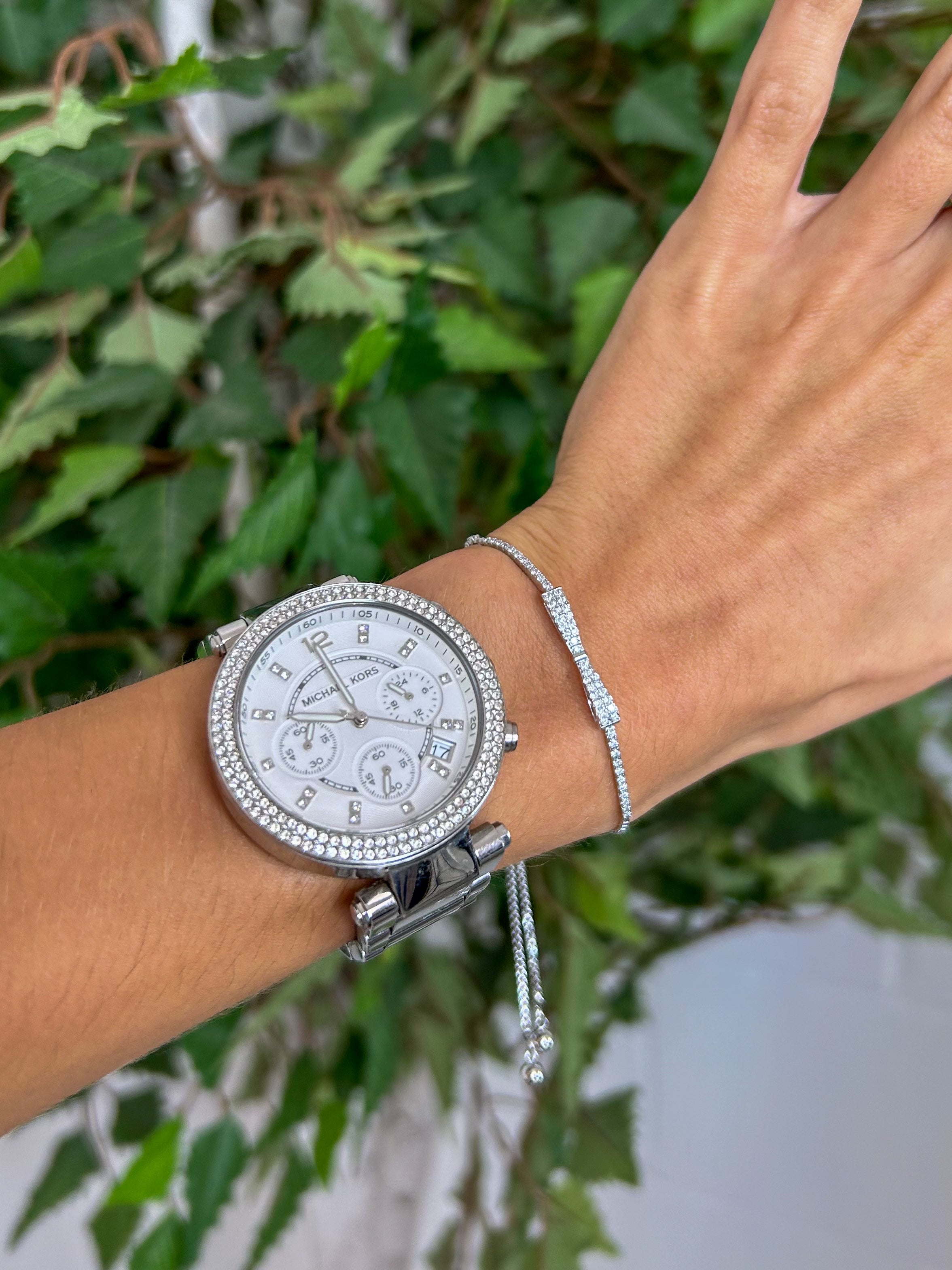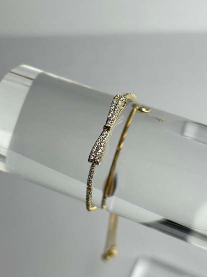 Silver Or Gold Small Bow Bracelet with Gems