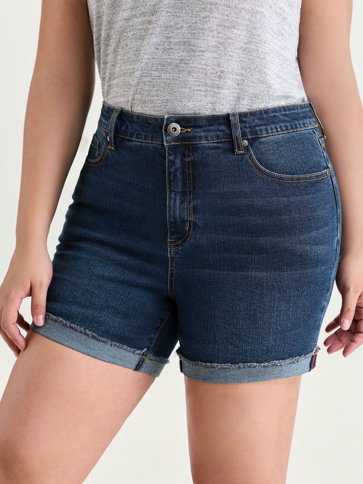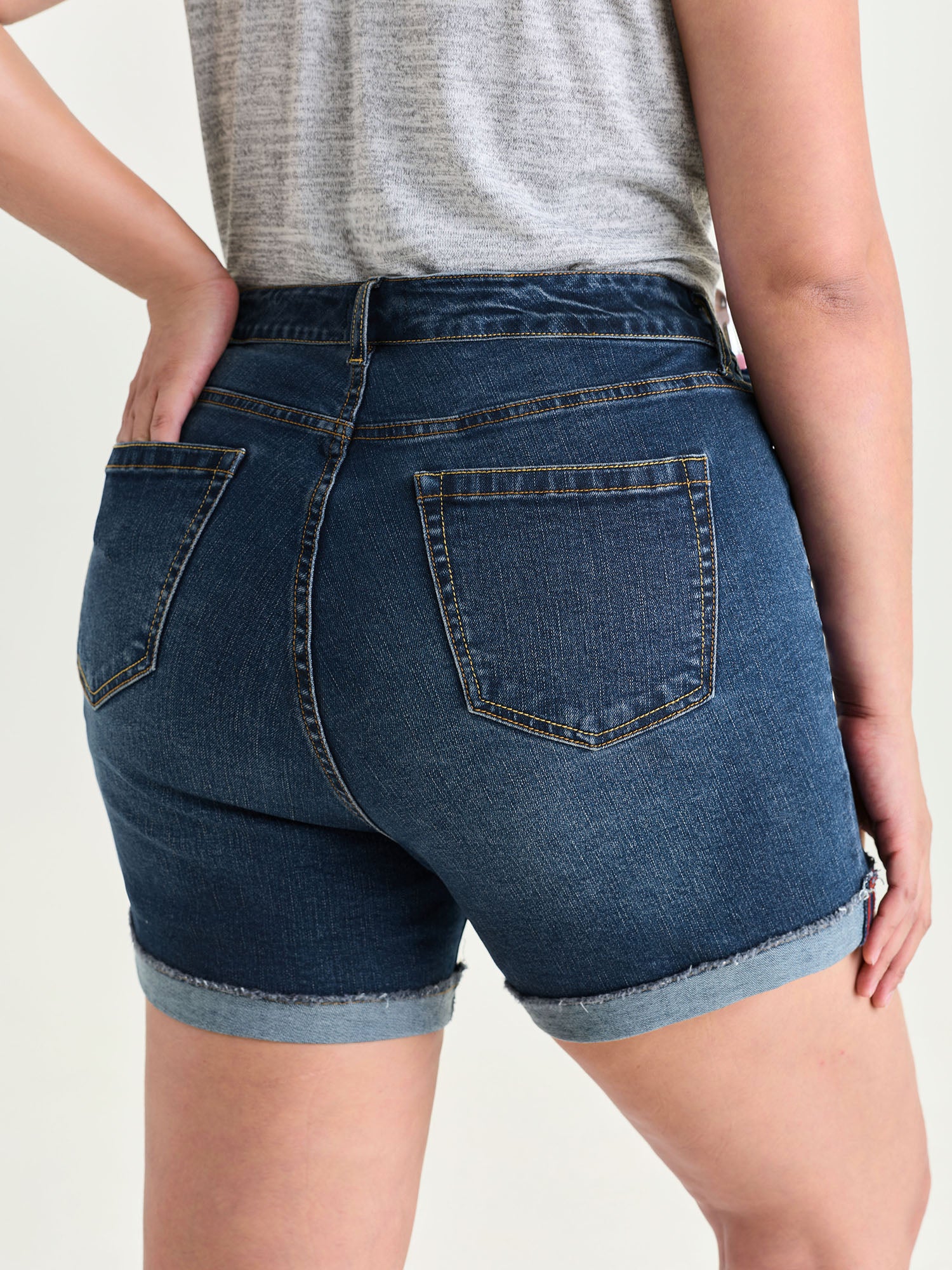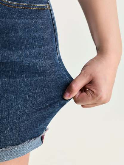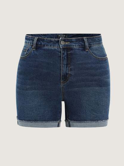 Stretchy Folded Hem Skinny-Fit Denim Shorts