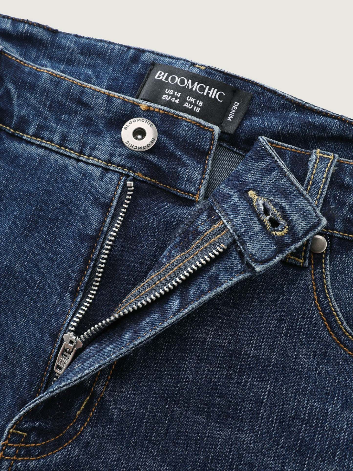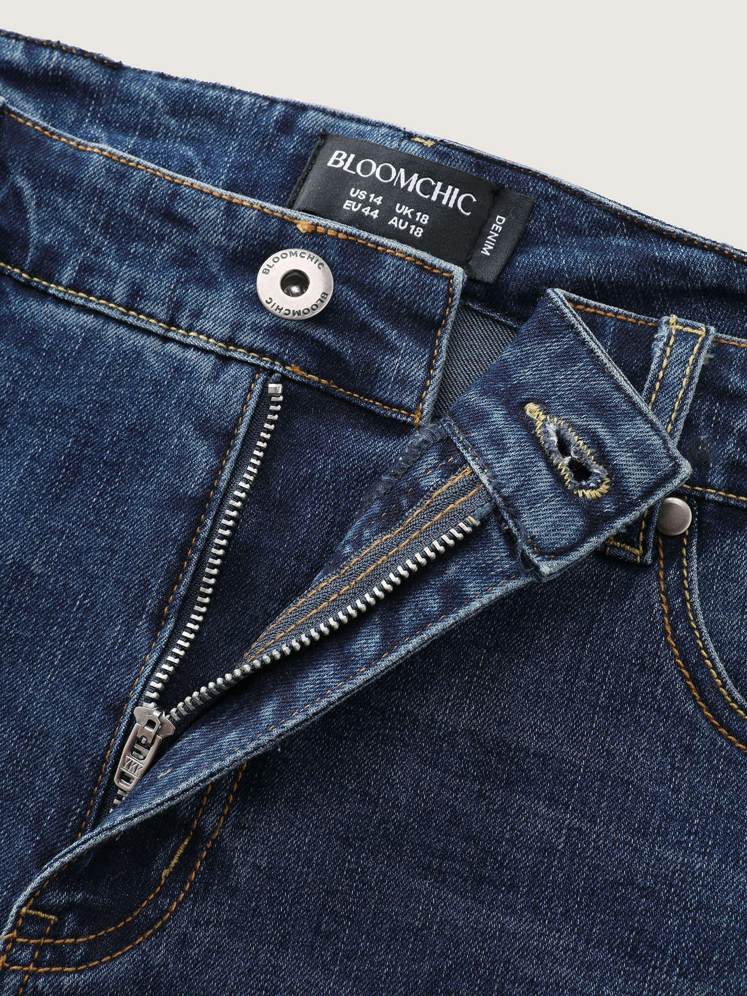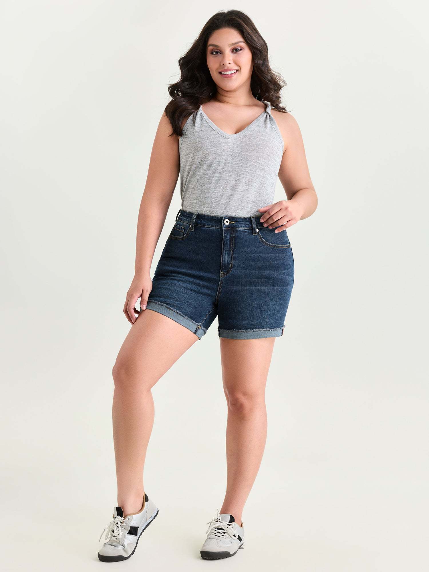 Stretchy Folded Hem Skinny-Fit Denim Shorts