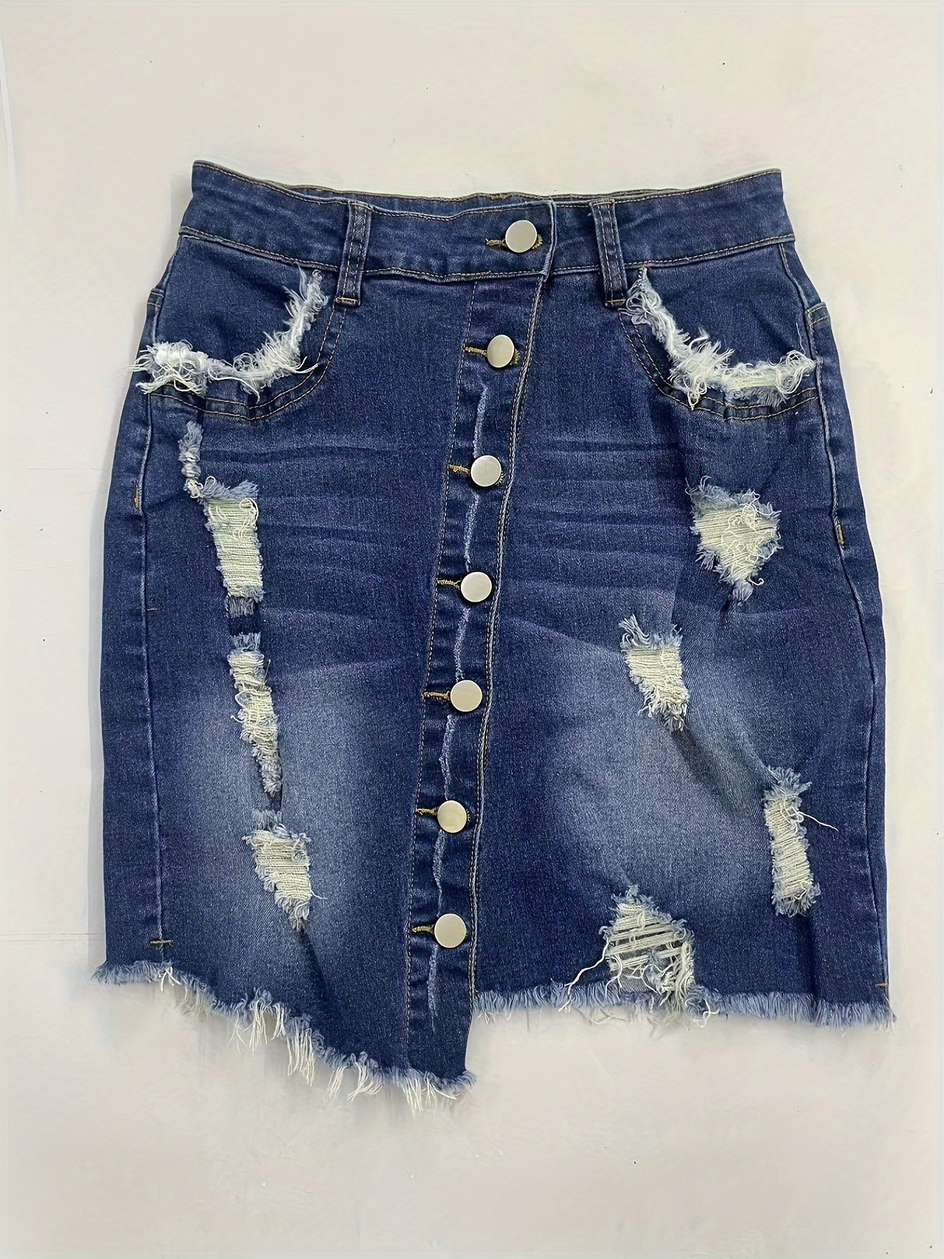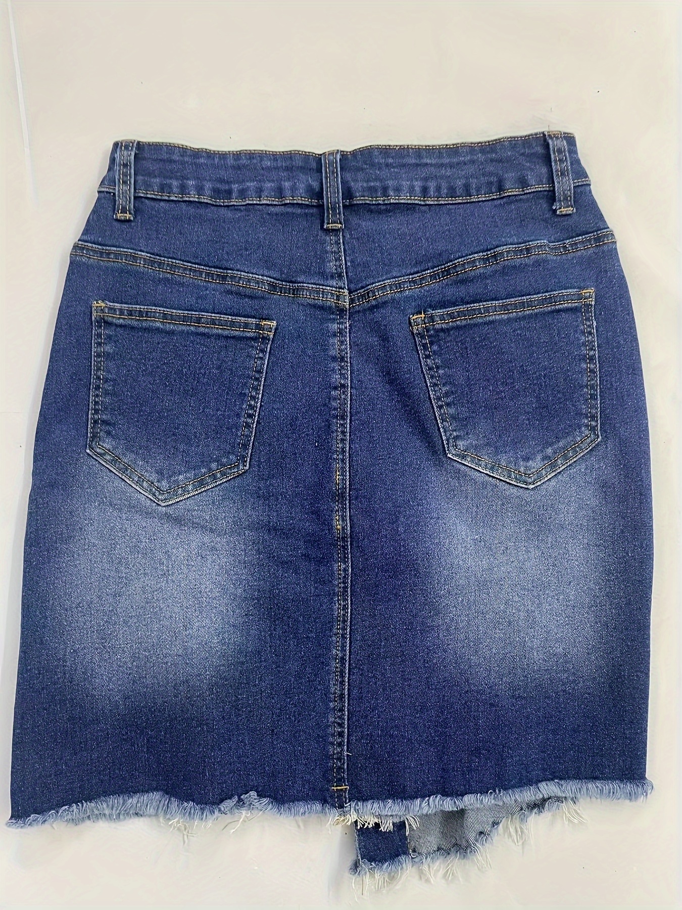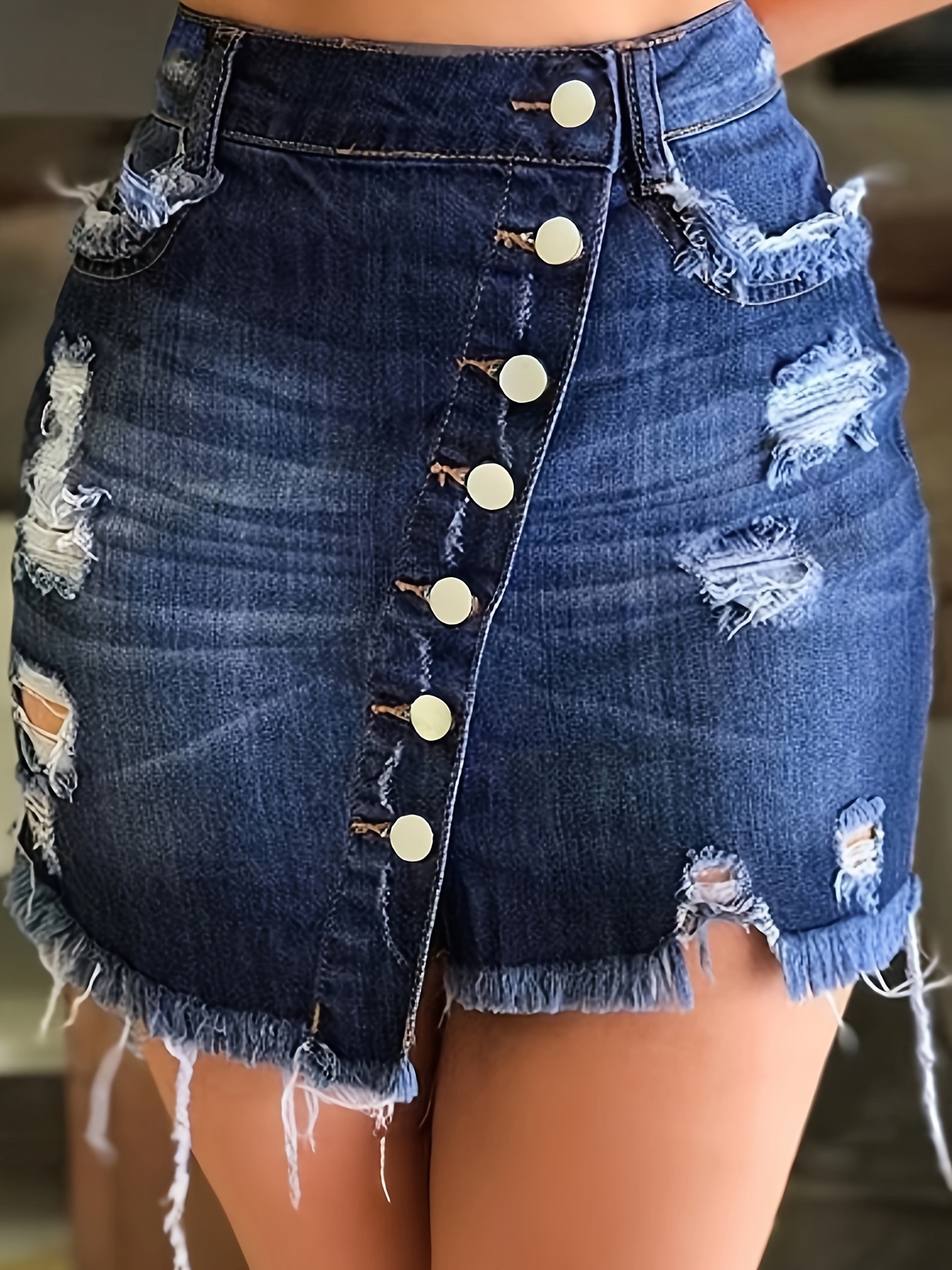 Women Breasted Tassel Scratch Casual Denim Skirt