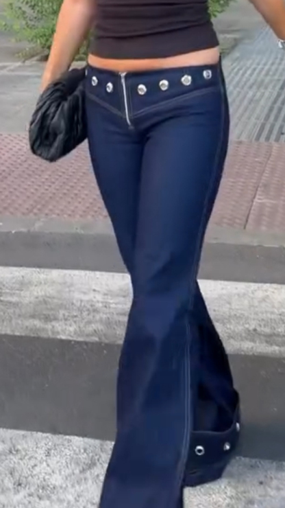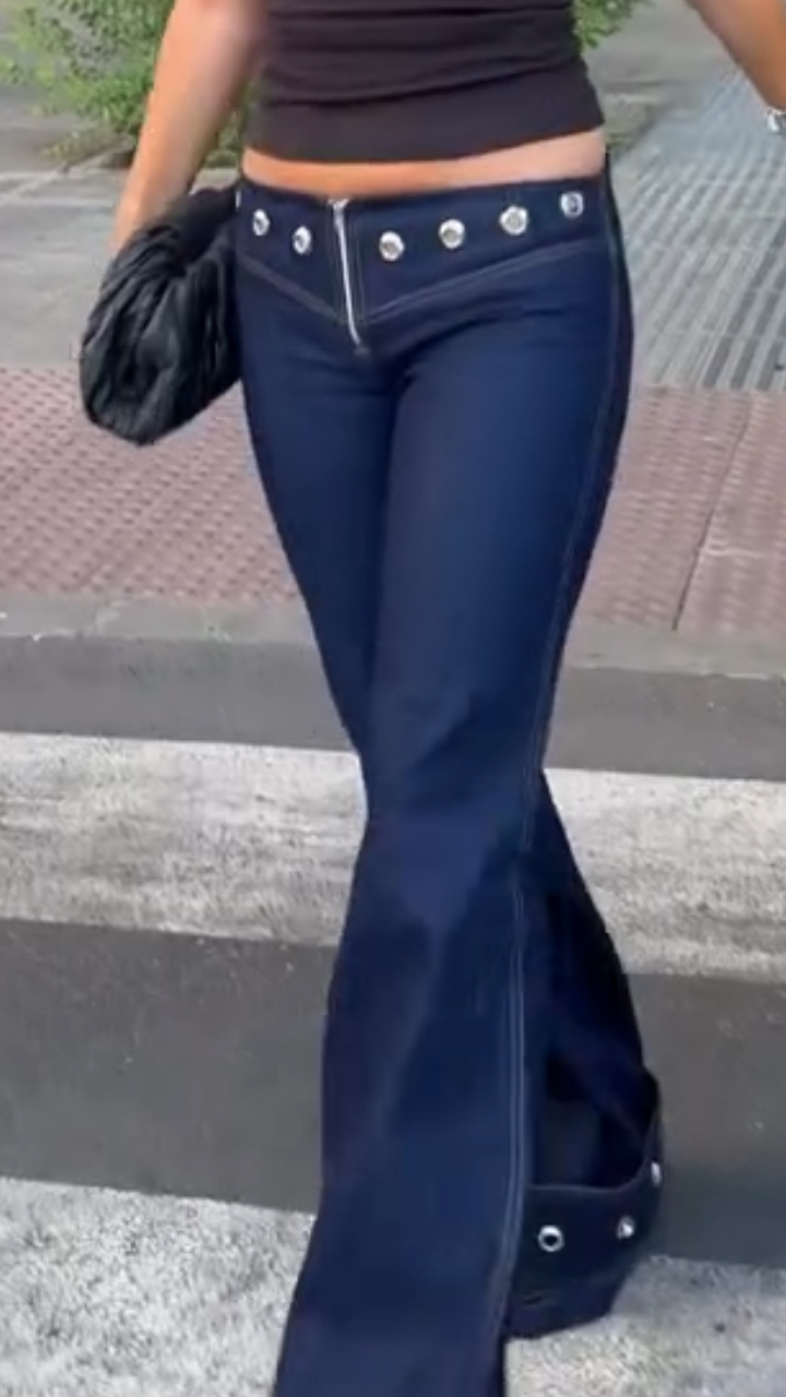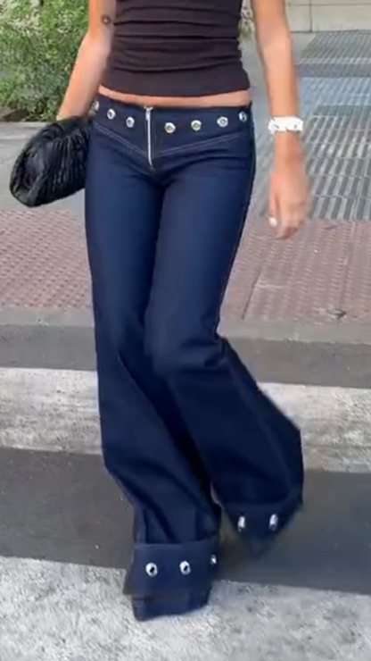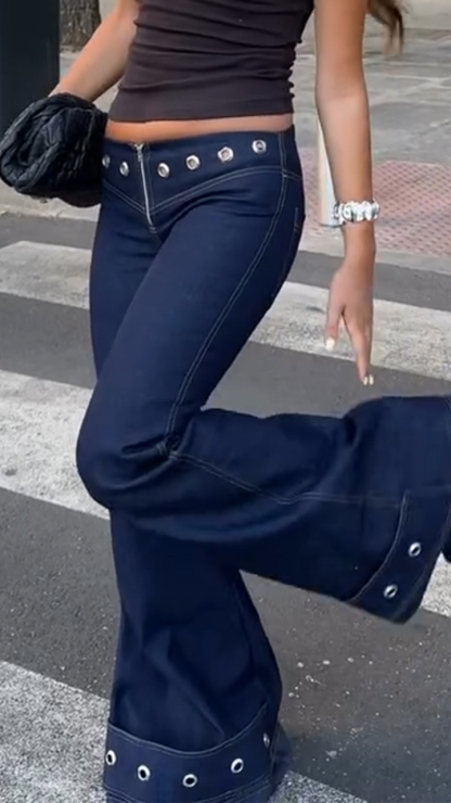 Women Rivet Decorative Spliced Casual Jeans