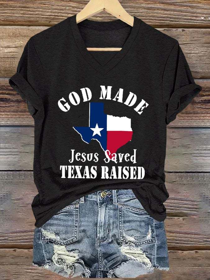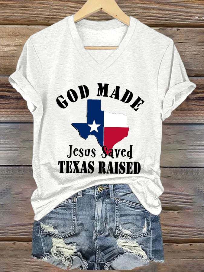 Women's God Made Juses Saved Texas Raised Printed T-Shirts