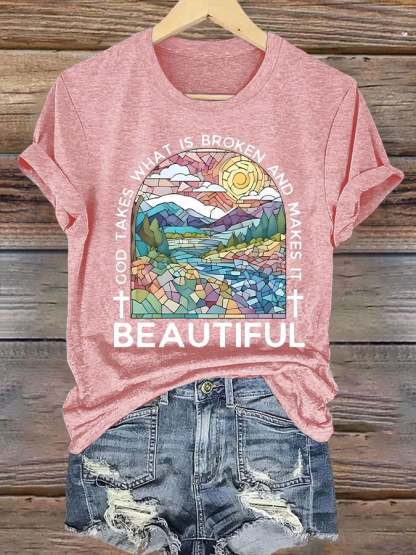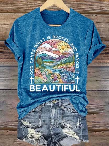 Women's God Takes What is Broken And Makes It BeauTiful Print T-shirt