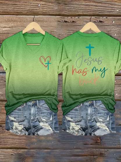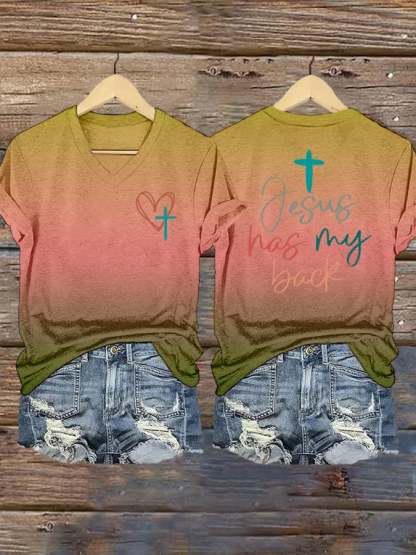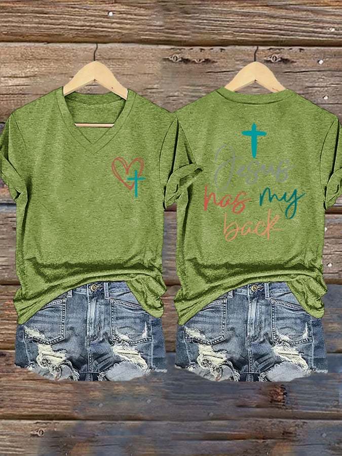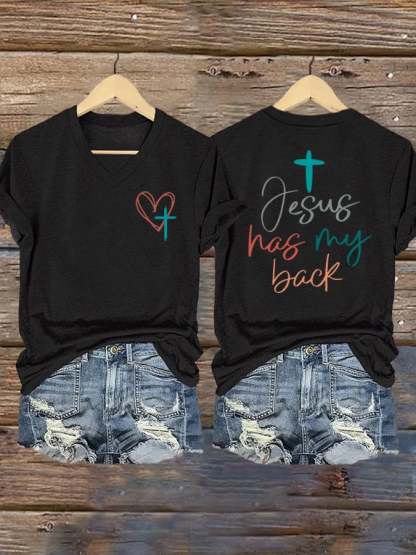 Women's Jesus Has My Back Print Shirt