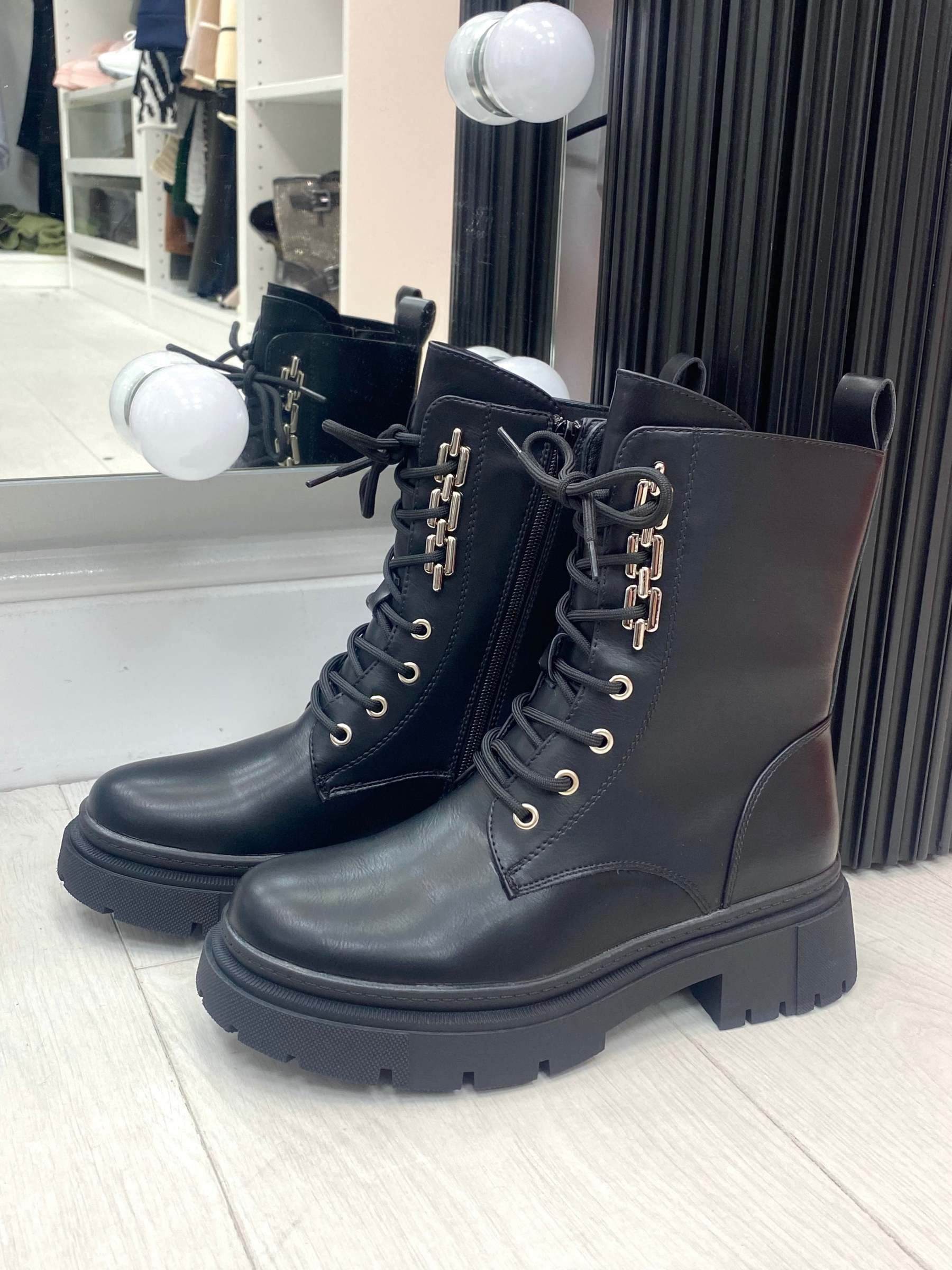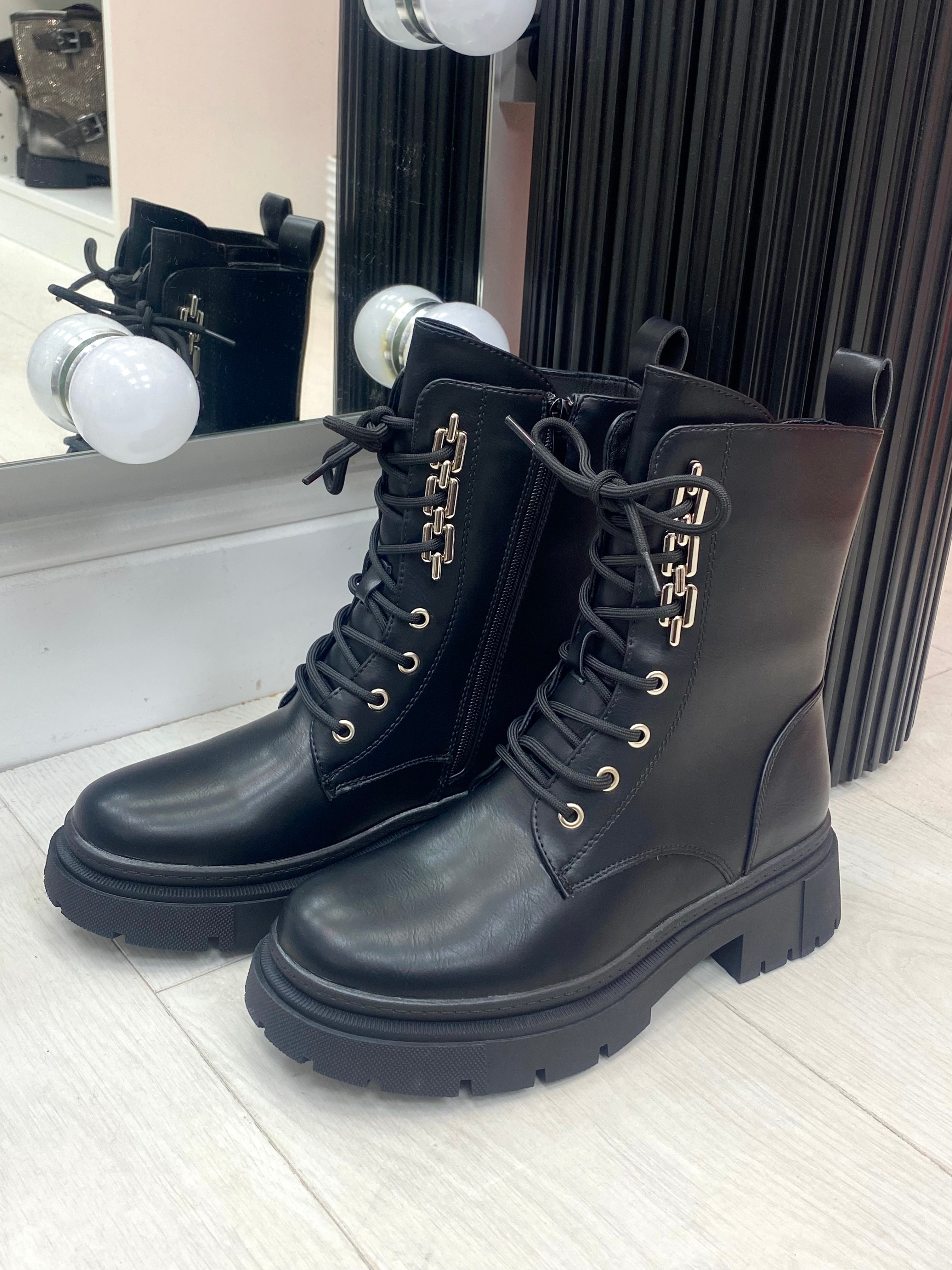 Agnes Lace Up Chain Detail Biker Boots