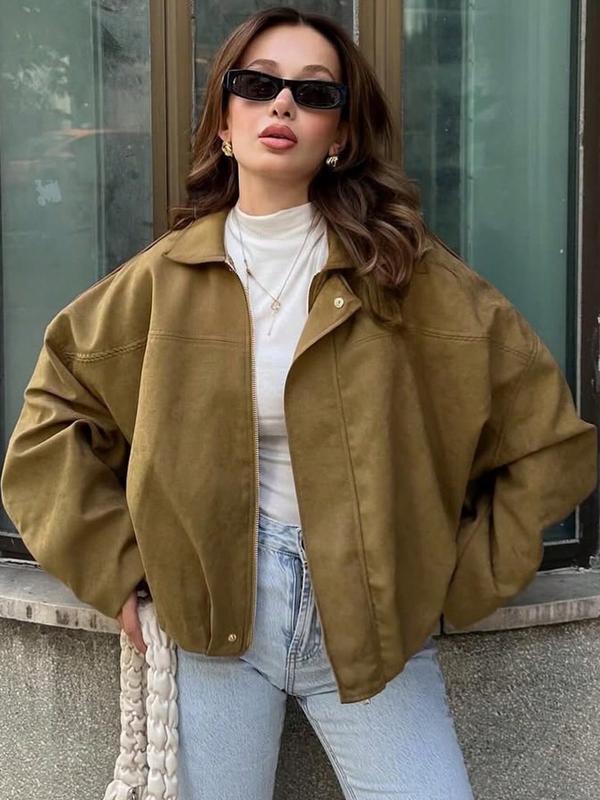 Aviator Jacket Woman, New In Coats And Jackets, Casual Zip Up Jacket Women's Winter Jacket, Oversized Pilot Jacket Cropped Fit, 2026 Streetwear Short Jacket Woman, Outerwear