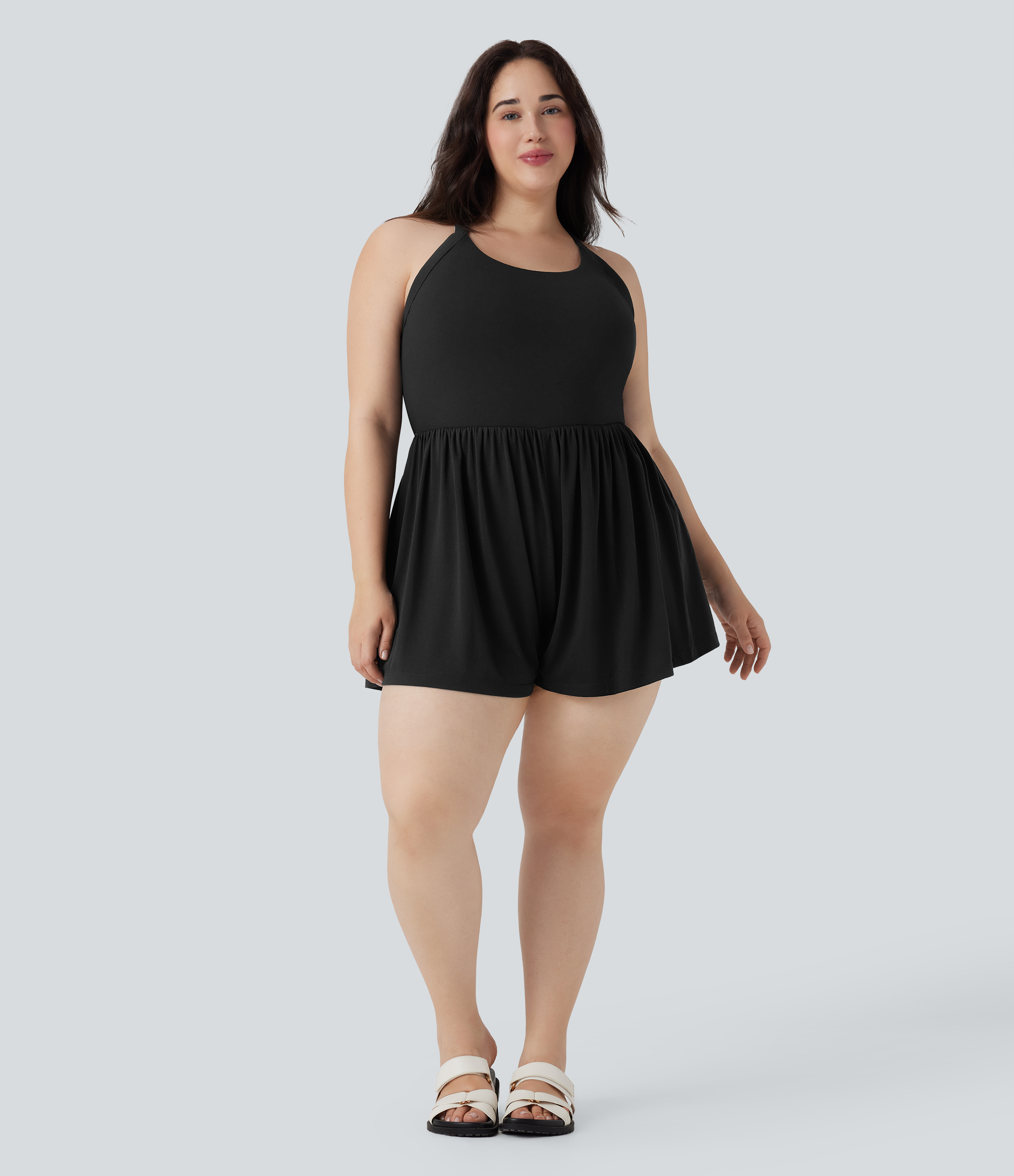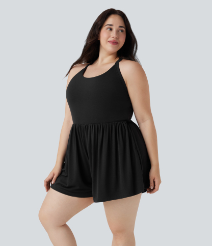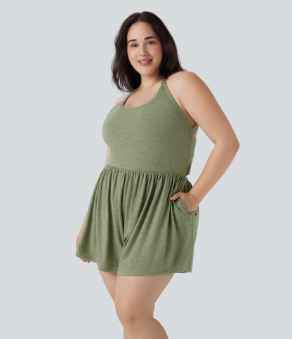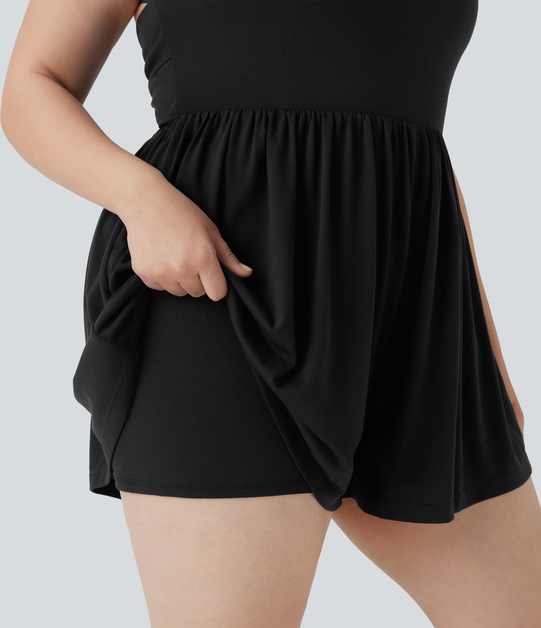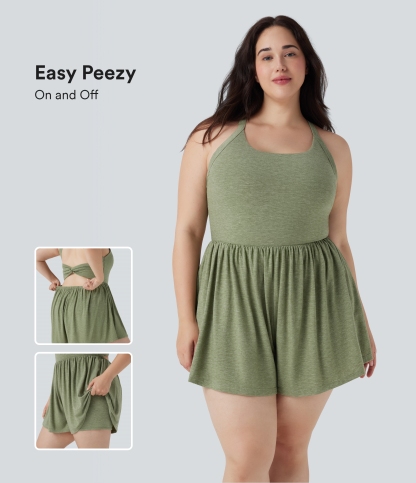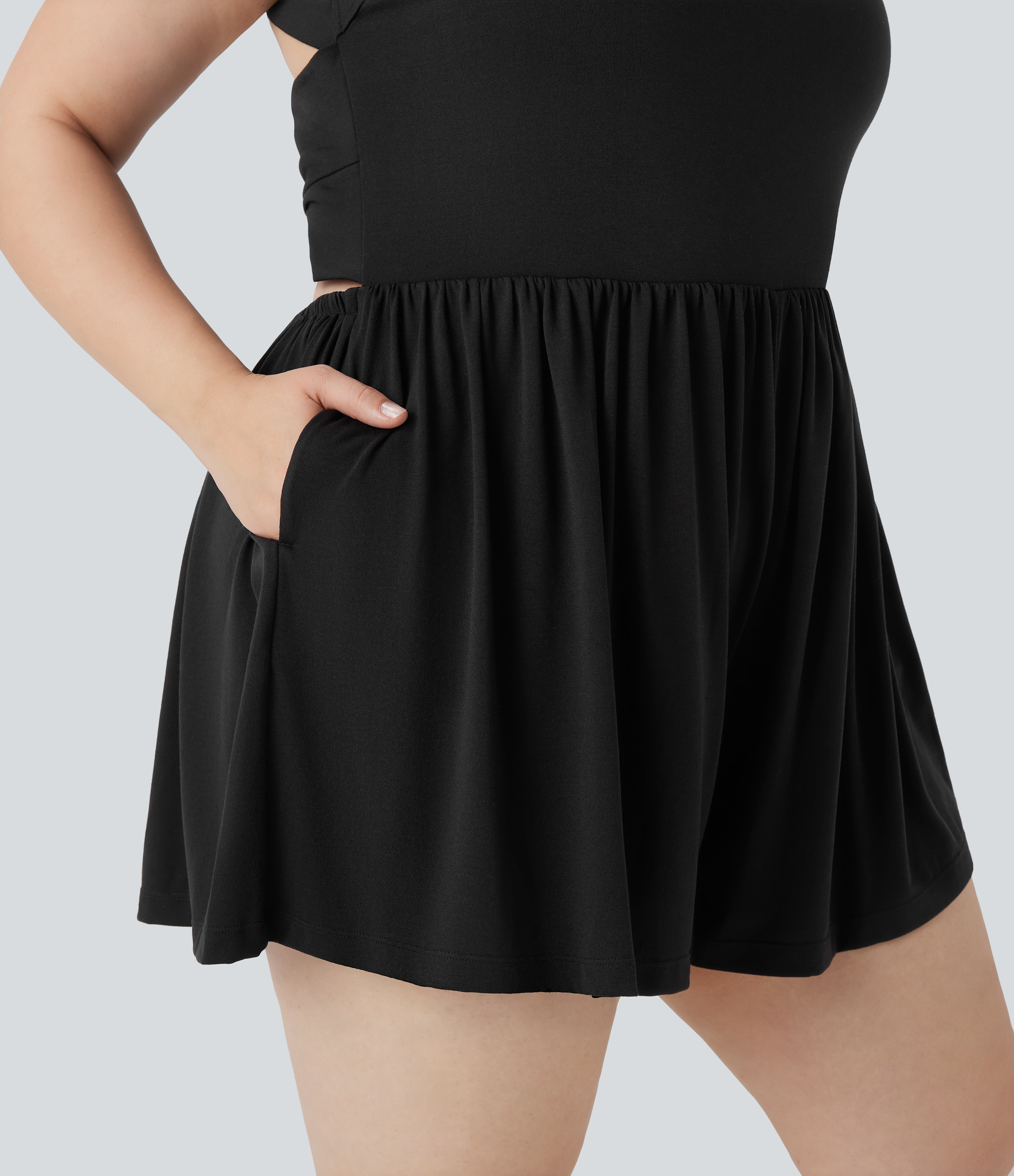 2-in-1 Plus Size Romper with Pockets-Easy Peezy Edition