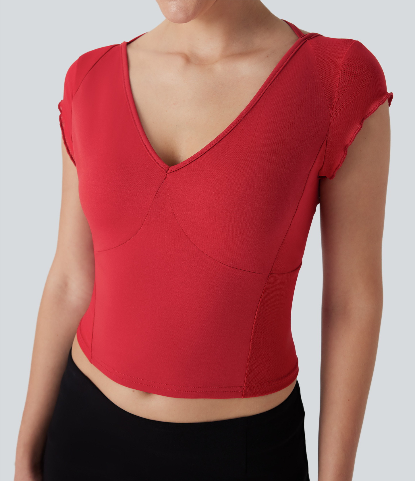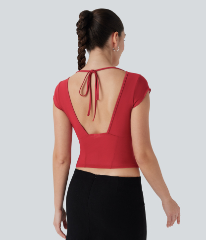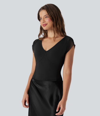Tie Back Contrast Mesh Top