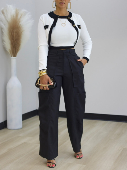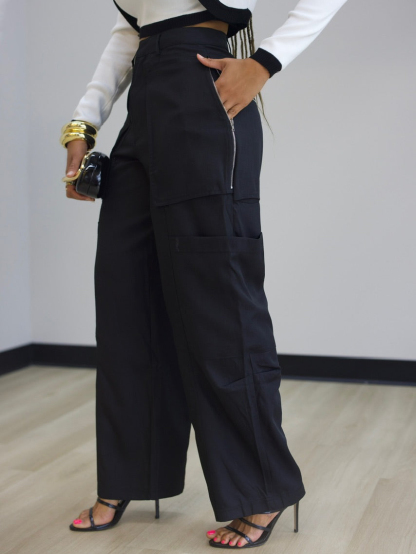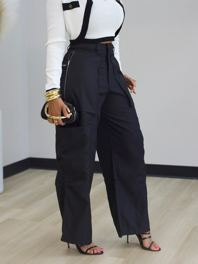 Casual Pocket Zip Accent Straight Leg Cargo Pants