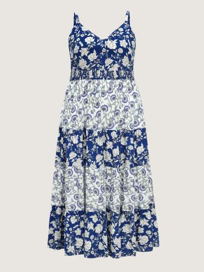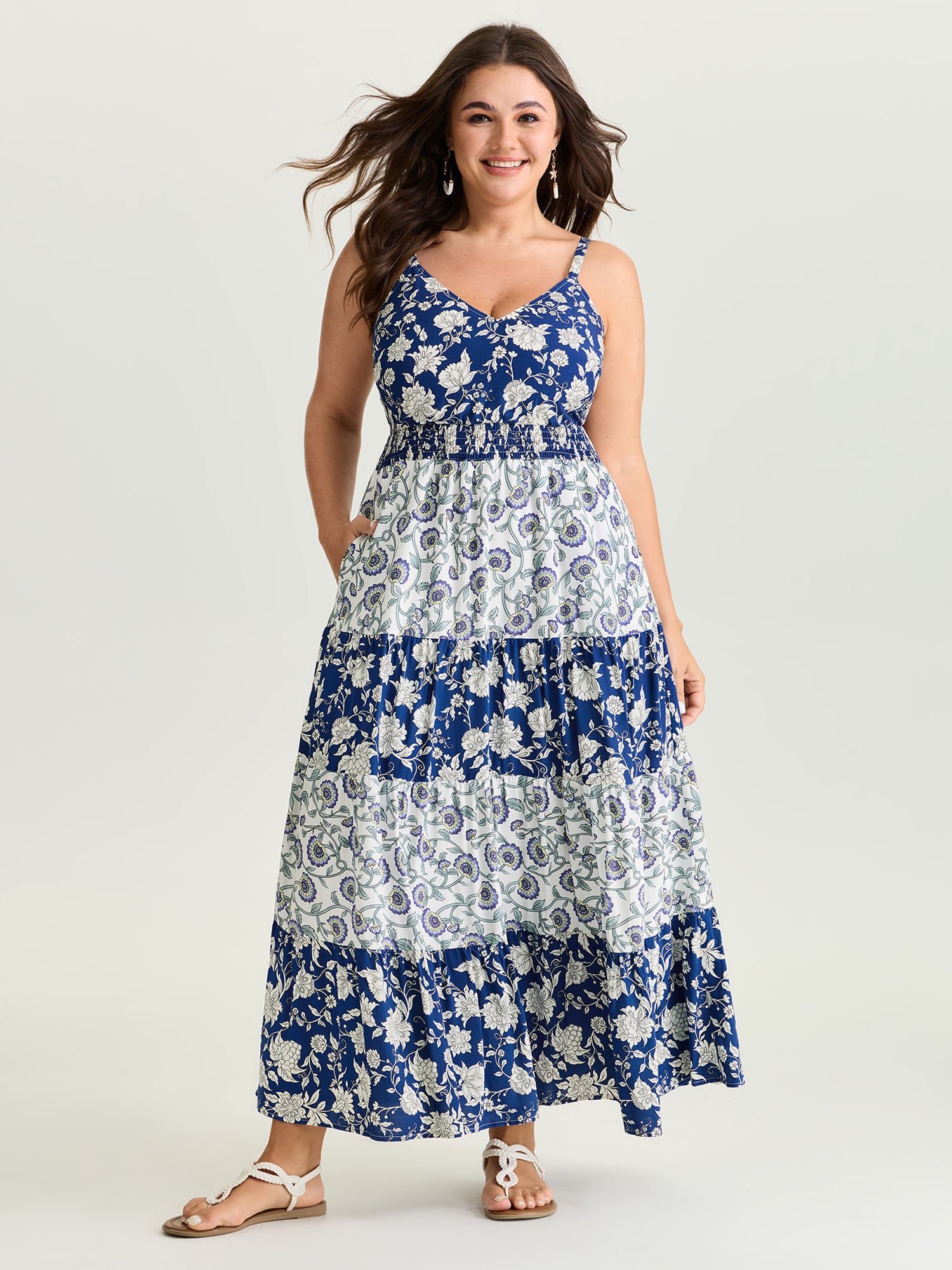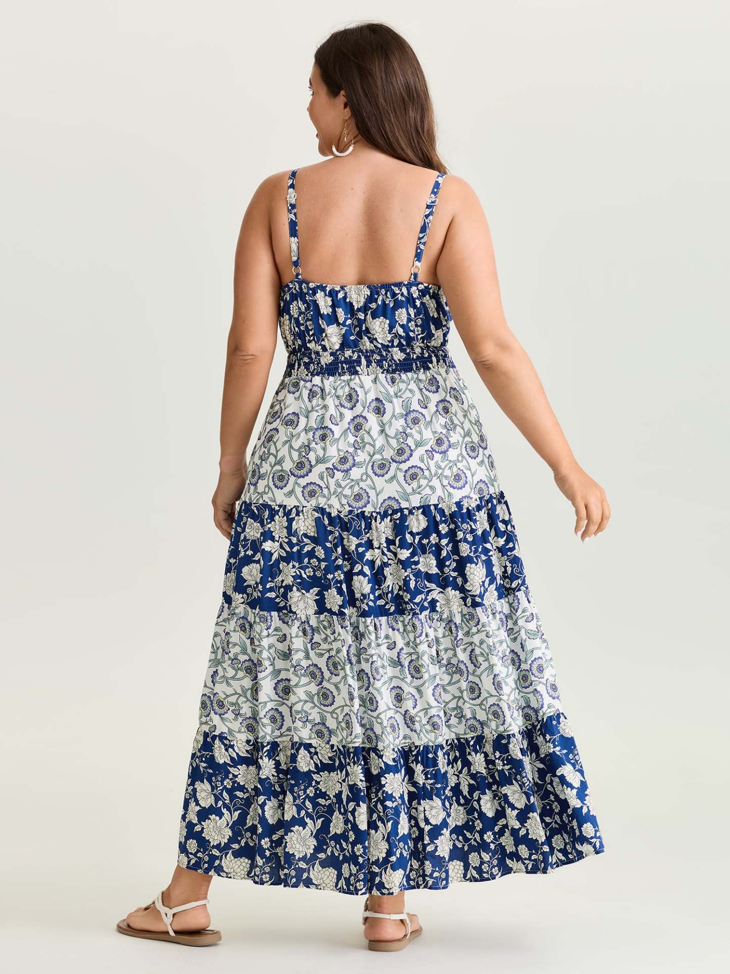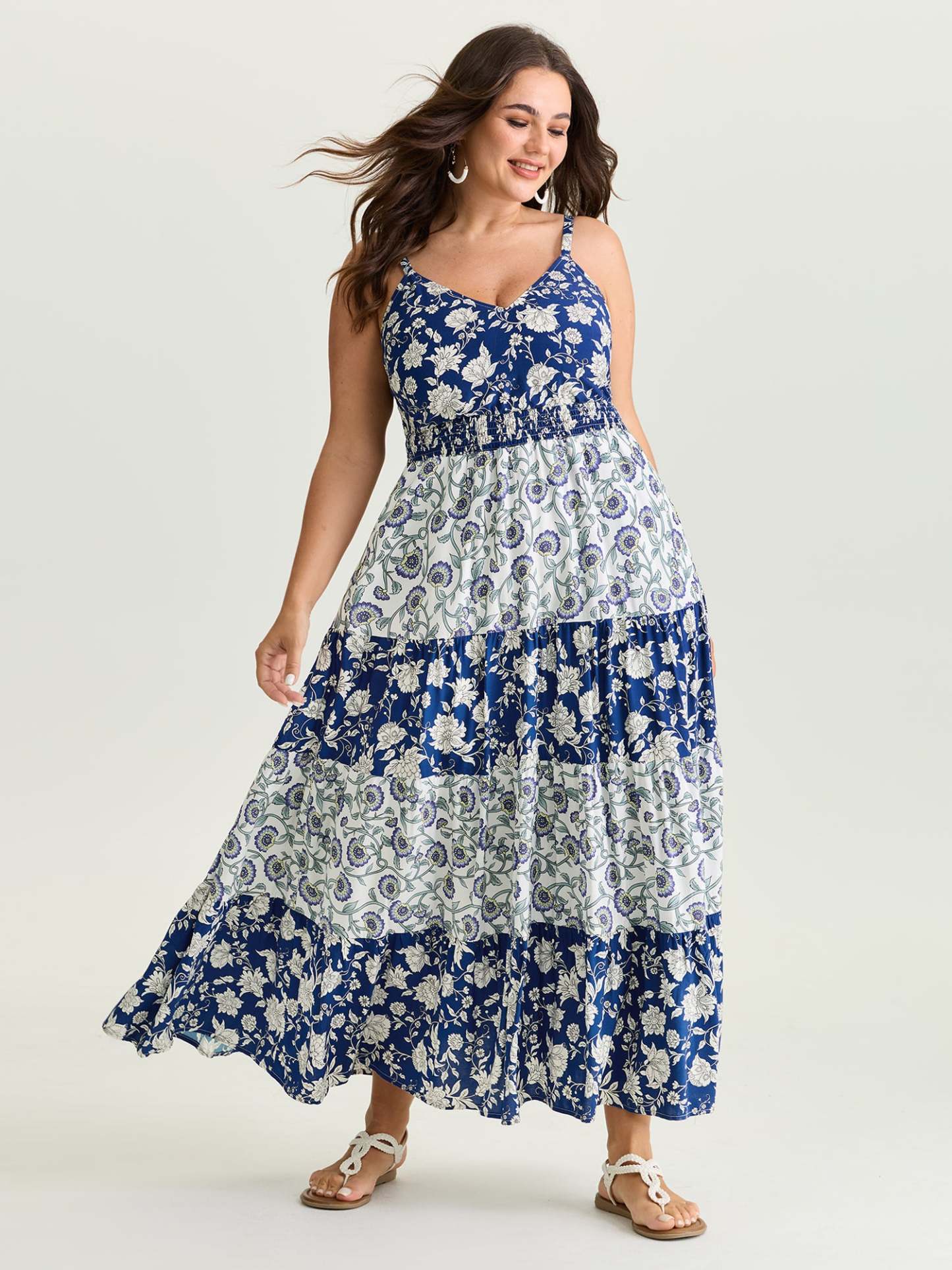 Shop Colorblock Floral Print Tiered Maxi Dress now and redefine your style with confidence at BloomChic. Tailored for mid and plus-size women. This trendy Dress, sizes 10-30. You can never go wrong with BloomChic Dresses. Color:Medium Blue;Style_2:Boho;Pattern:Ditsy Floral;Details:Patchwork;Belt:No-belt