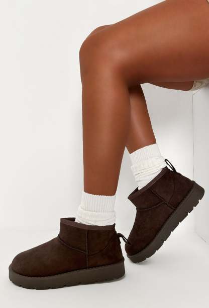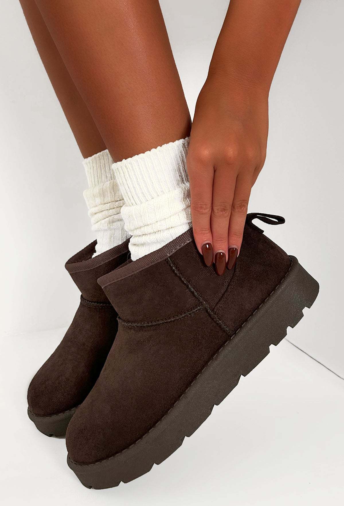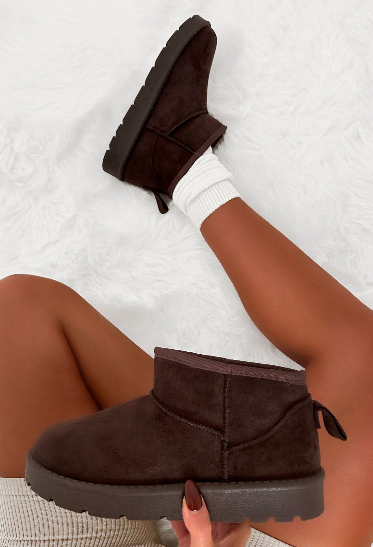 Cute Babe Chocolate Brown Faux Fur Lining Cosy Boots