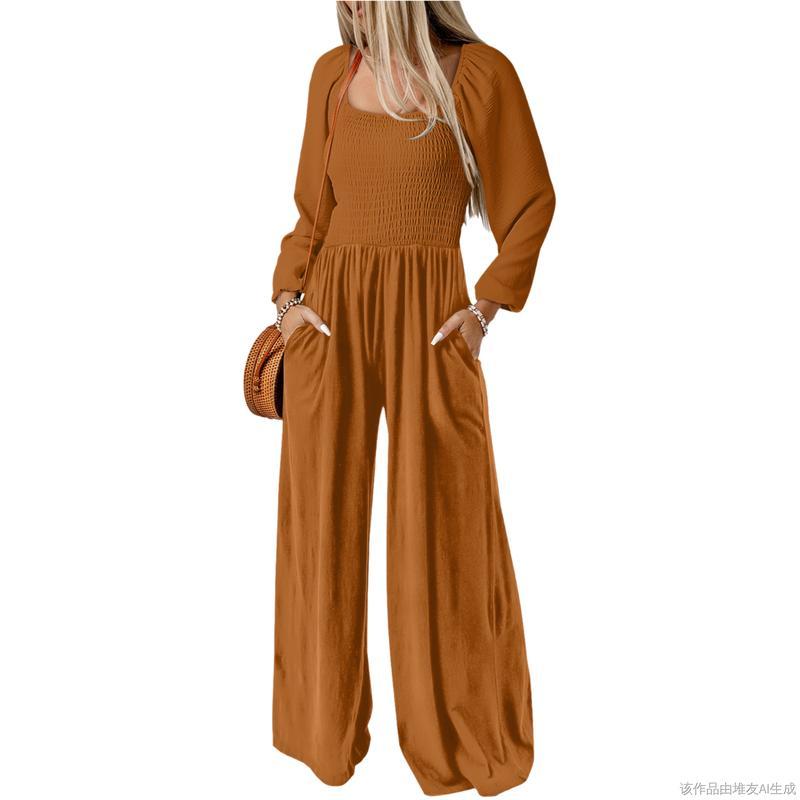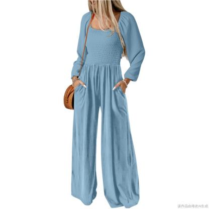 Women's Casual Loose Overalls Jumpsuits One Piece Long Sleeve Wide Leg Long Pant Rompers With Pockets