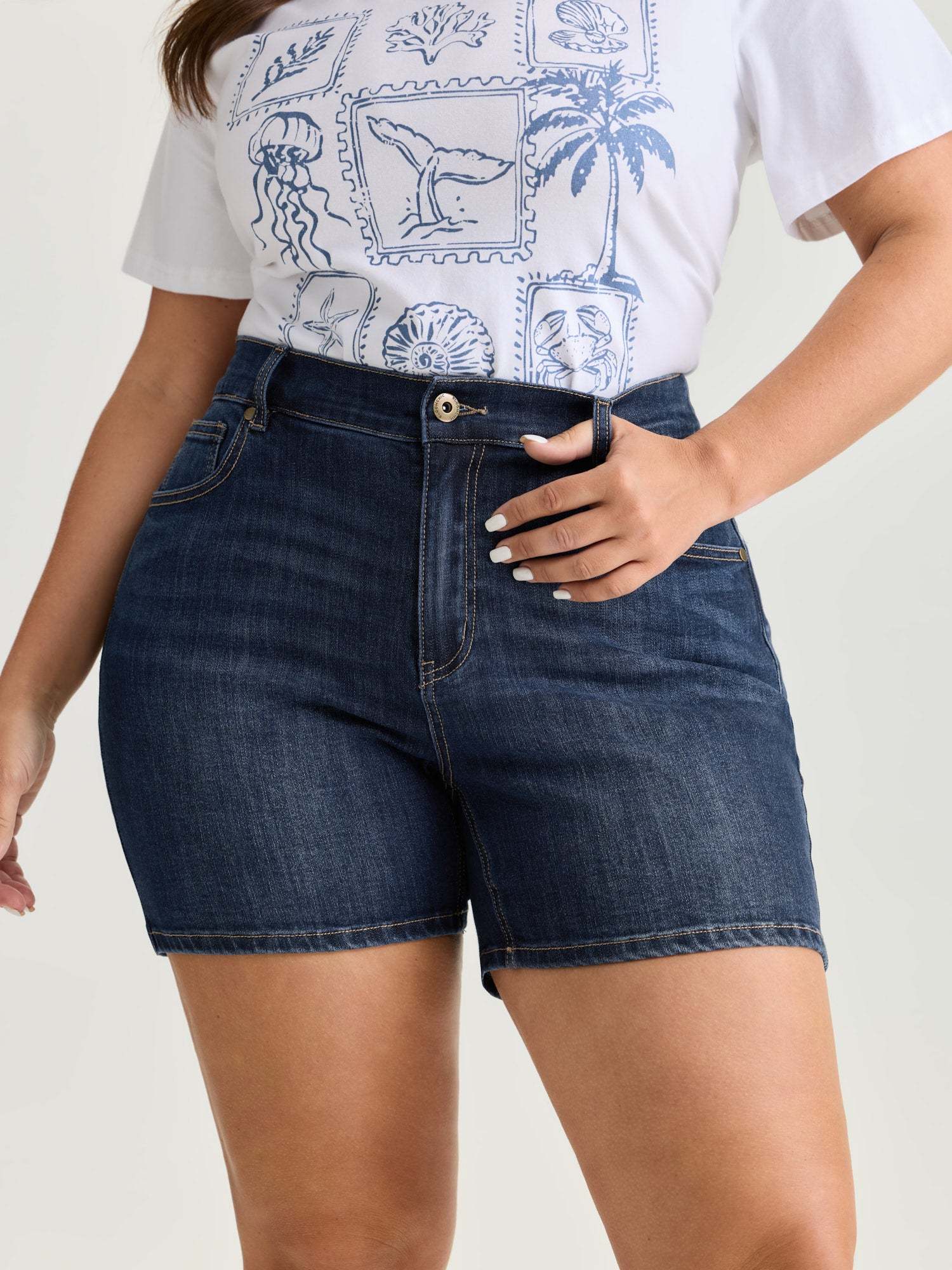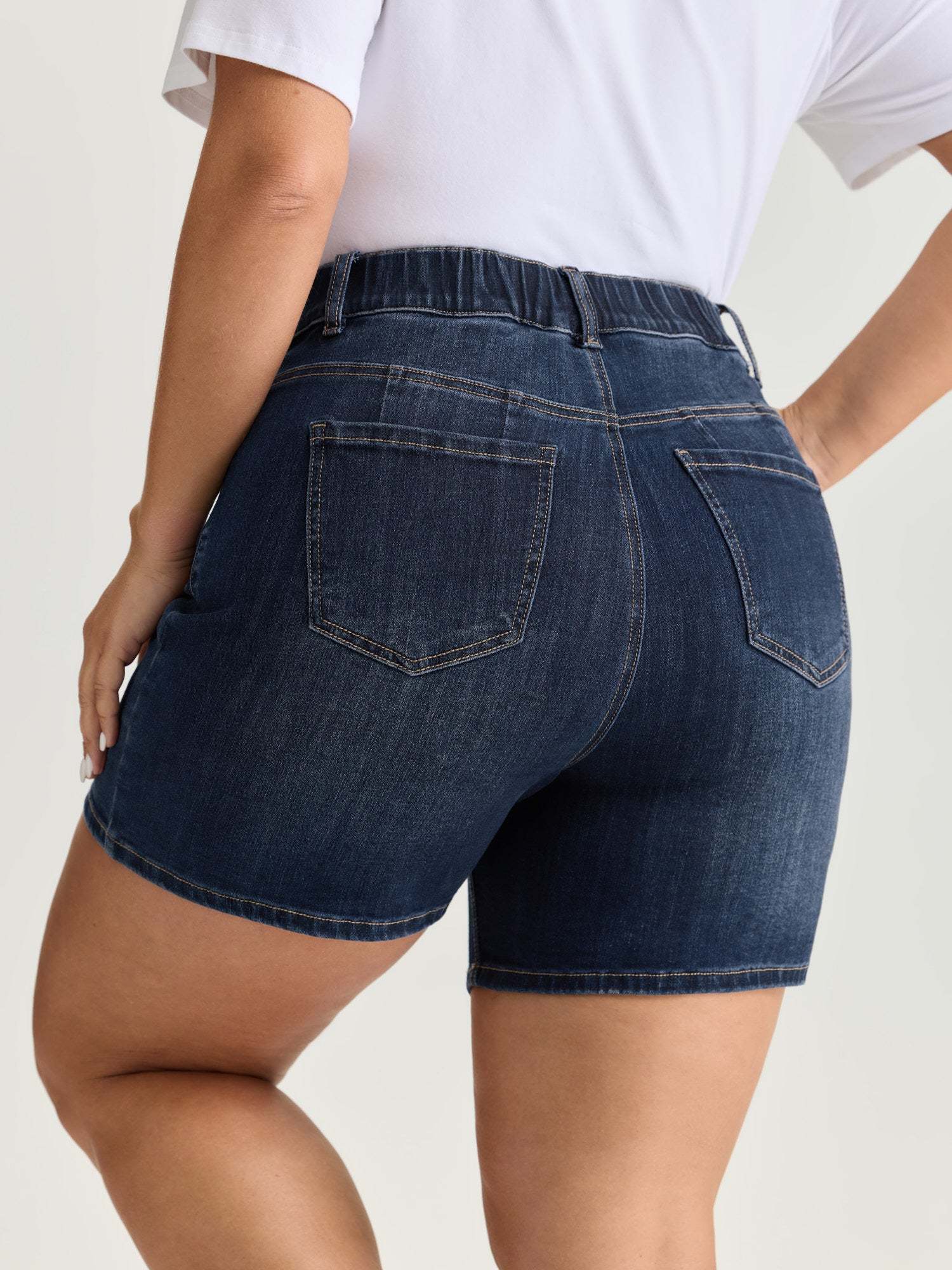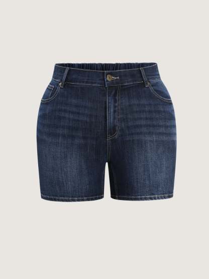 Shop Elastic Back Waist Skinny-Fit Denim Shorts now and redefine your style with confidence at BloomChic. Tailored for mid and plus-size women. This trendy Denim Women, sizes 10-30. Color:Dark Indigo;Style_2:Leisure;Structural function:Pull-On;Pocket:Slanted pocket;Closure Type:Pull-On