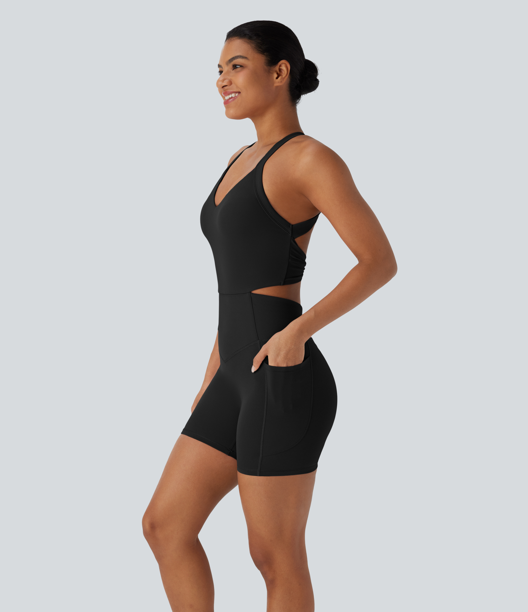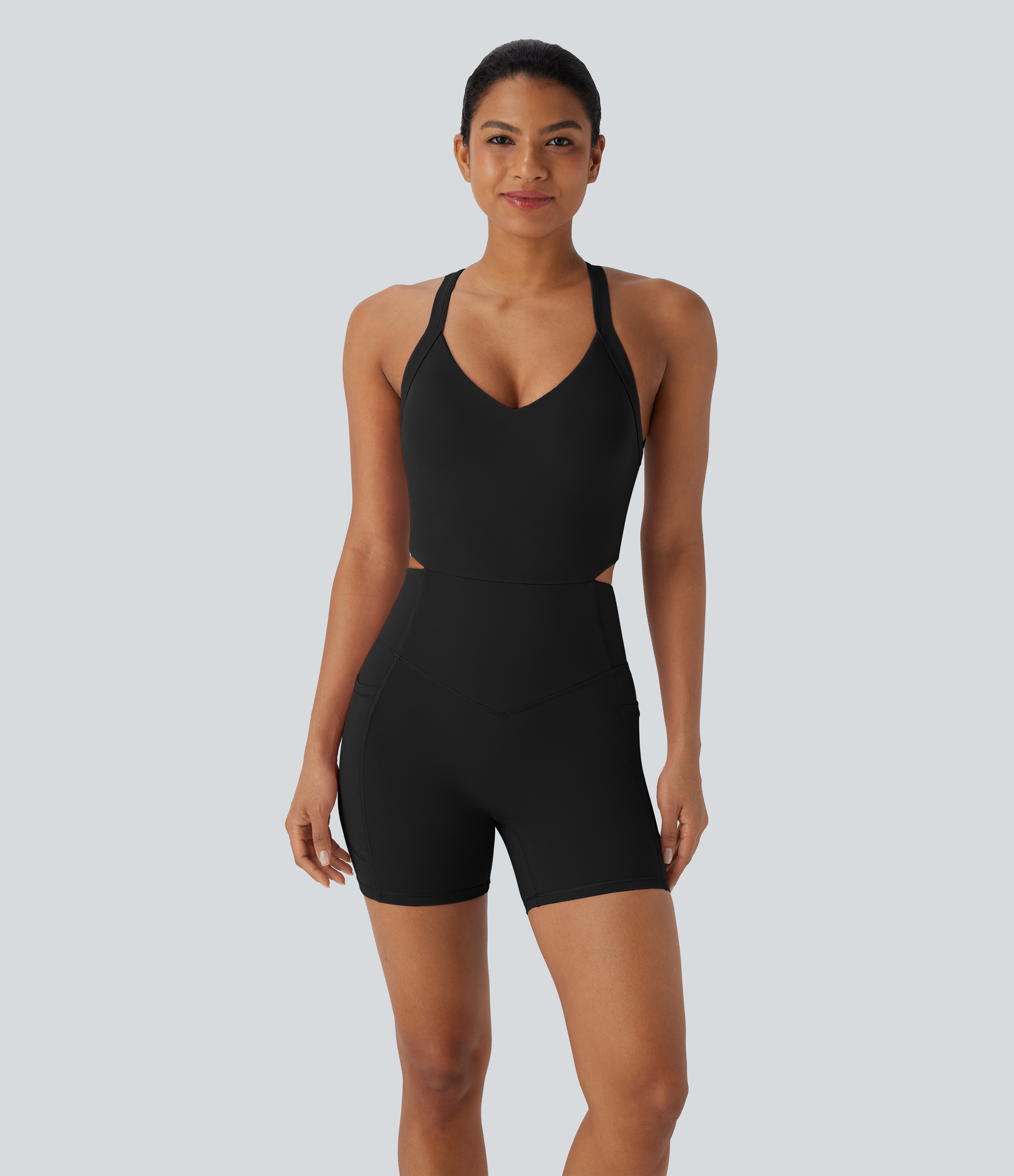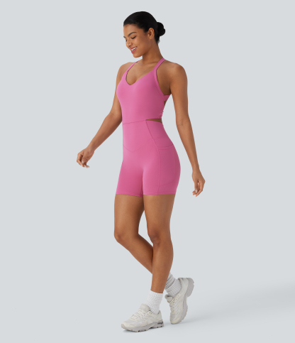 Halara UltraSculptTM SoCinched Tummy Control Training Romper with Pockets-Easy Peezy Edition