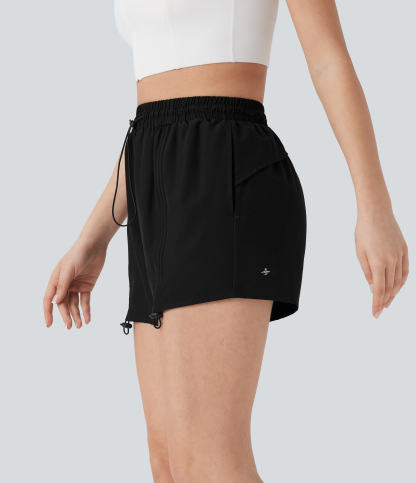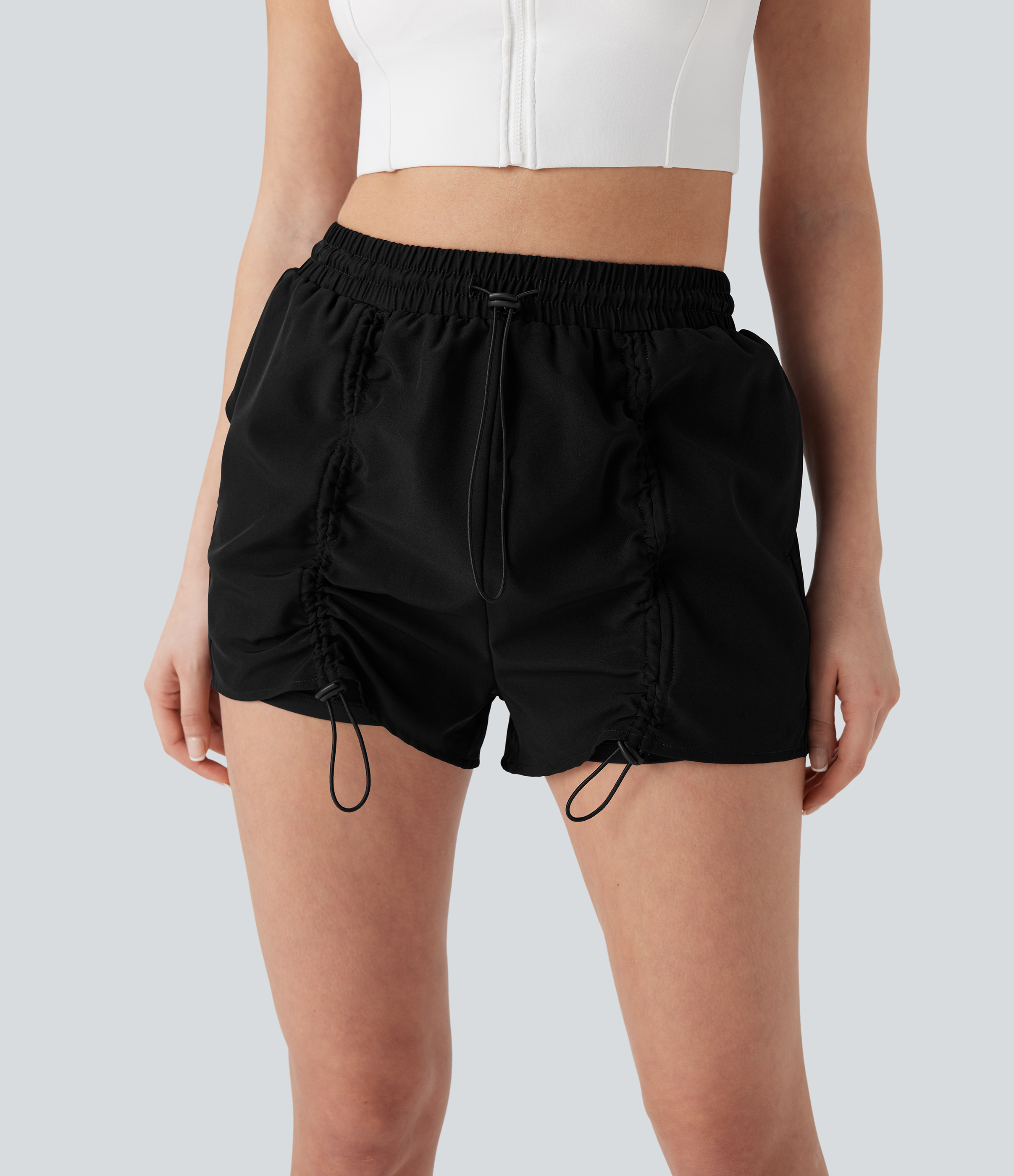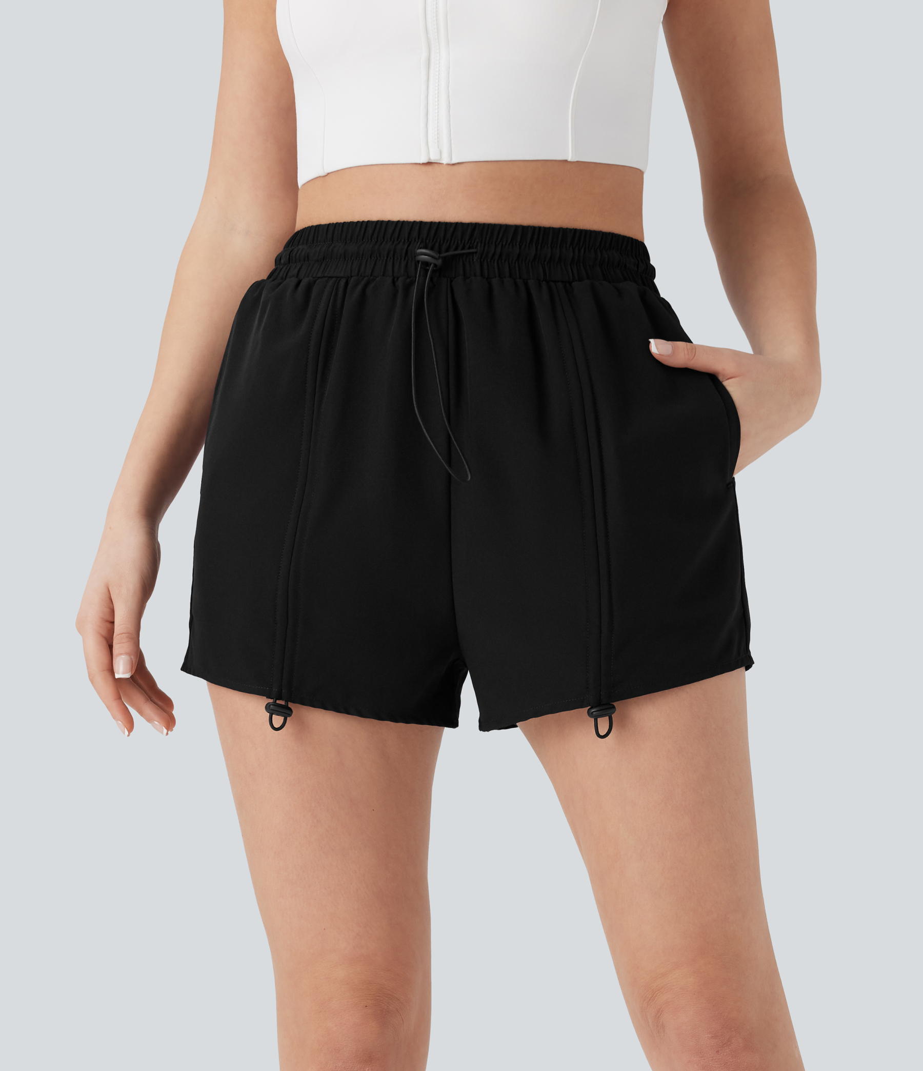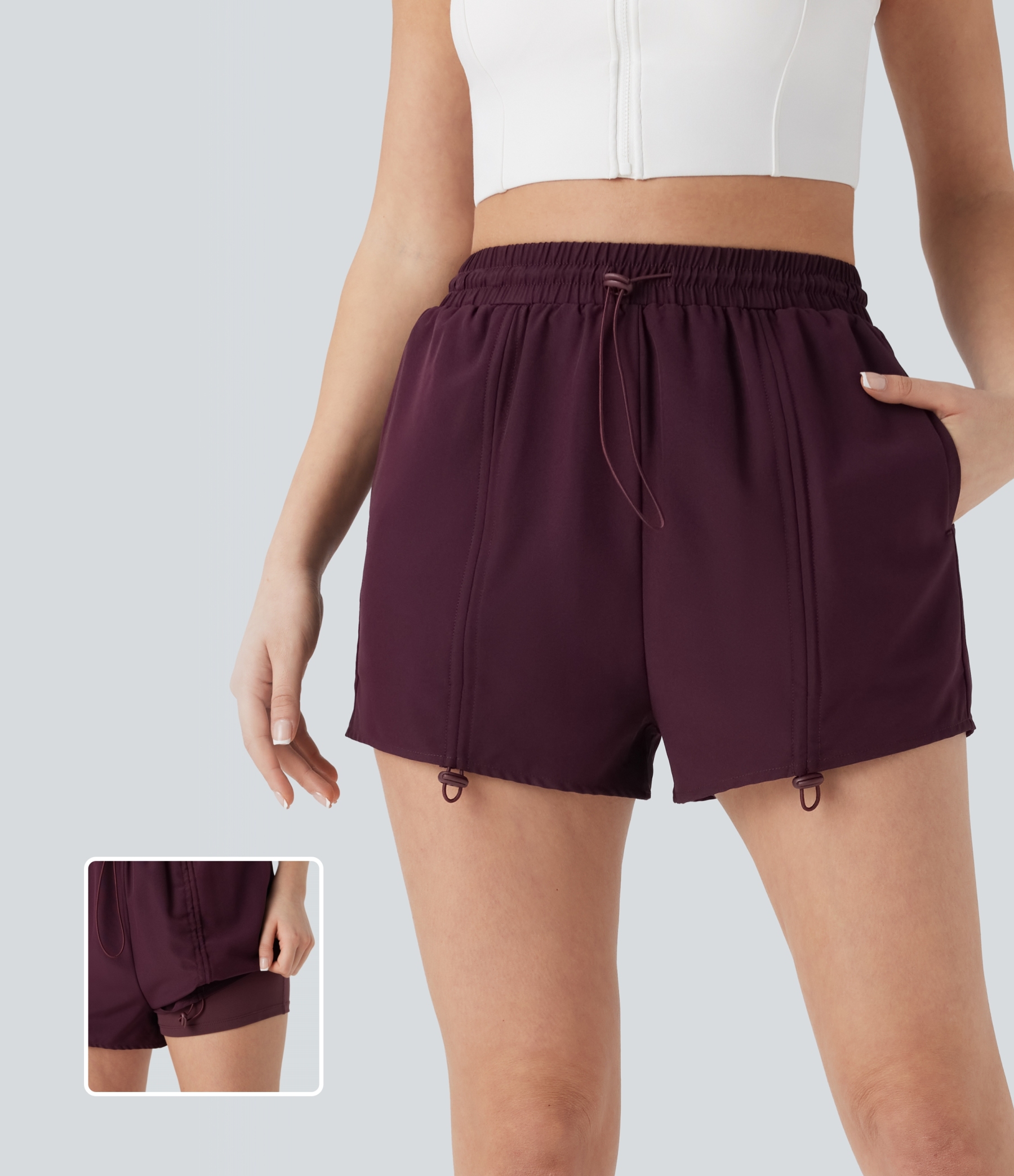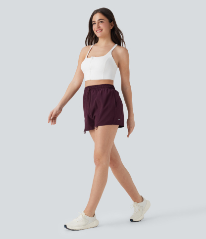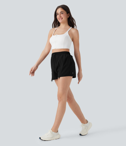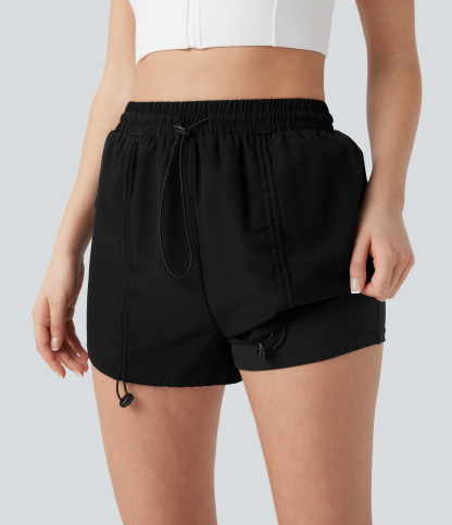 High Waisted Drawstring 2-in-1 Yoga Shorts with Pockets
