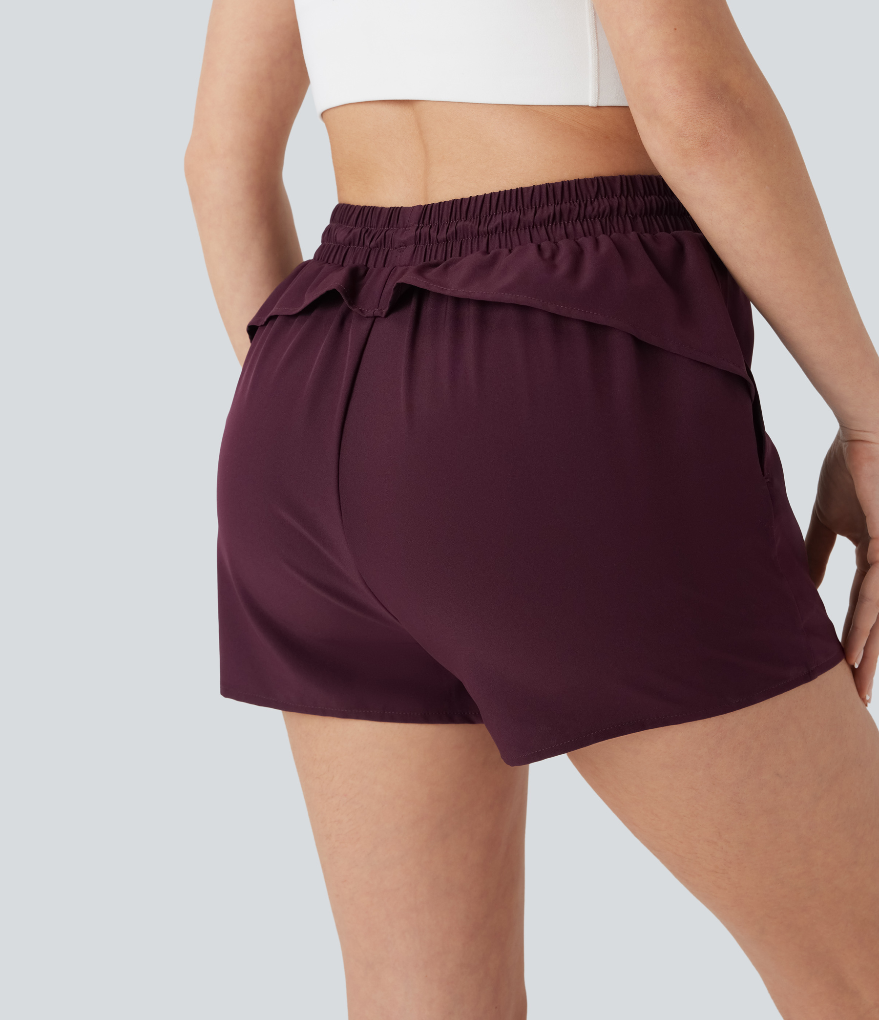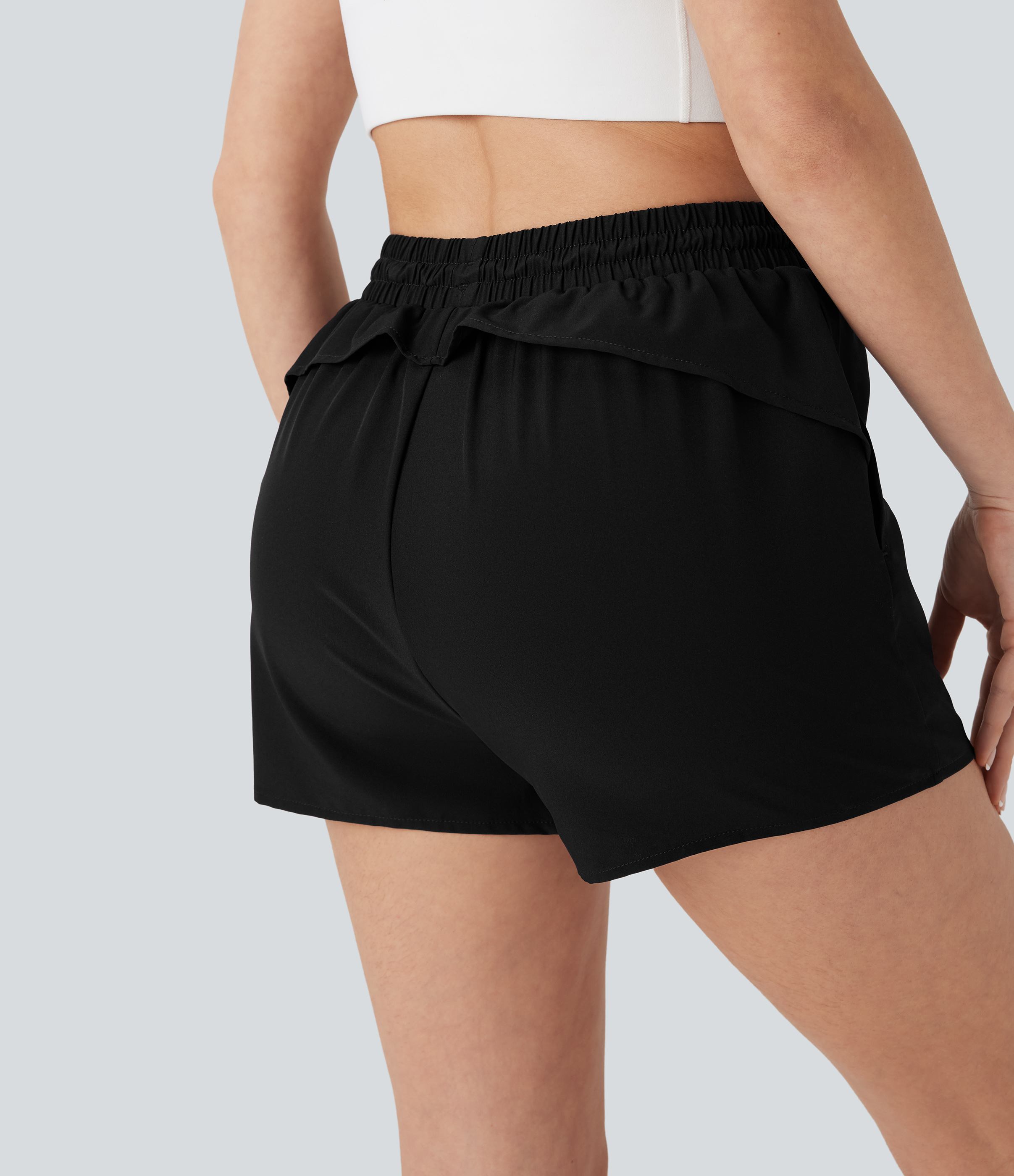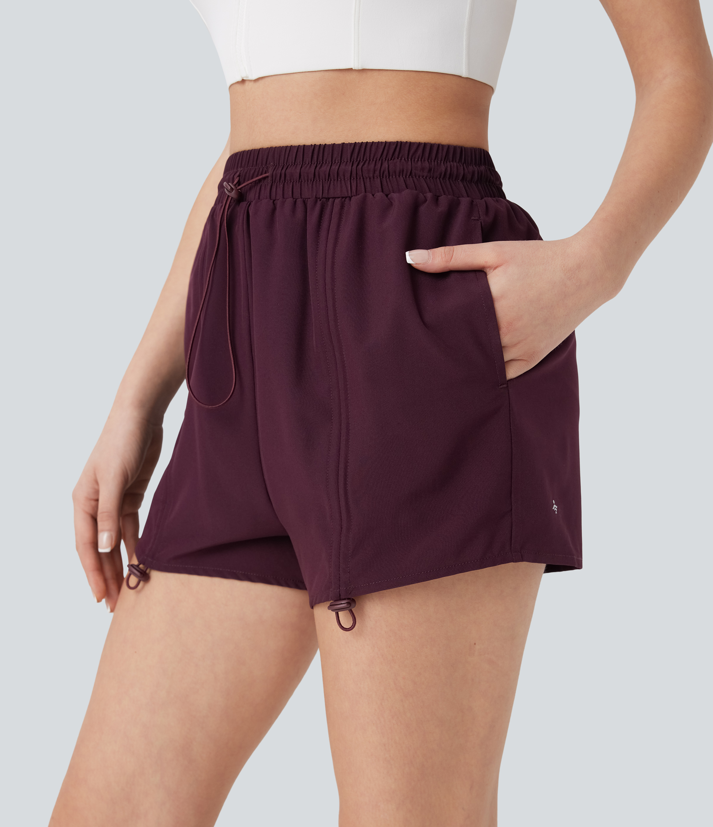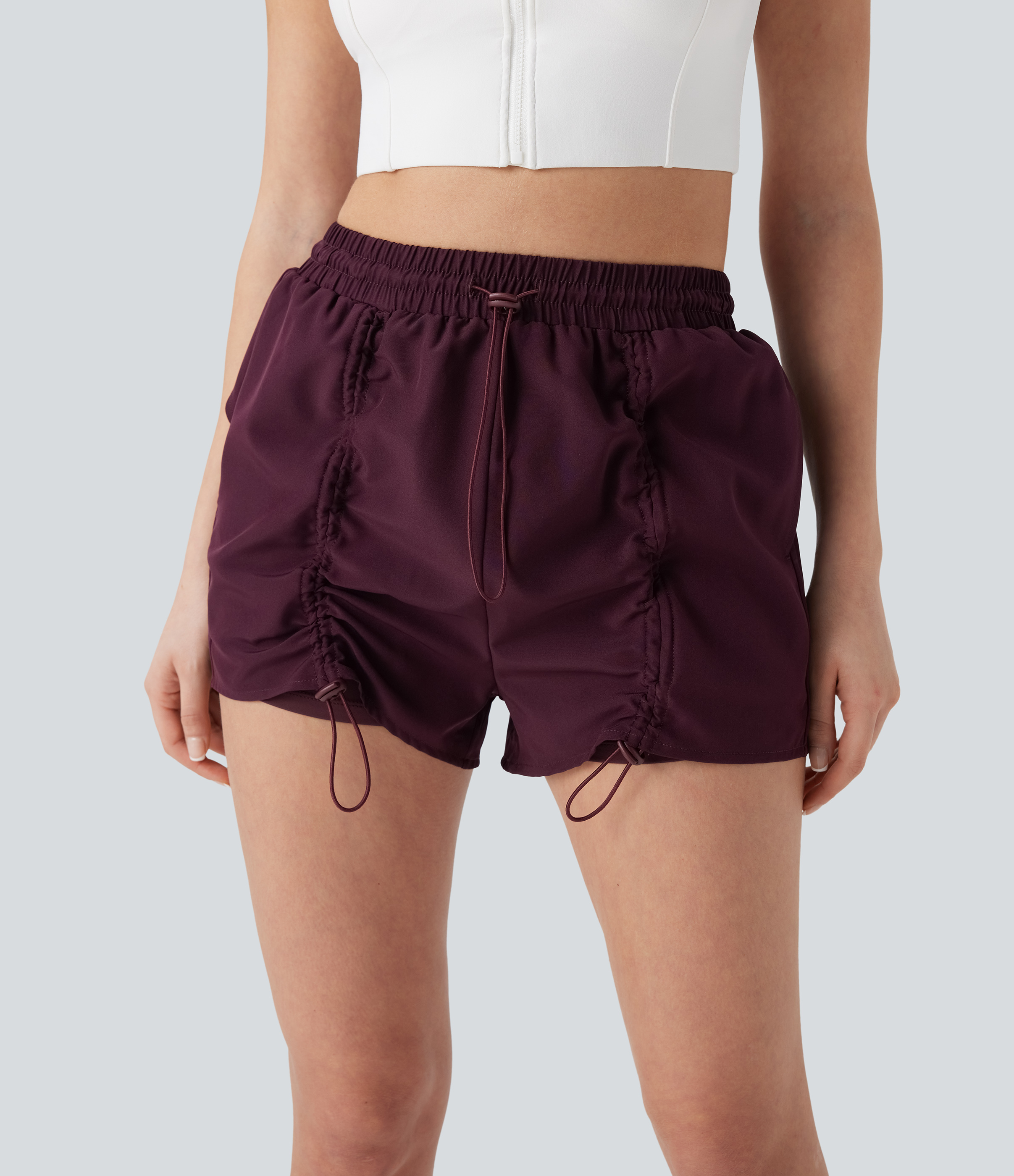 High Waisted Drawstring 2-in-1 Yoga Shorts with Pockets