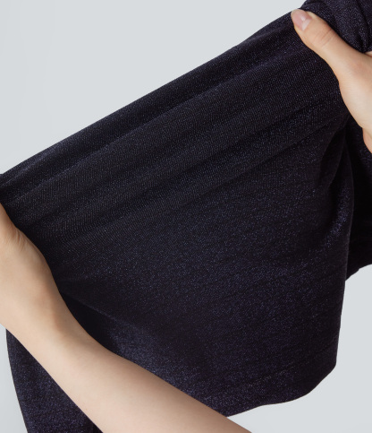 High Waisted Zipper Bodycon Metallic Mini Casual Skirt with Pockets