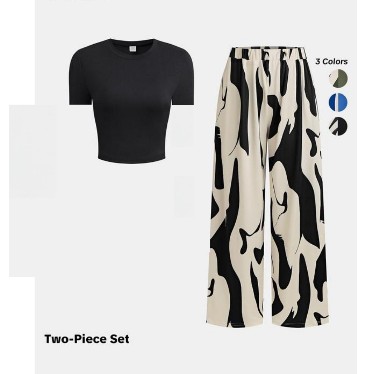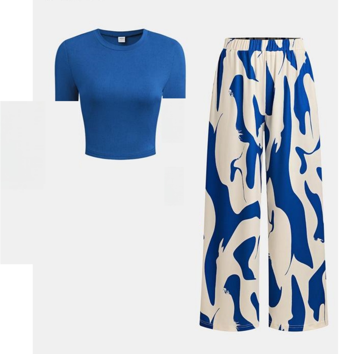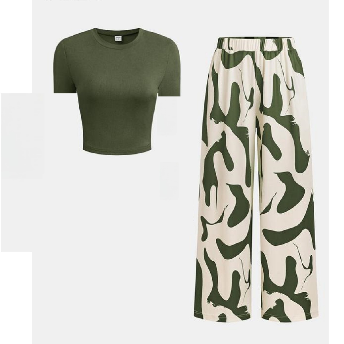 Solid Tee & Graphic Elastic Waist Pants Set, Casual Round Neck Long Sleeve Top & High Waist Trousers, 2024 Women's Daily Wear for Fall & Winter, Fall & Winter Outfits