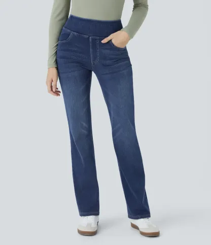 2026🔥Halara FlexTM High Waisted Multiple Pockets Washed Stretchy Knit Casual Bootcut Jeans