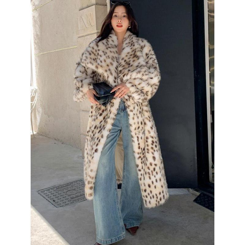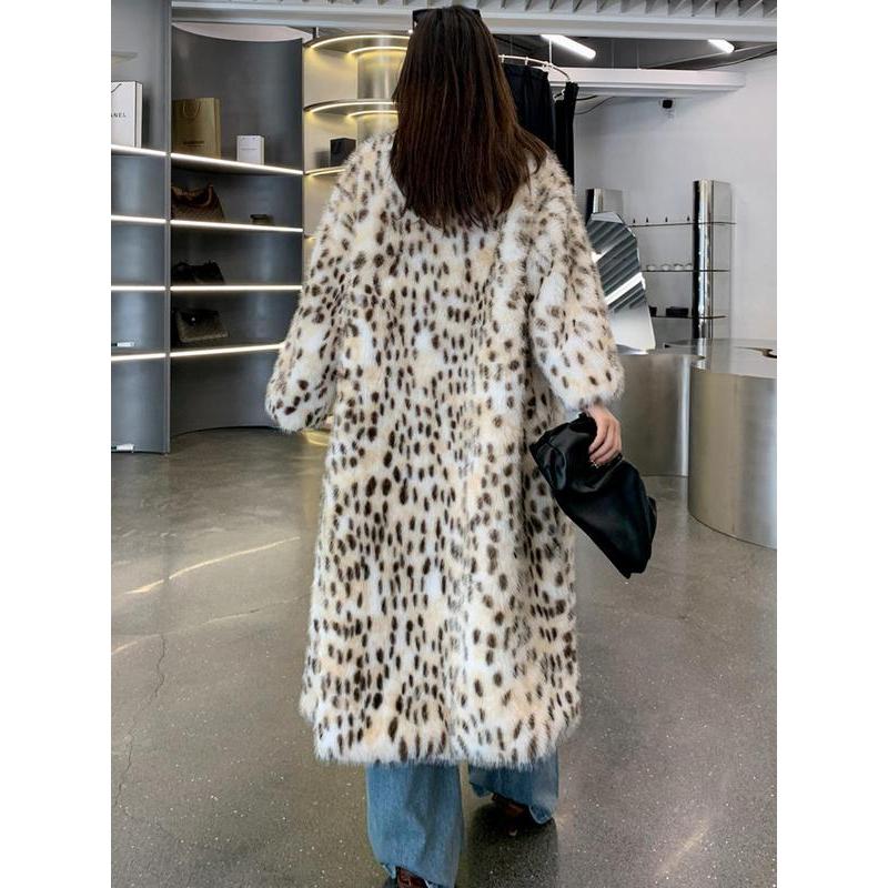 It's2022 Women's Leopard Print Faux Fur Coat Long Sleeve Waterfall Collar Fuzzy Coat for Fall & Winter Loose-Fitting Elegant Fit Daily Wear Jacket Soft & Comfortable Multicolor Outerwear