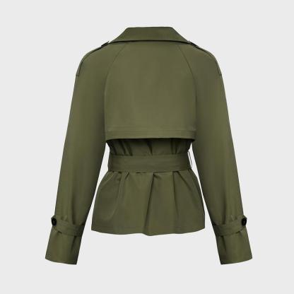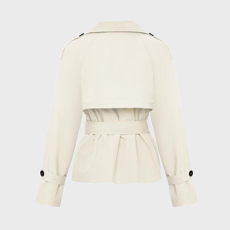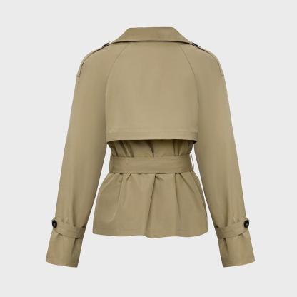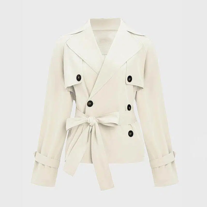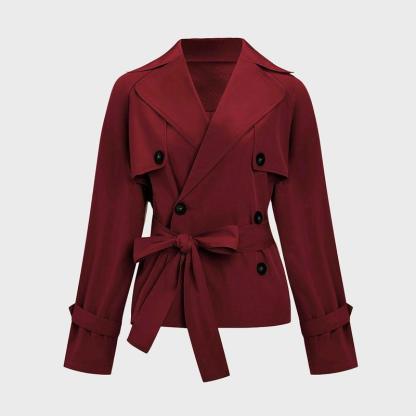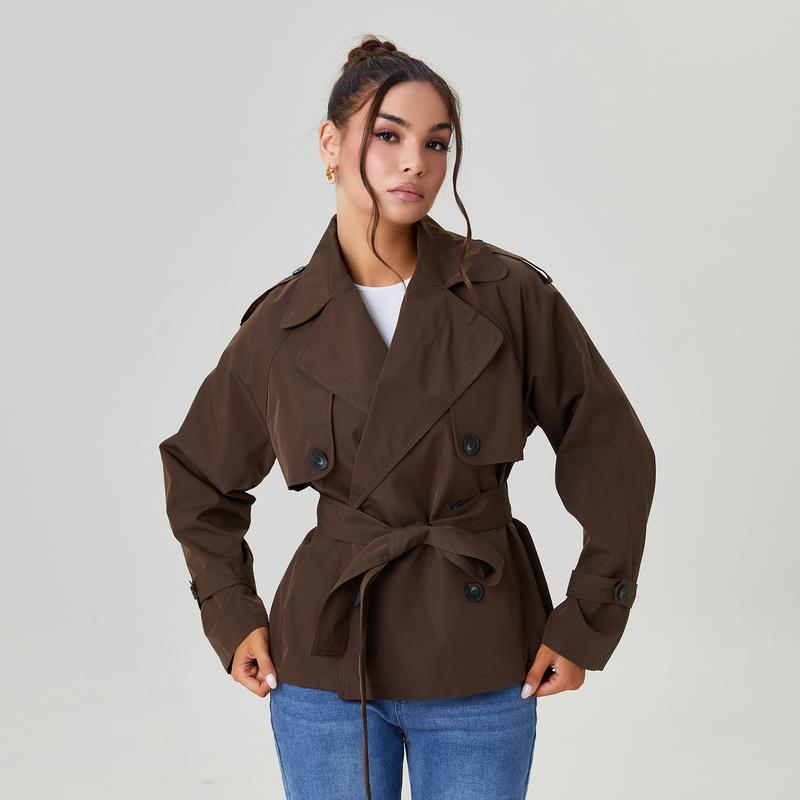 Women's Commuter Notch Lapel Double Breasted Detachable Belt Trench Coat, Fall & Winter Plain Wrap Tie Waist Outerwear Jacket, Elegant Trench Coat