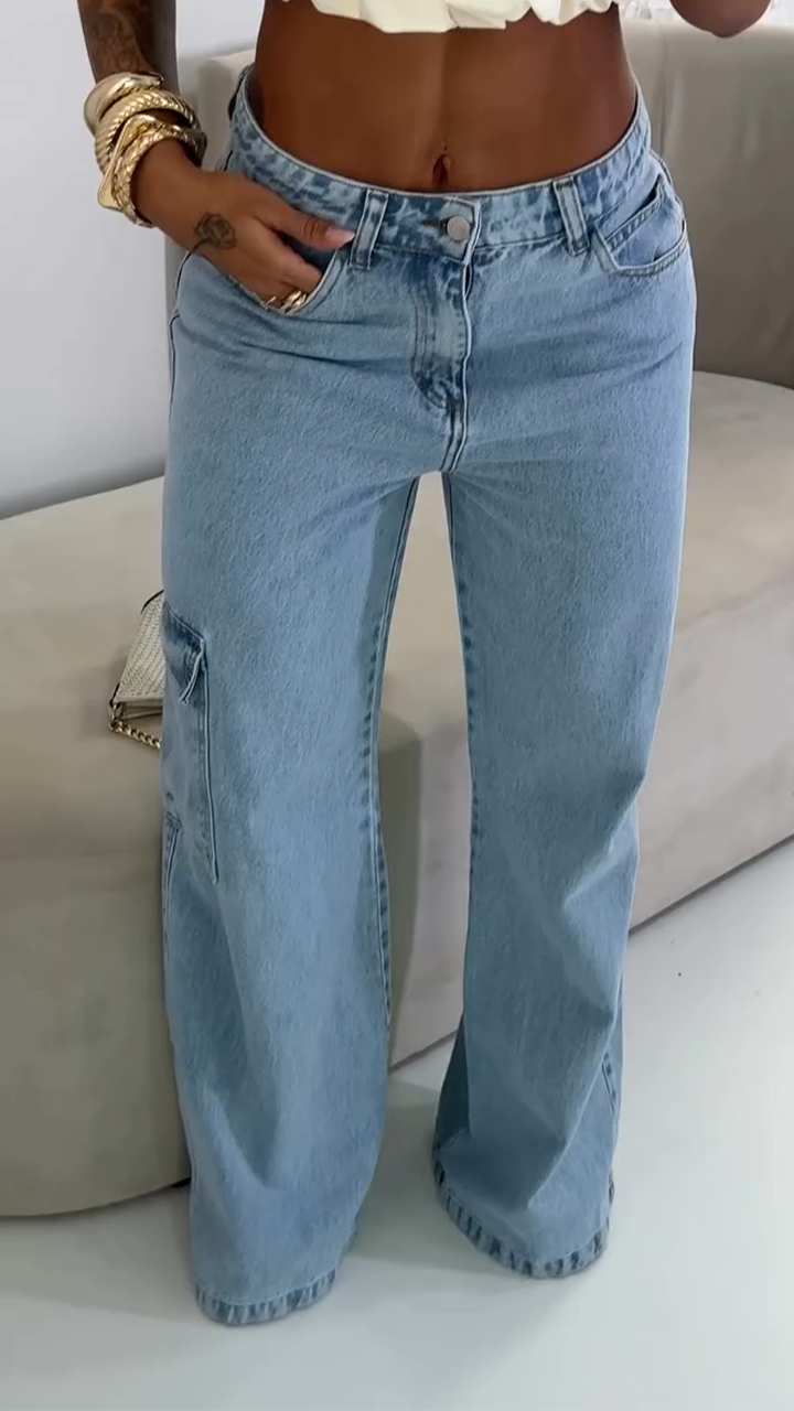 Ladies Neck Hanging Back Hollow Top+ Denim Pants Casual Suit